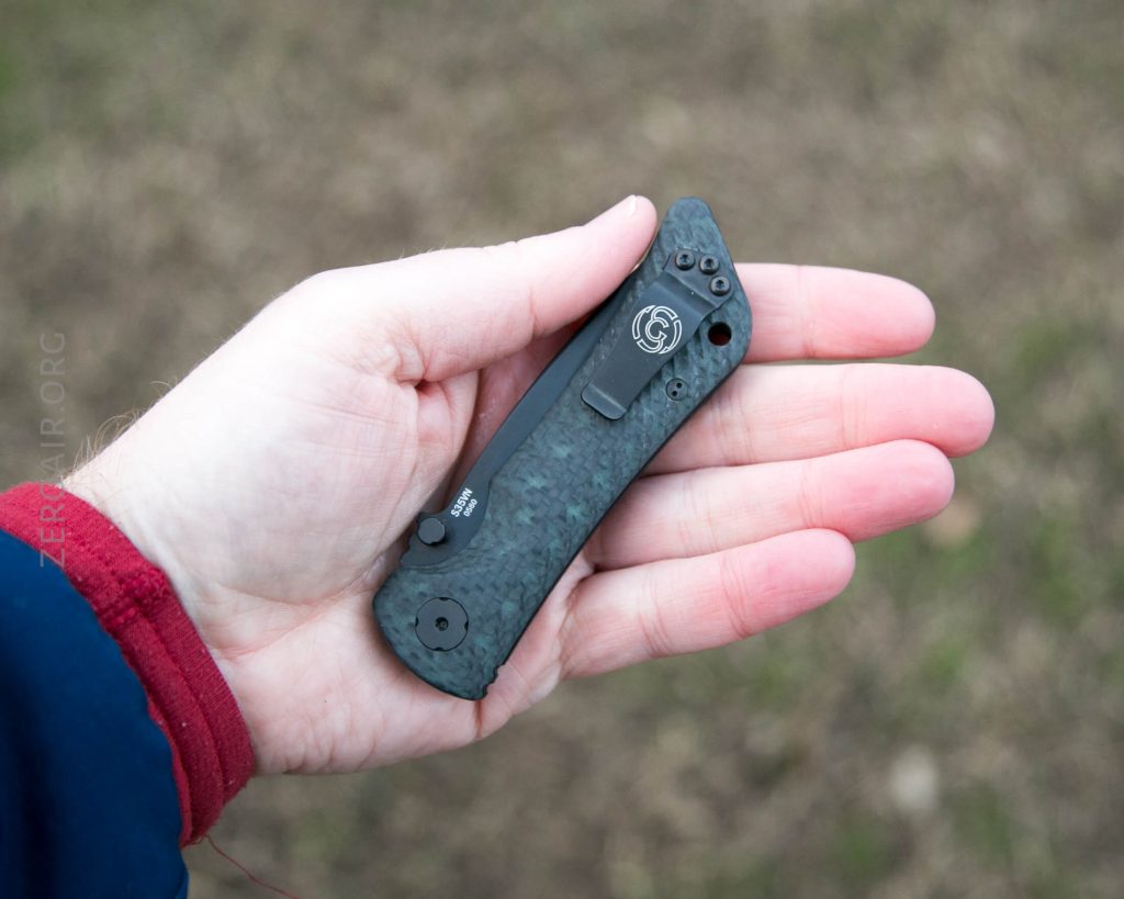I would be a fan of this knife even if it didn’t have carbon fiber scales, and even if that carbon fiber didn’t have glow. I like the scale shape, and for once I even am ok with a tanto blade shape. I wish the knife flicked open more easily, but that’ll probably come with much more use. The downside of it not flicking open out of the box is that with the proprietary screws, it’s not really user-serviceable.
