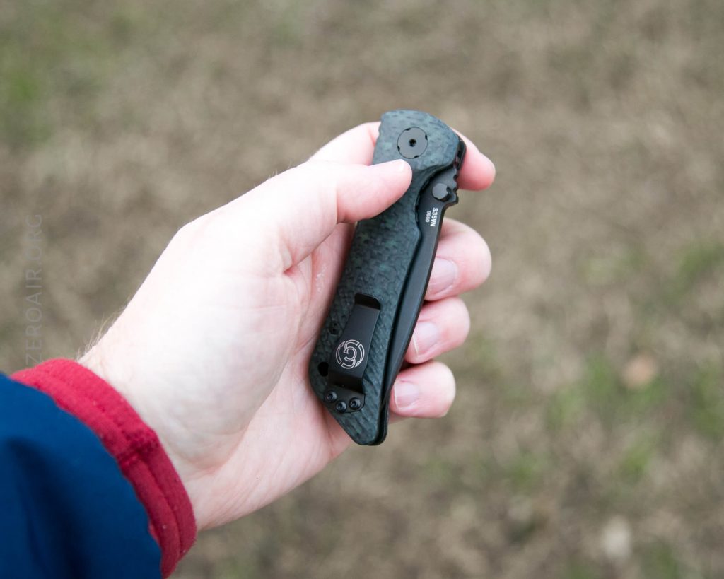 I am 94.25% sure this is the standard Benchmade hole pattern, but I can’t find my only Benchmade to compare (an Aphid). So if you wanted a deep carry for this knife, it’s attainable.