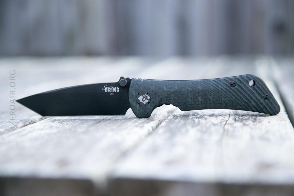The Southern Grind Spider Monkey is part of the GLOW series, and the blade is black PVD. The scales are Carbon Fiber. Read on!