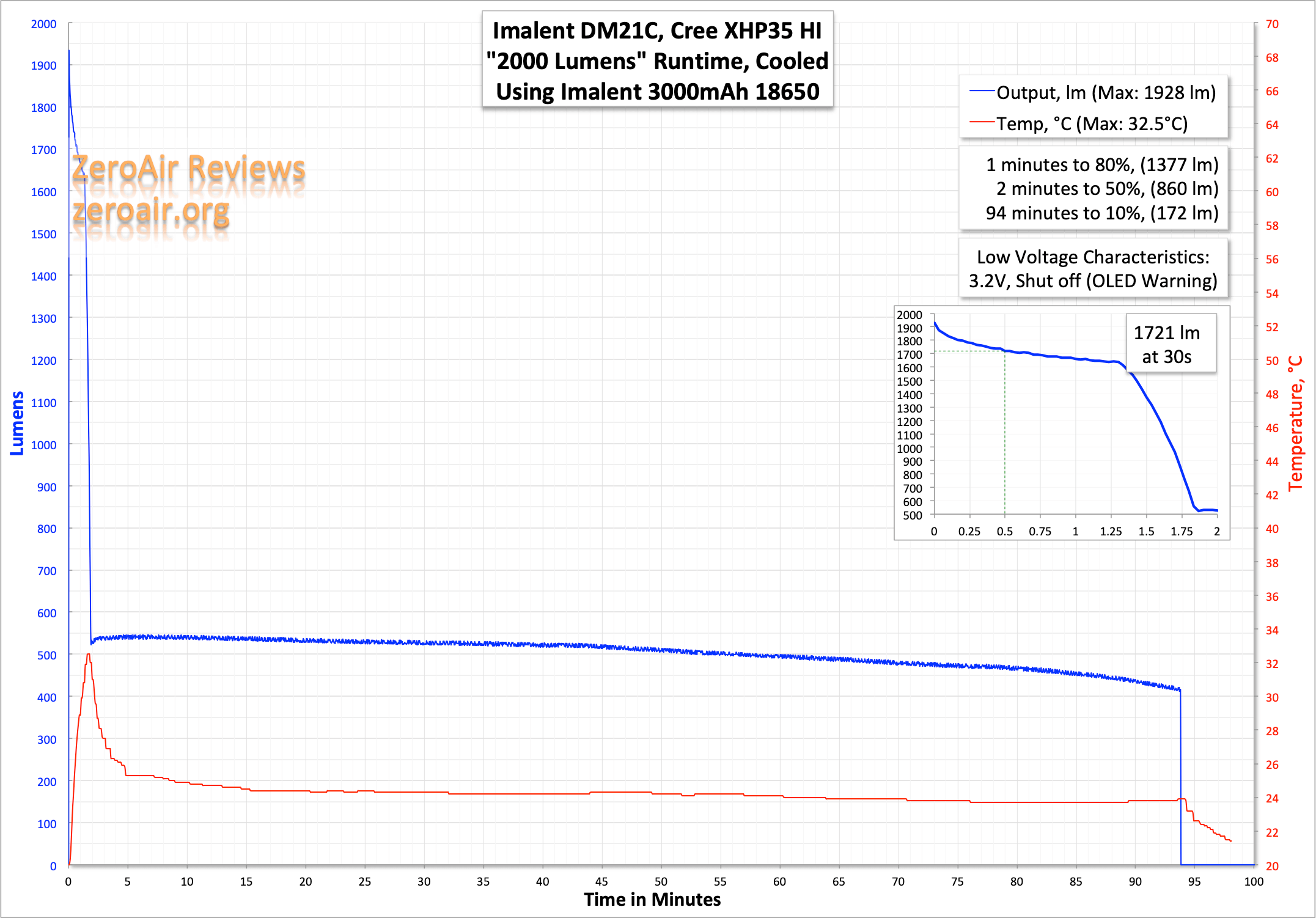 | Measured Lumens (at 30s) | 1721 (86.1% of claim)^ |