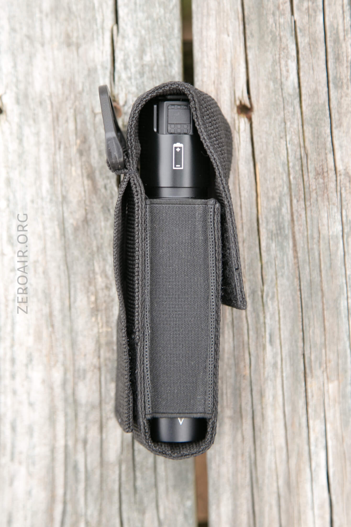 There’s a typical nylon pouch for carrying. The light will fit in either bezel-up or bezel-down orientation in this pouch.