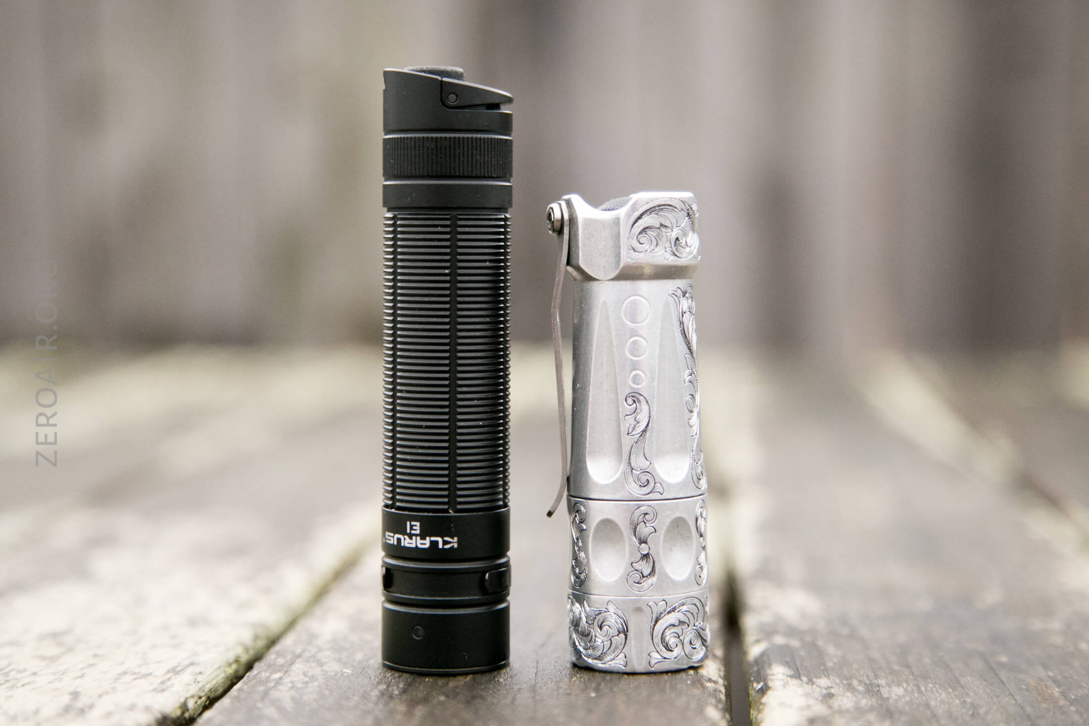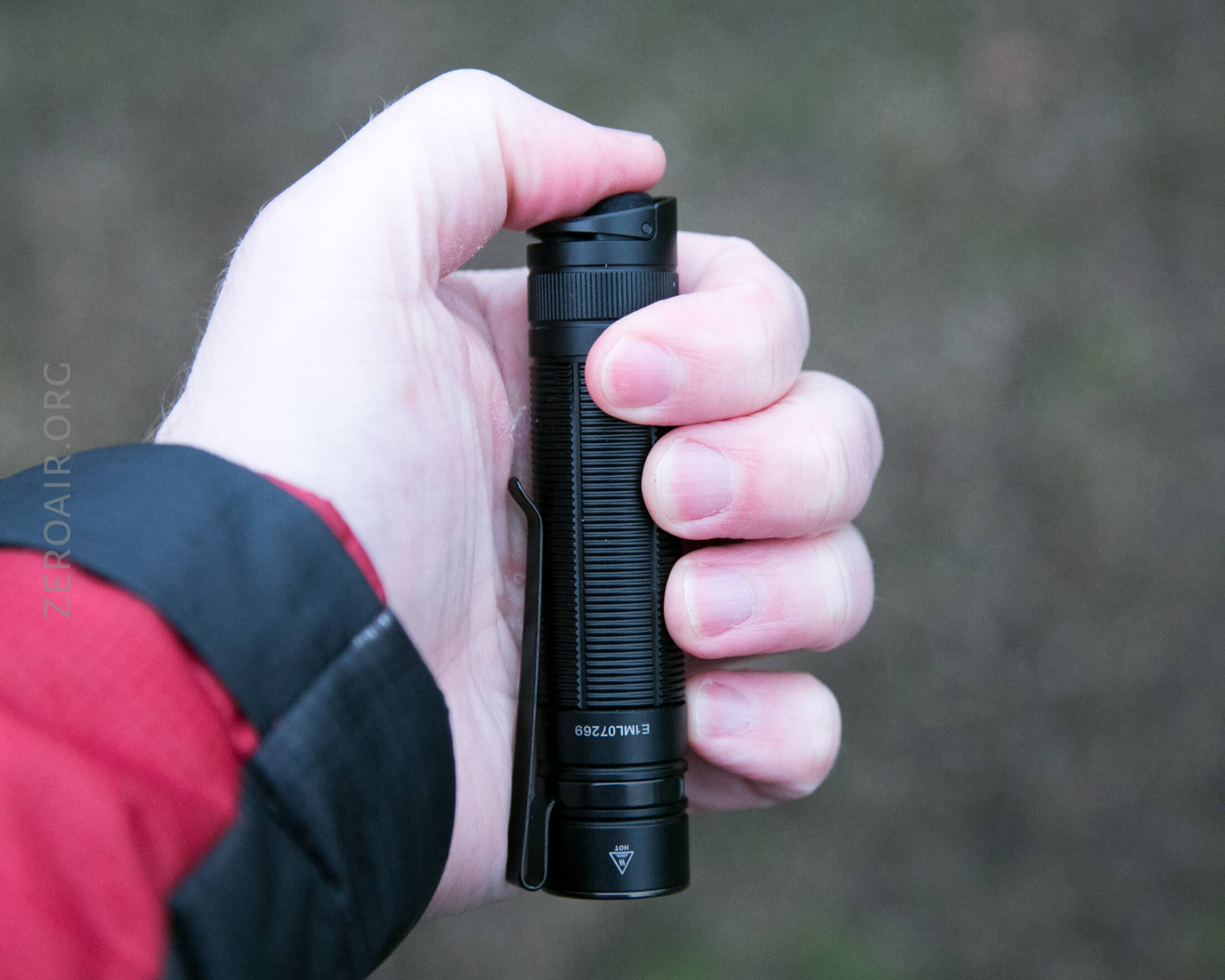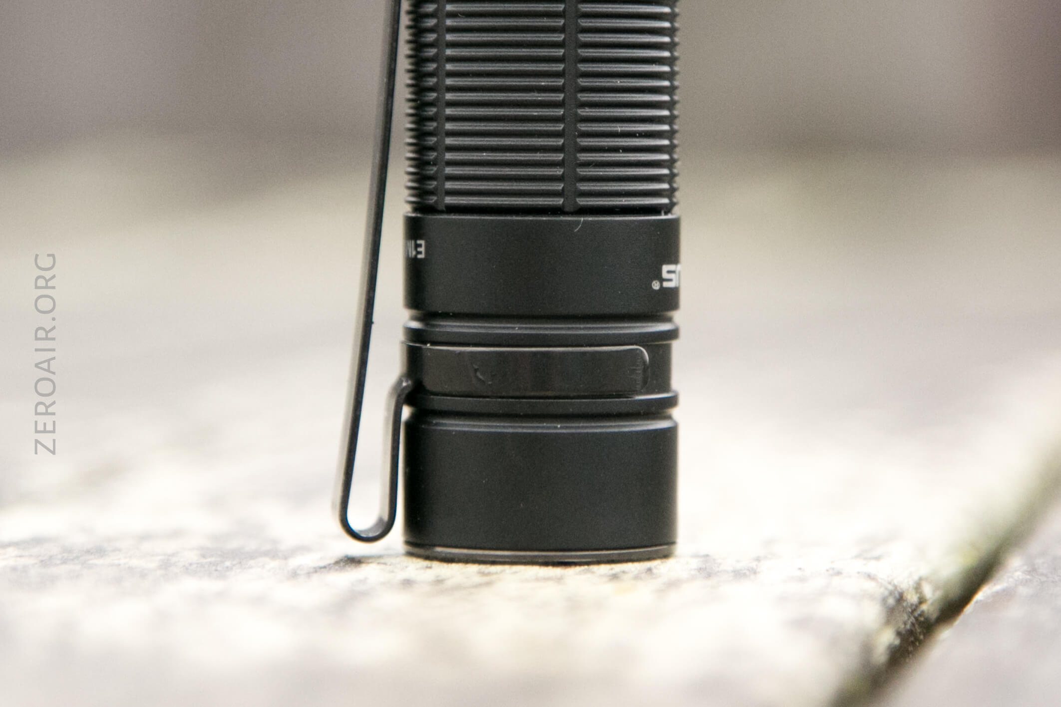 There are two switches on the E1, and they’re both on the tail end. One’s a common mechanical switch and is very proud. The other is a paddle e-switch and occupies half a side of the tailcap, so is also easily accessible.