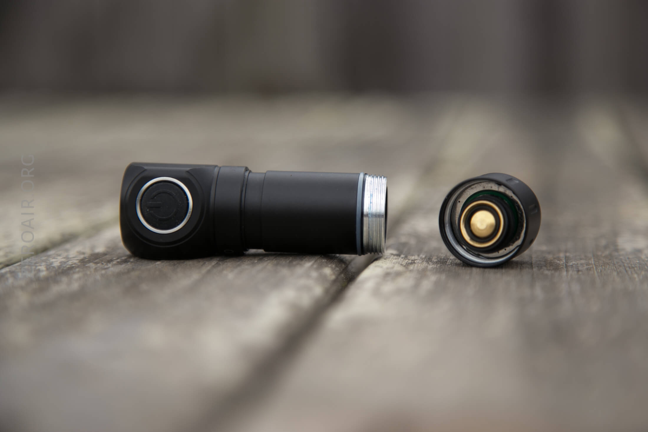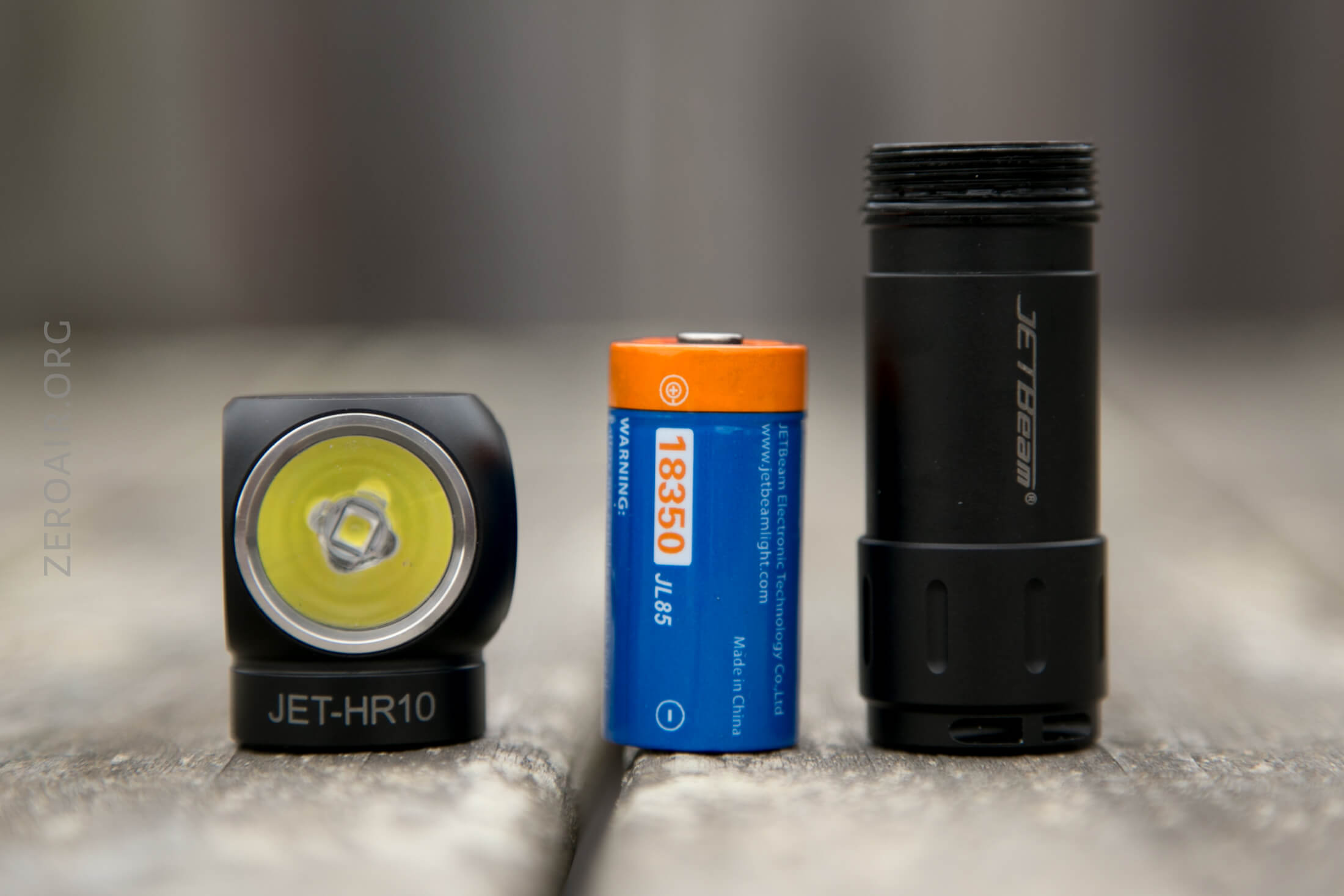 Power is provided to the HR10 by a single 18350 lithium-ion cell. This is a regular button-top cell, despite the light also offering onboard charging.