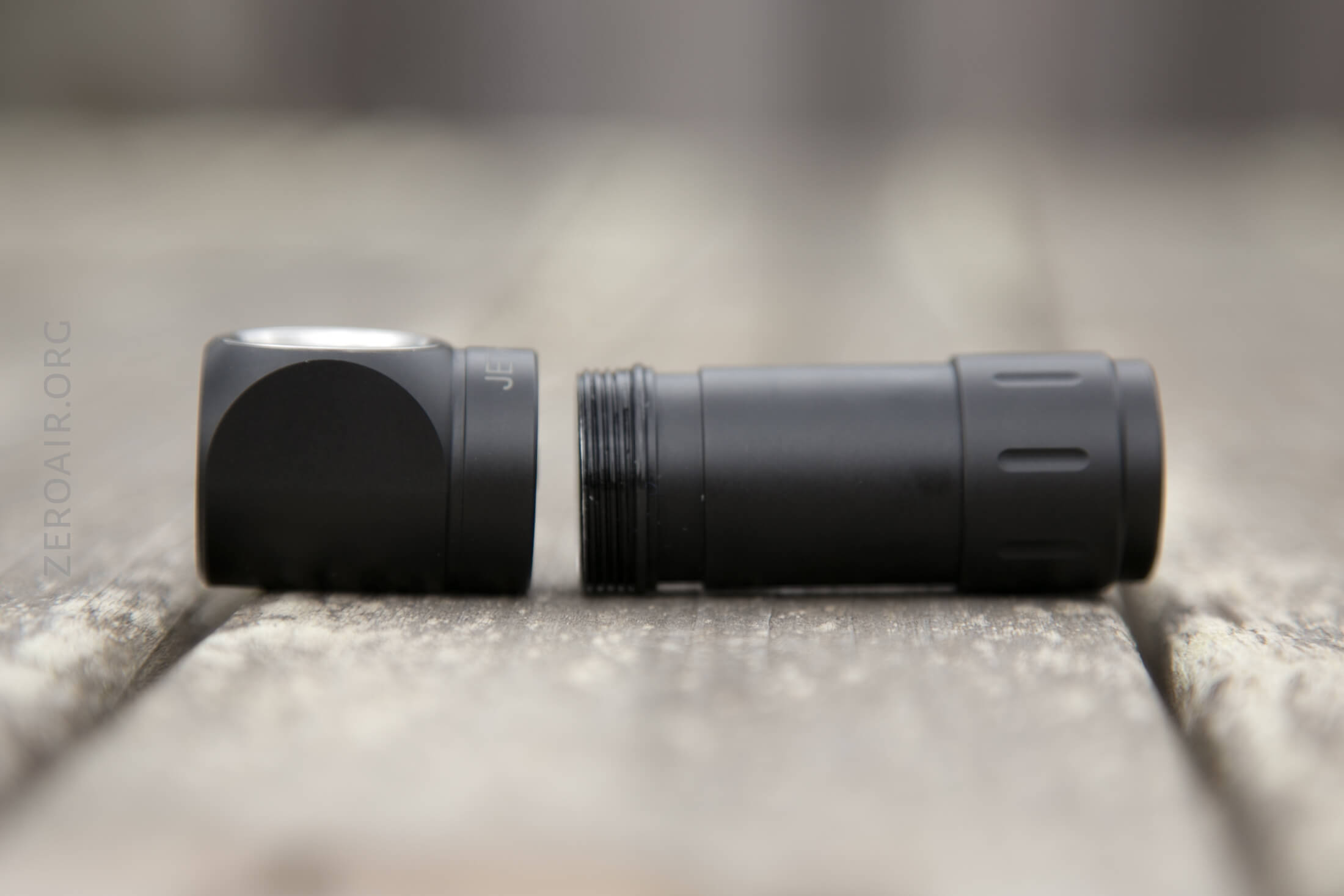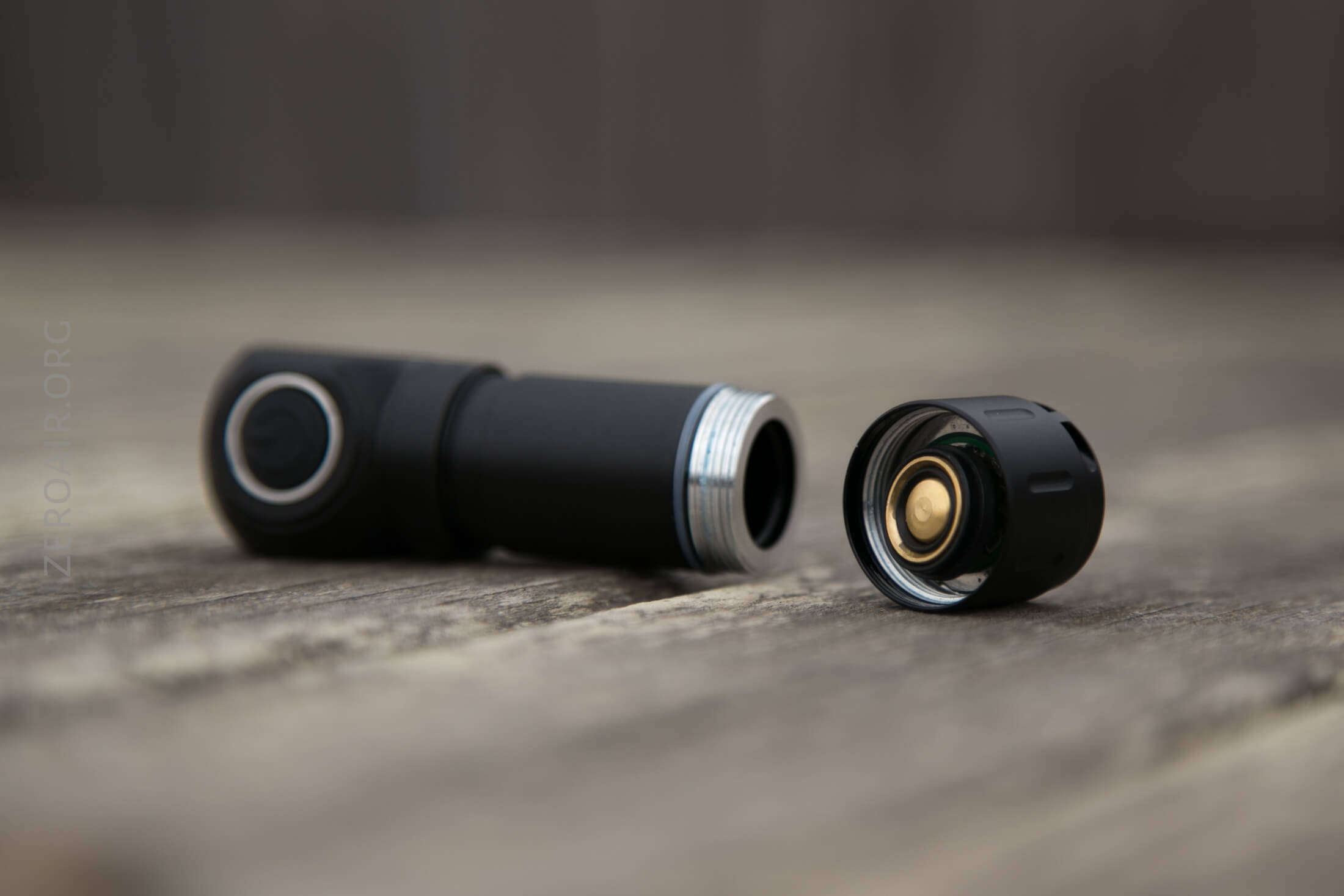 The head end has anodized threads. They’re square-cut and kind of long, with good lube coverage. It’s possible to mechanically lock the light with just a very small looseness.