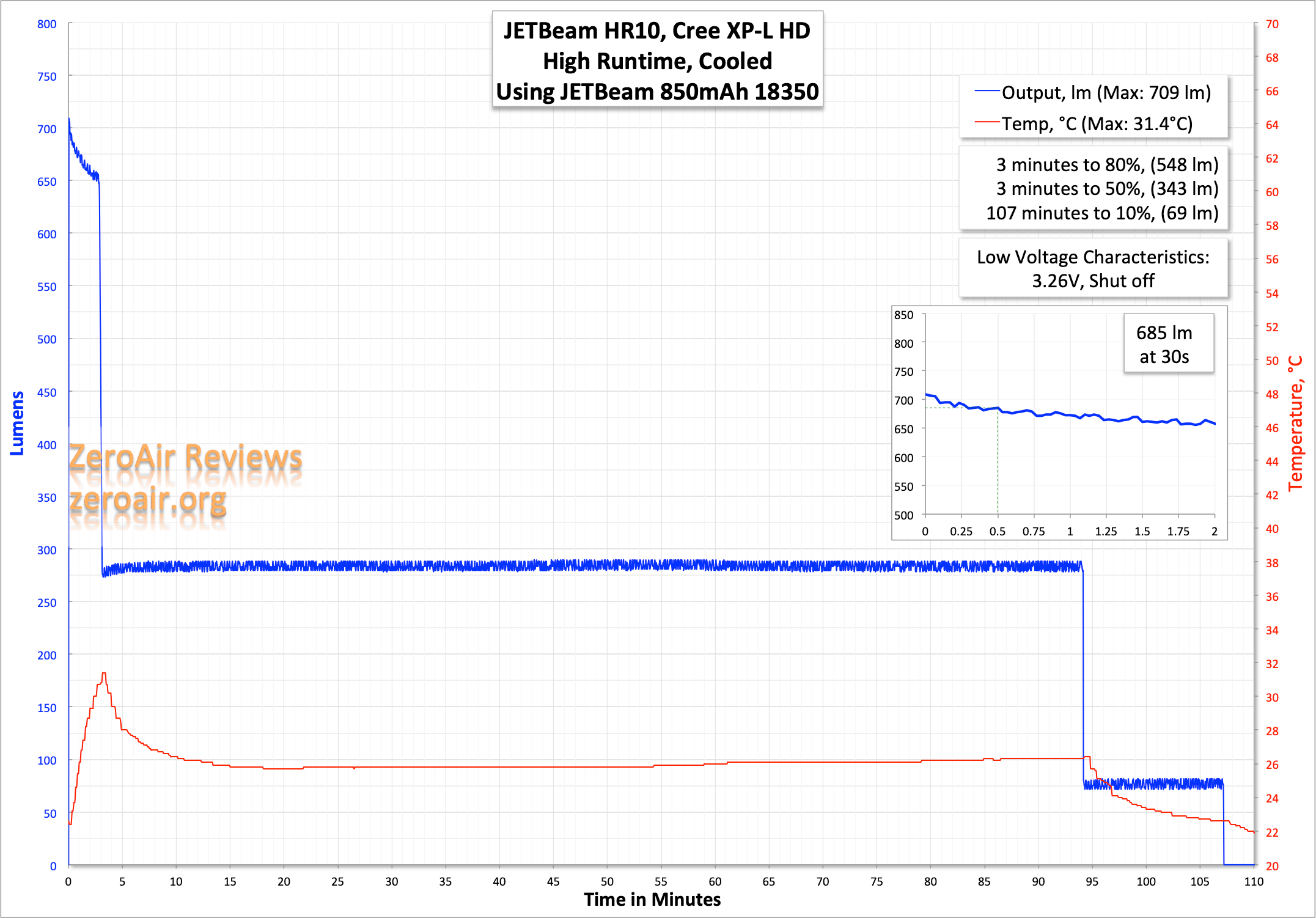 | Measured Lumens (at 30s) | 685 (97.9% of claim)^ |