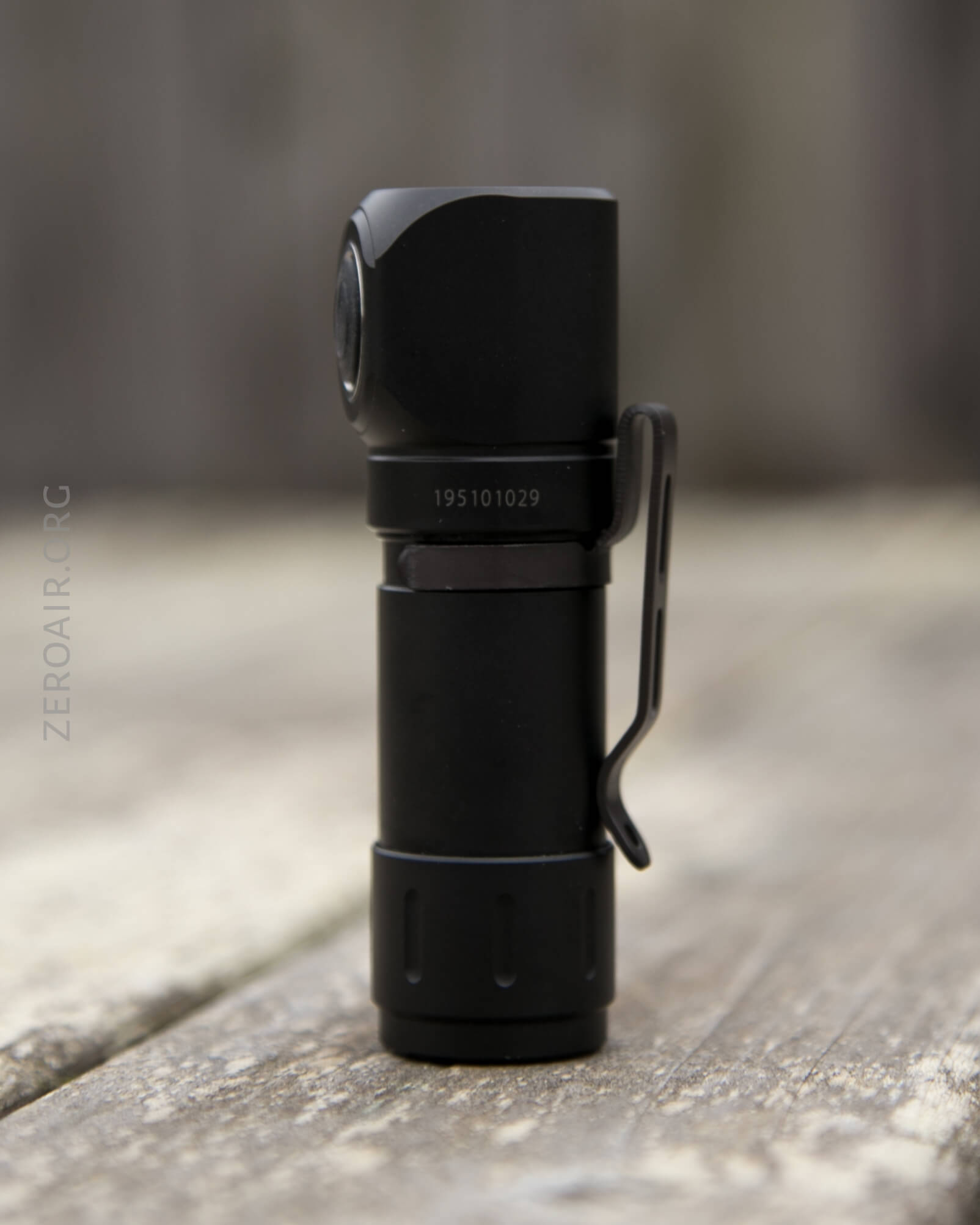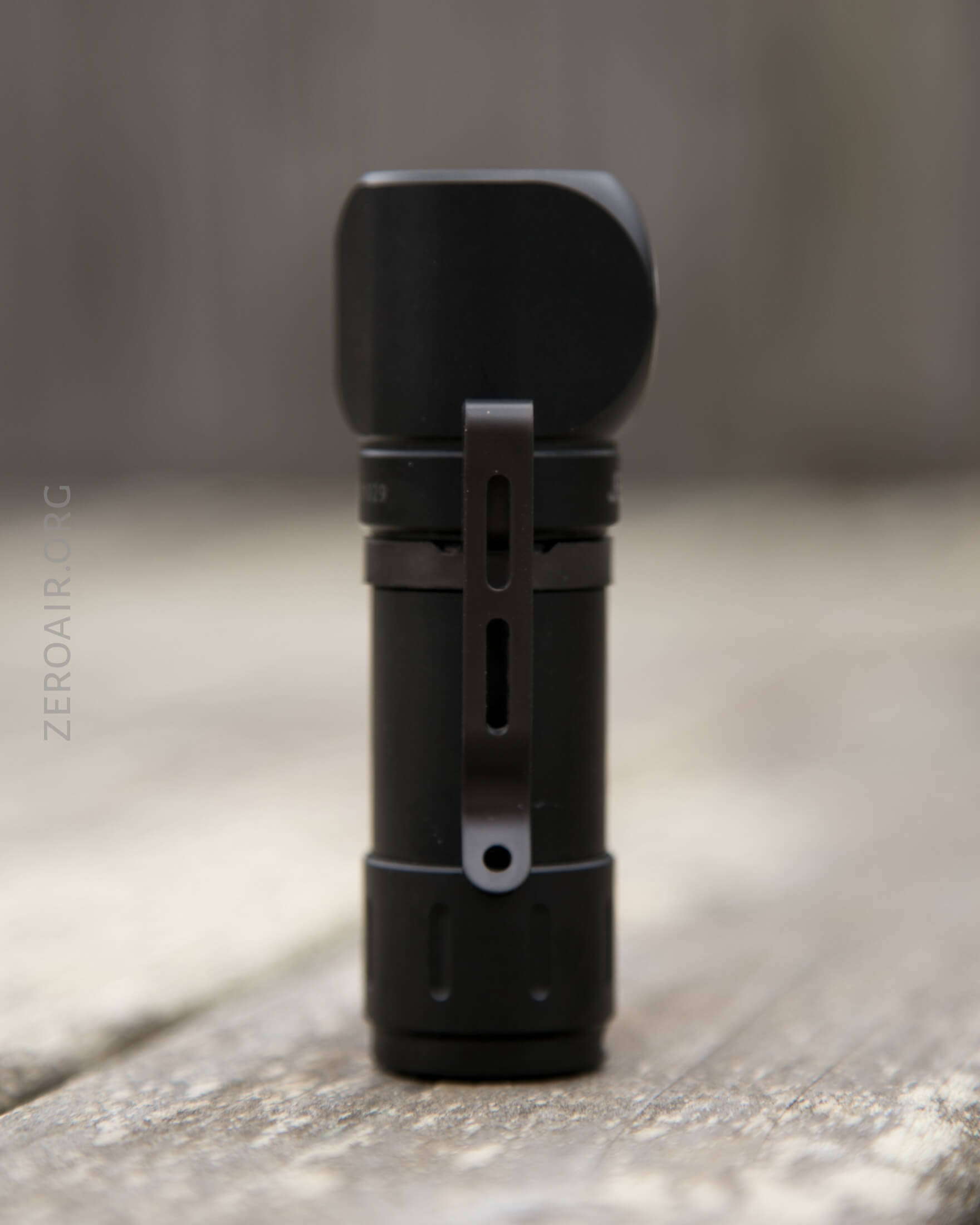 The pocket clip is a friction-fit clip, fitting only on the head end allowing “head up” (but “bezel out”) carry. The clip is fine, and probably thicker metal than usually seen in this type of clip. It has the style of clips typical of Lumintop.