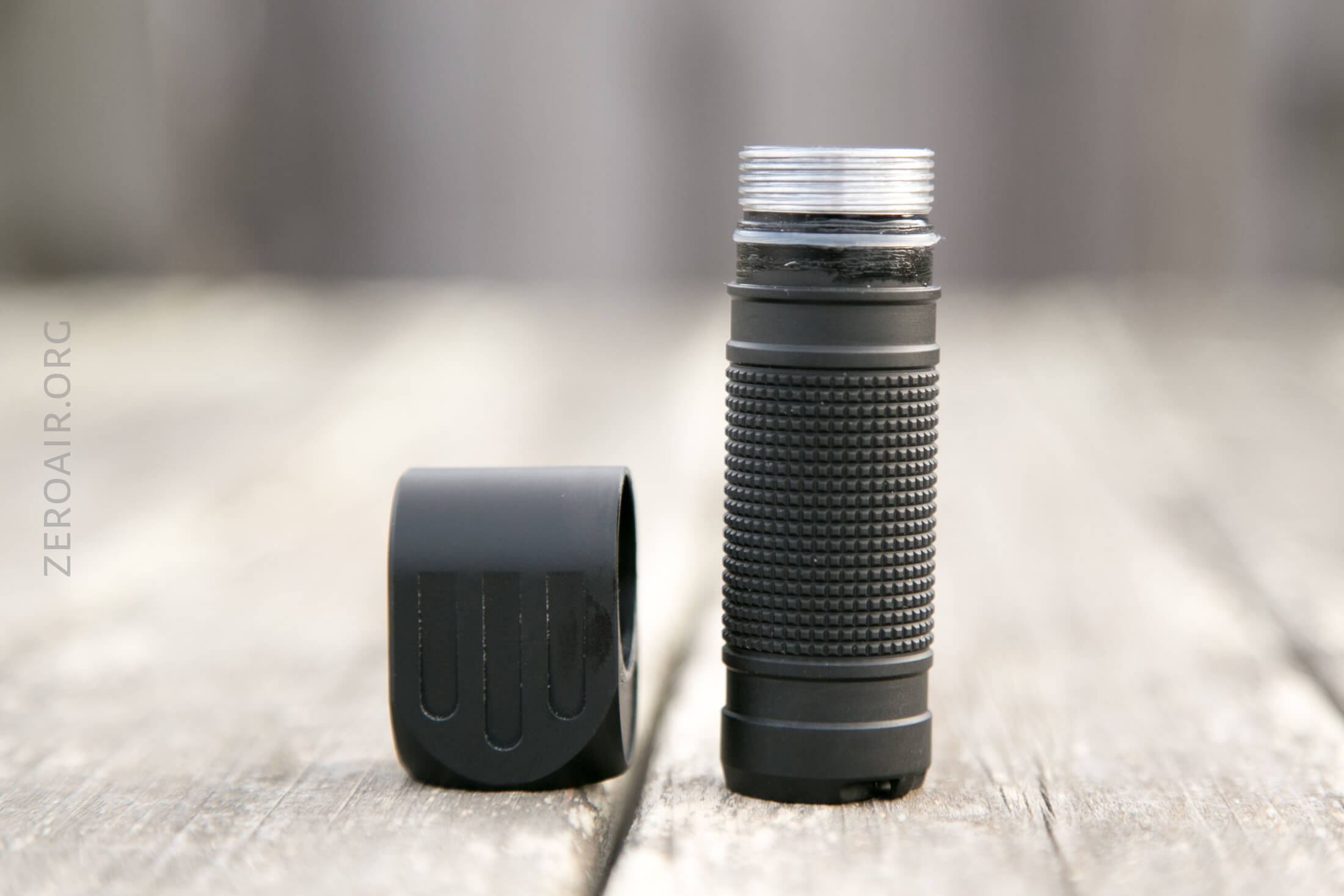 The threads on the head are unanodized. This does mean that mechanical lockout isn’t really possible. Also, the cell tube is one piece – the very end of the tailcap does not come off.