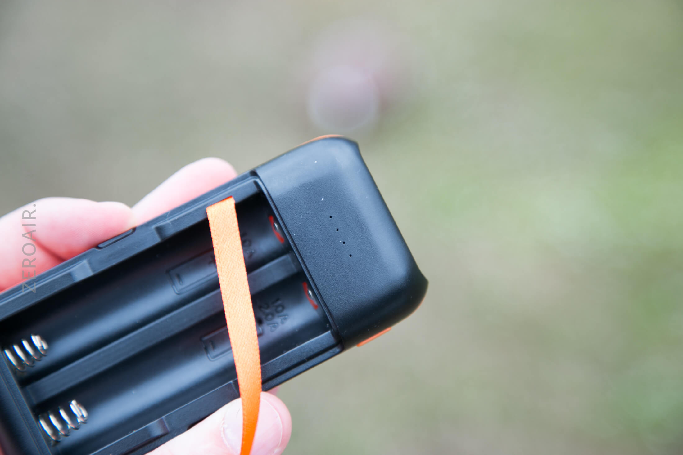 There are a few other features and technical details, but they’re covered by the manual. Like charging specifics – One cell charges at 2A, 2 cells charge at 1A each. With one cell in, USB out is 1A max. With 2 cells in, USB out is 2A max. The lights flash in meaningful ways, too. When something’s wrong, all 4 flash. When charging is complete, they are all lit steadily. When charging, they “flicker one by one.”