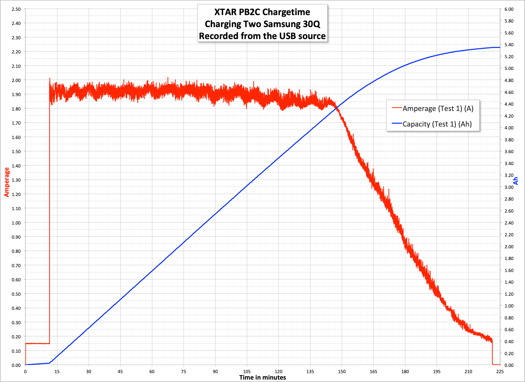 But the second seems to much more fairly describe charging two cells at ~2A, which is the claim made by XTAR.