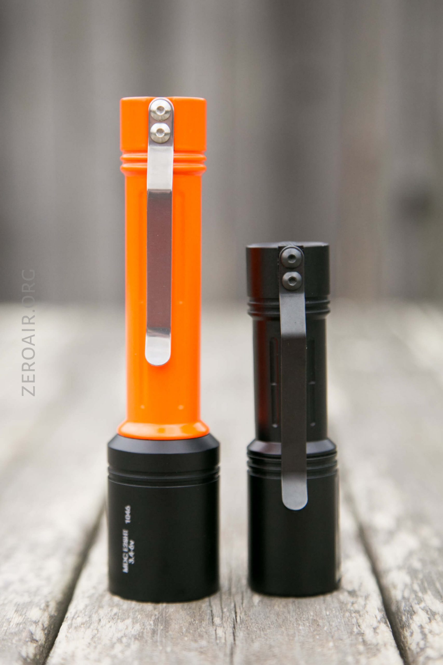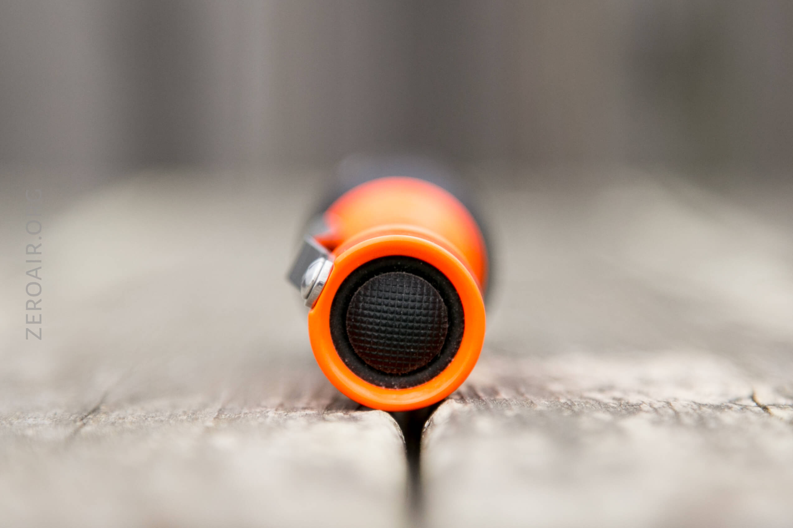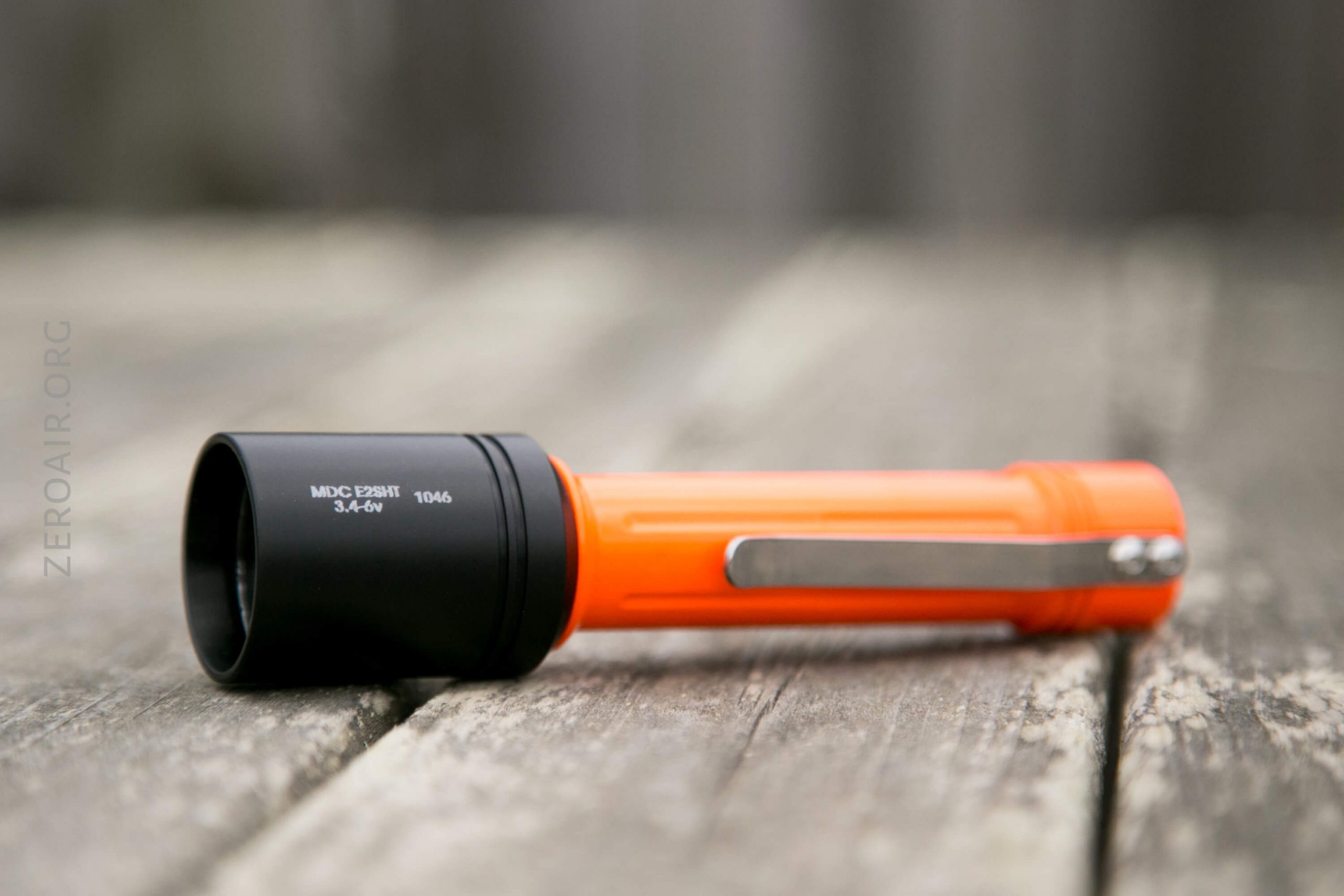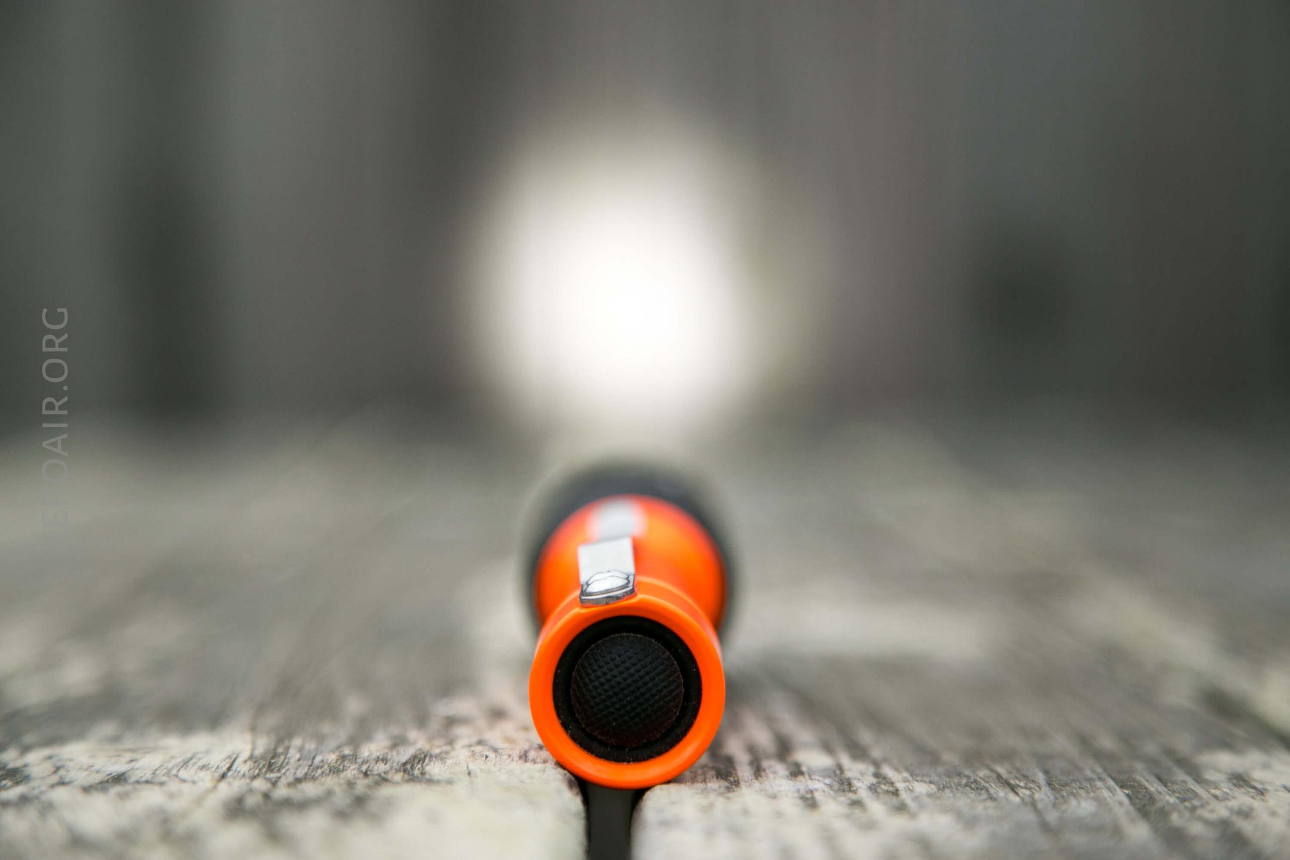 The build quality here is unsurprisingly fantastic. Be reminded any body you see this head-on isn’t included. But any E-Series light will work. I happen to have only two – this glossy orange (very limited edition) Malkoff 16650 (or 2xCR123) body and the other body below.