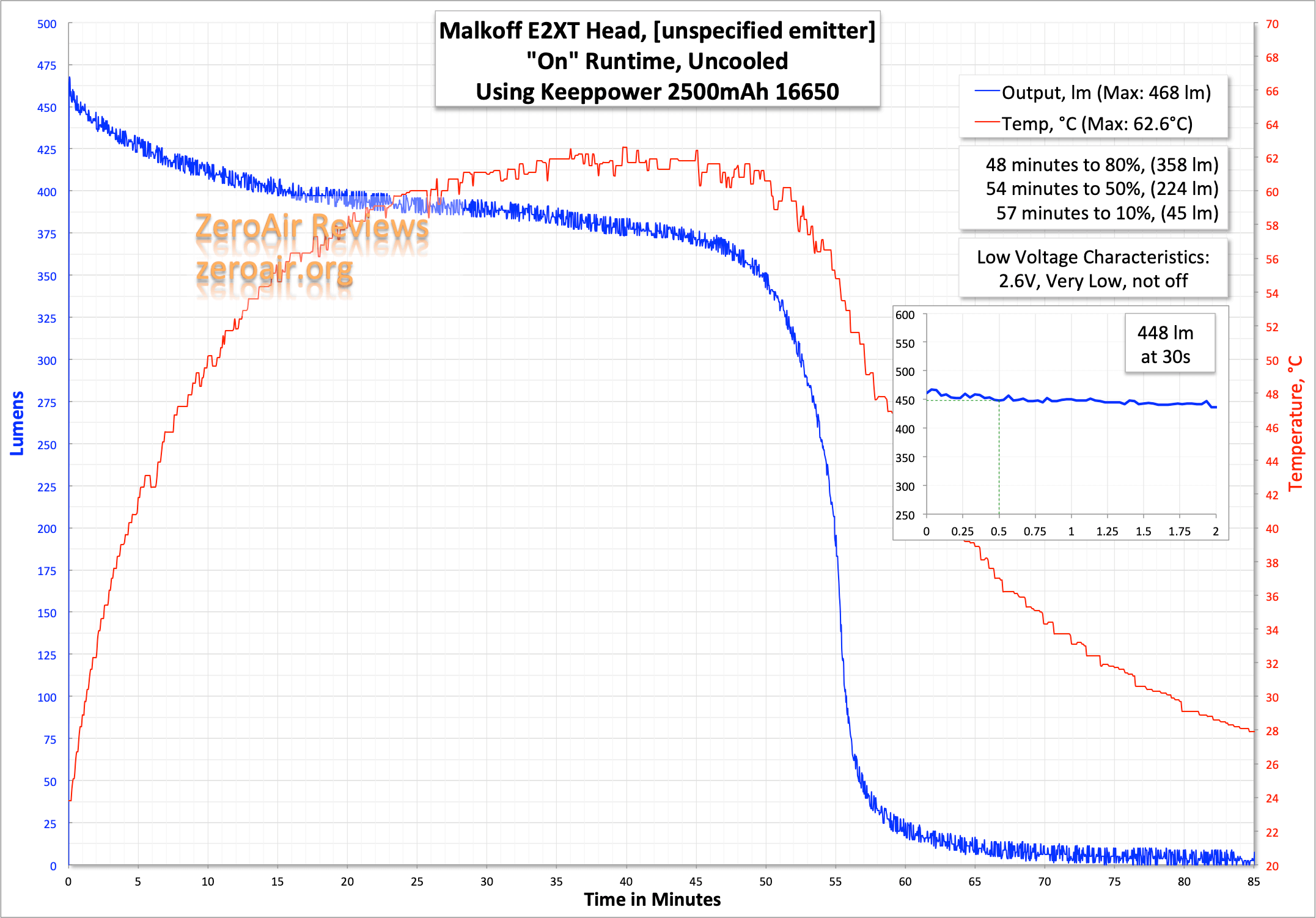 | Measured Lumens (at 30s) | 454 (90.8% of claim)^ |