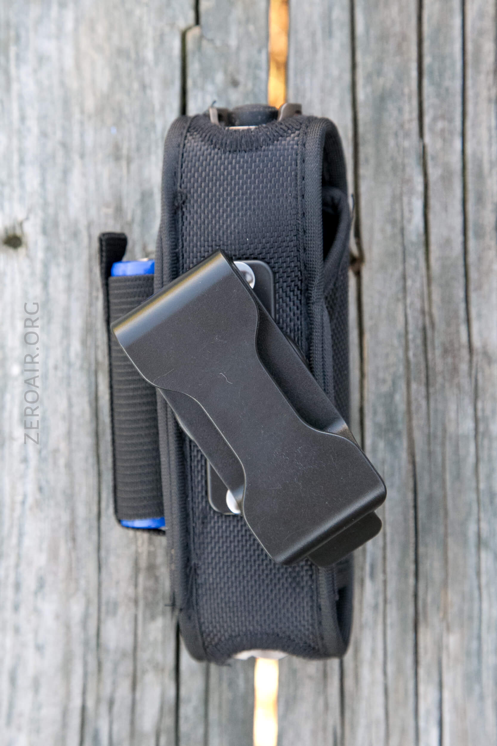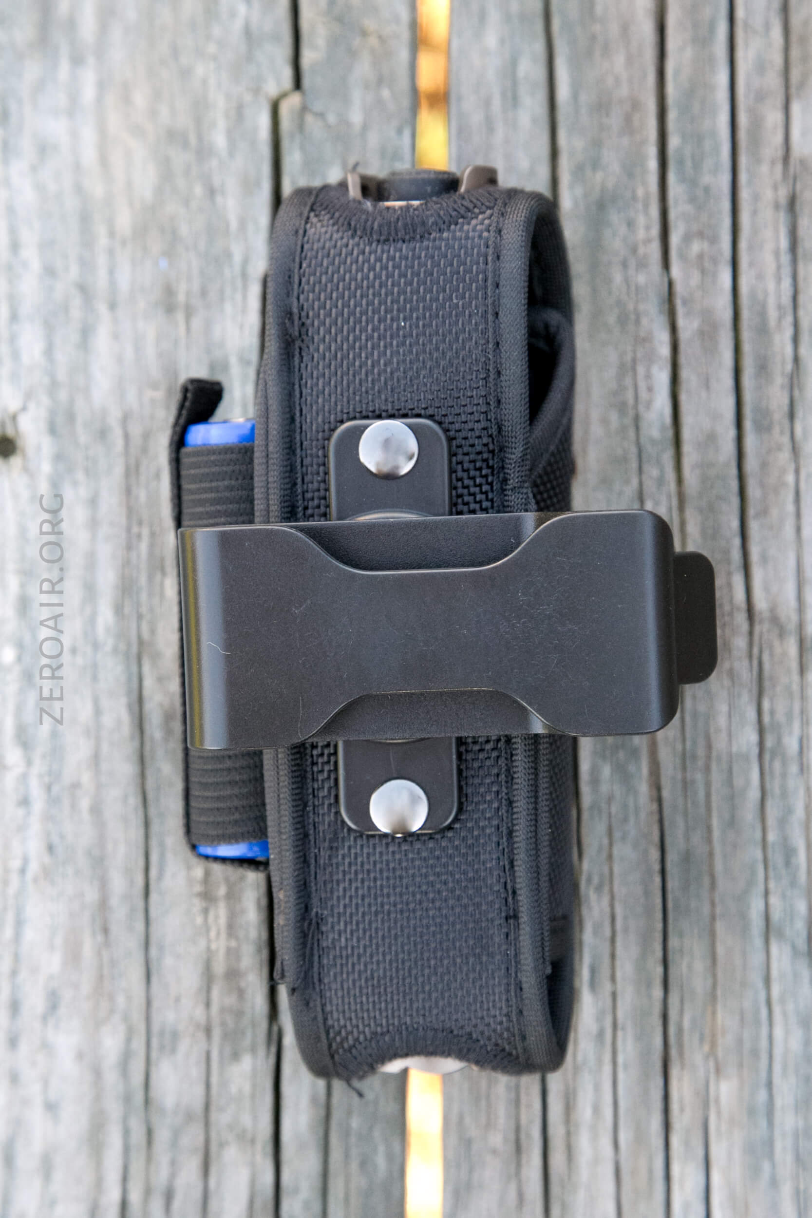 I’m not sure what the “most preferred” way to carry the PT28 will be. The nylon pouch is quite … featured. There’s a rotating plastic belt loop and a stretchy 18650 holder.