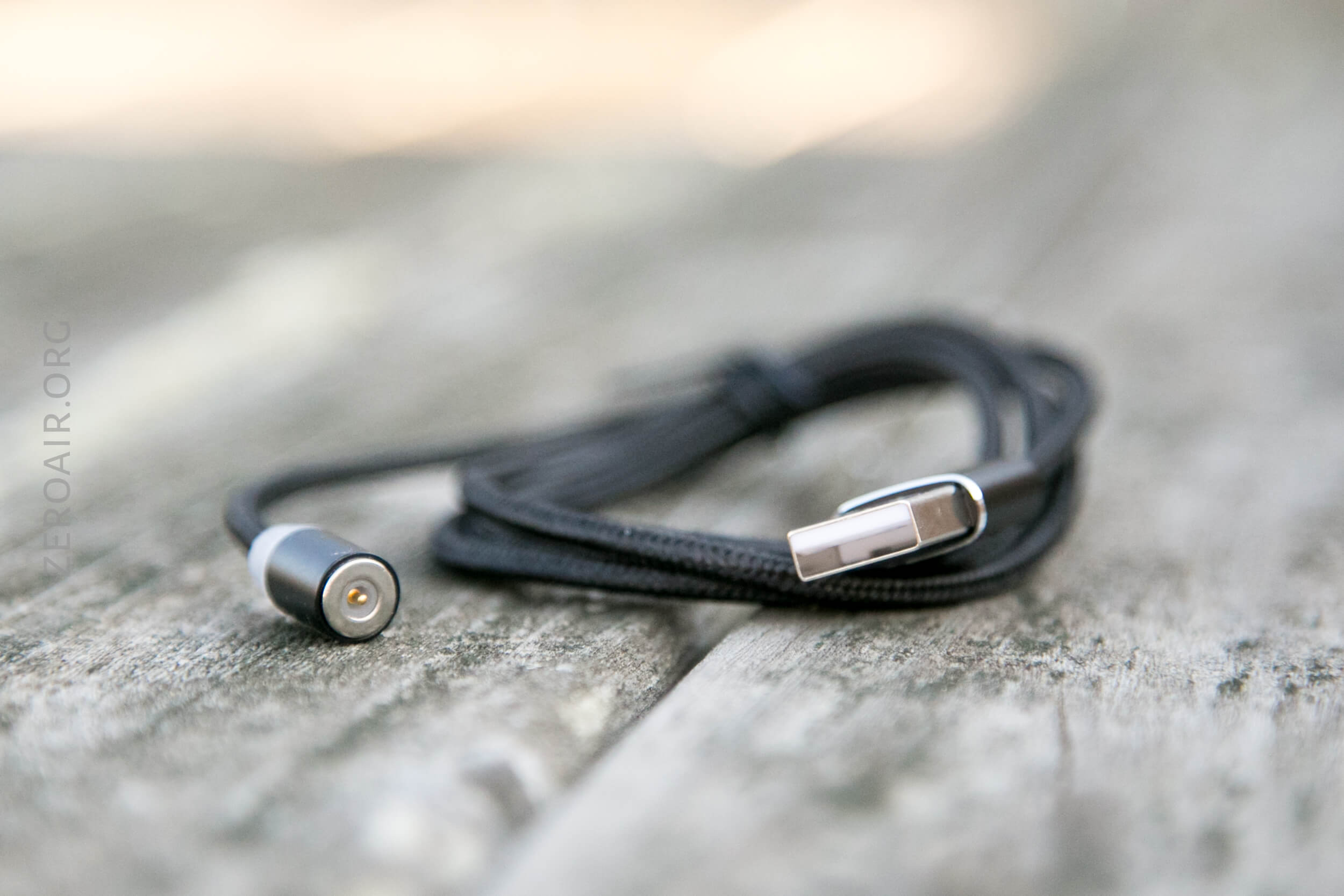 The included charge cable is USB to proprietary magnetic. That connector connects to the head port seen below.