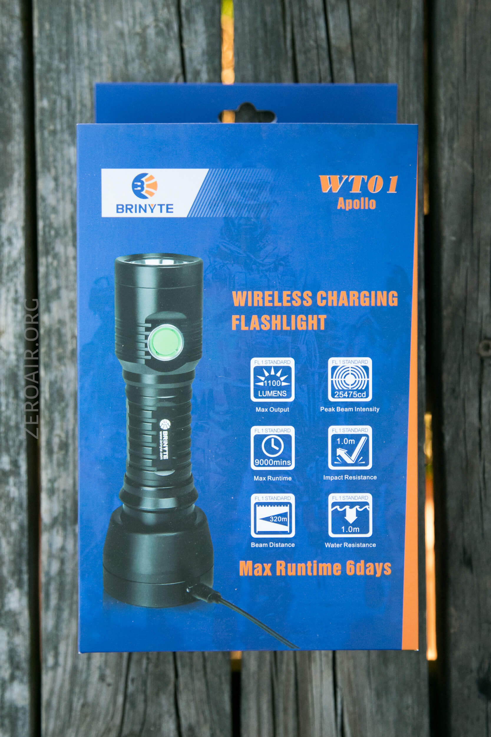 The Brinyte WT01 Apollo Flashlight features wireless charging and a complete package. When charging base power is cut, the light comes on!