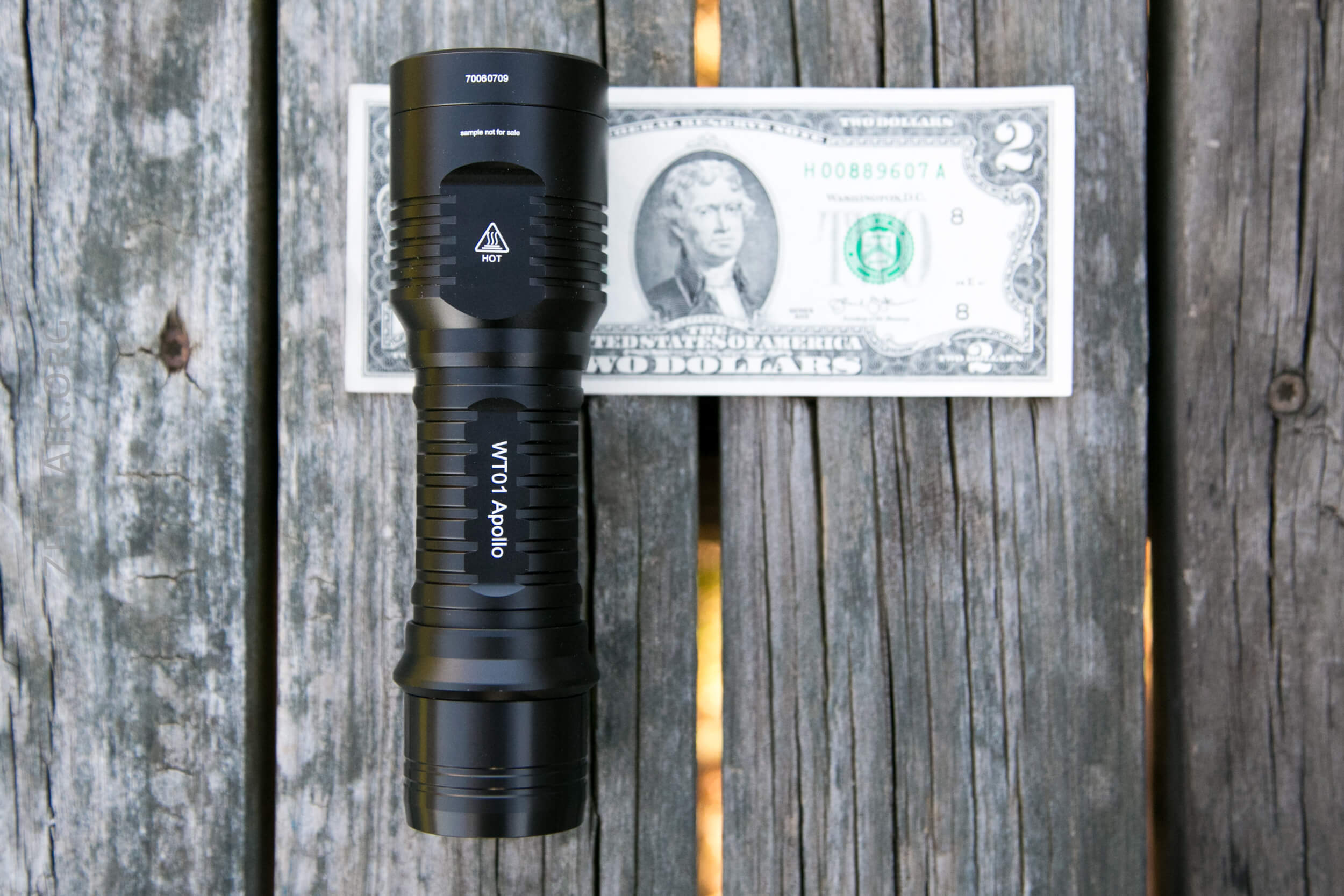 Officially, the WT01 is 156mm x 33mm x 45mm, and weighs 235g without the cell.