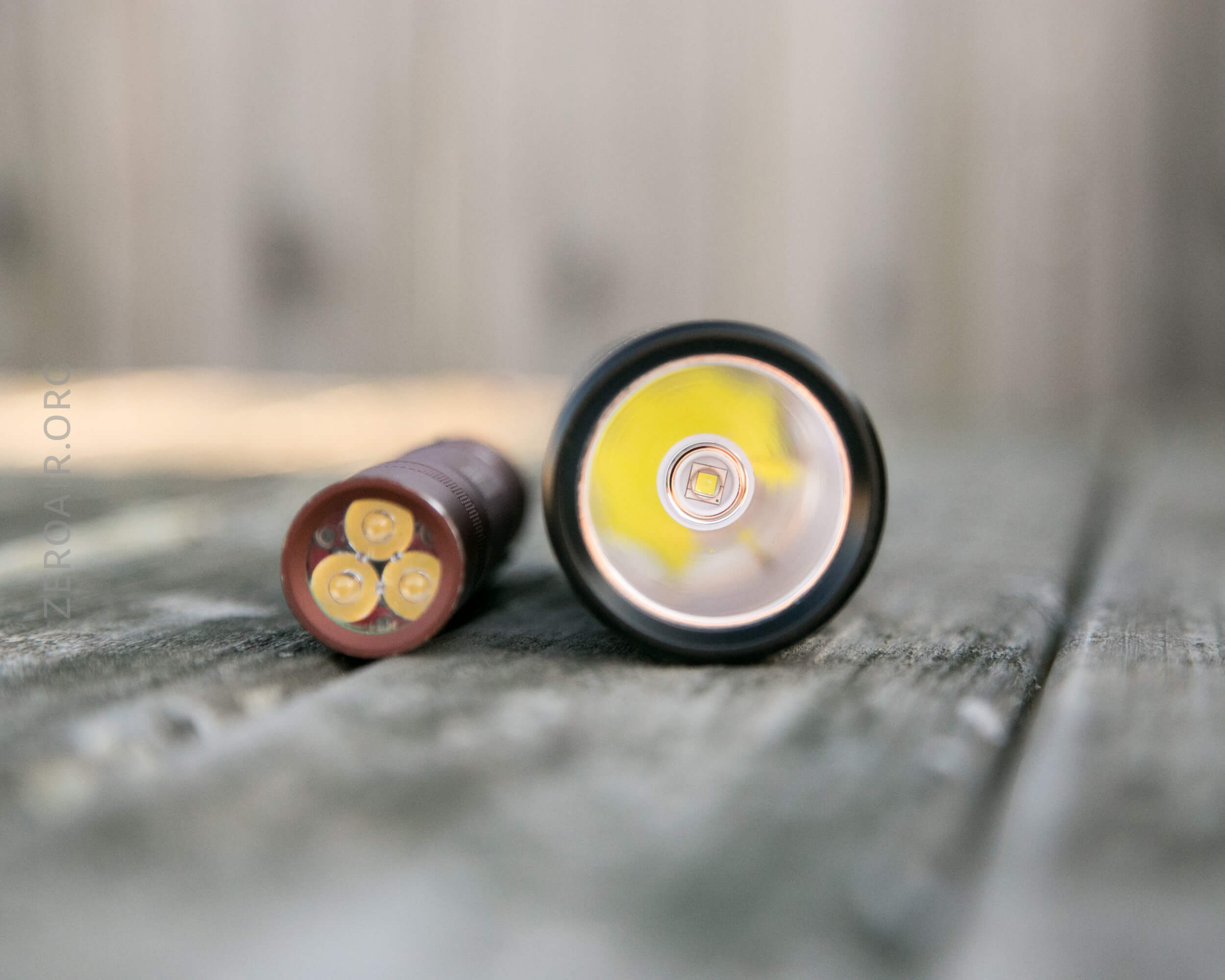 ^ Measurement disclaimer: Testing flashlights is my hobby. I use hobbyist-level equipment for testing, including some I made myself. Try not to get buried in the details of manufacturer specifications versus measurements recorded here; A certain amount of difference (say, 10 or 15%) is perfectly reasonable.