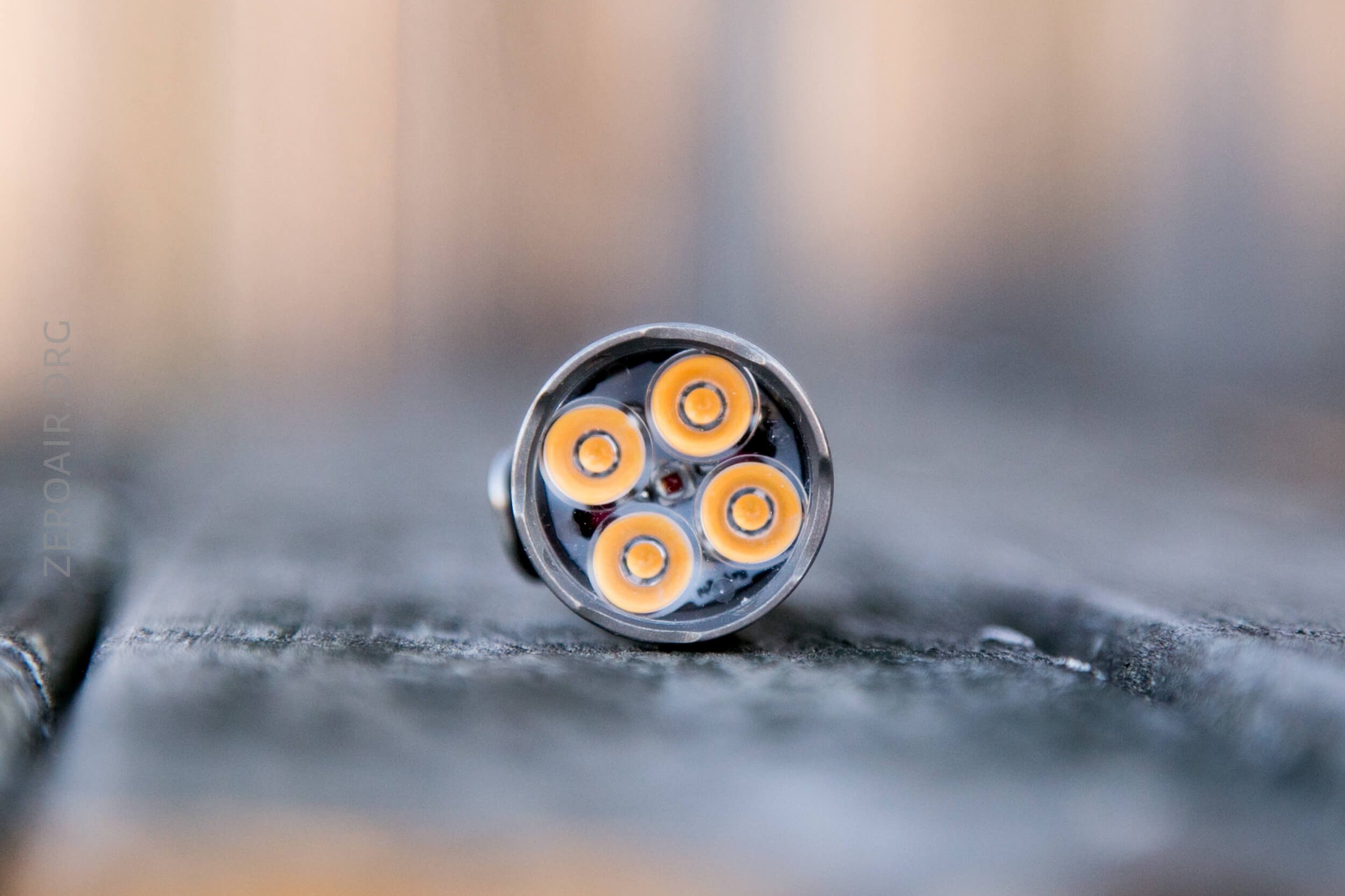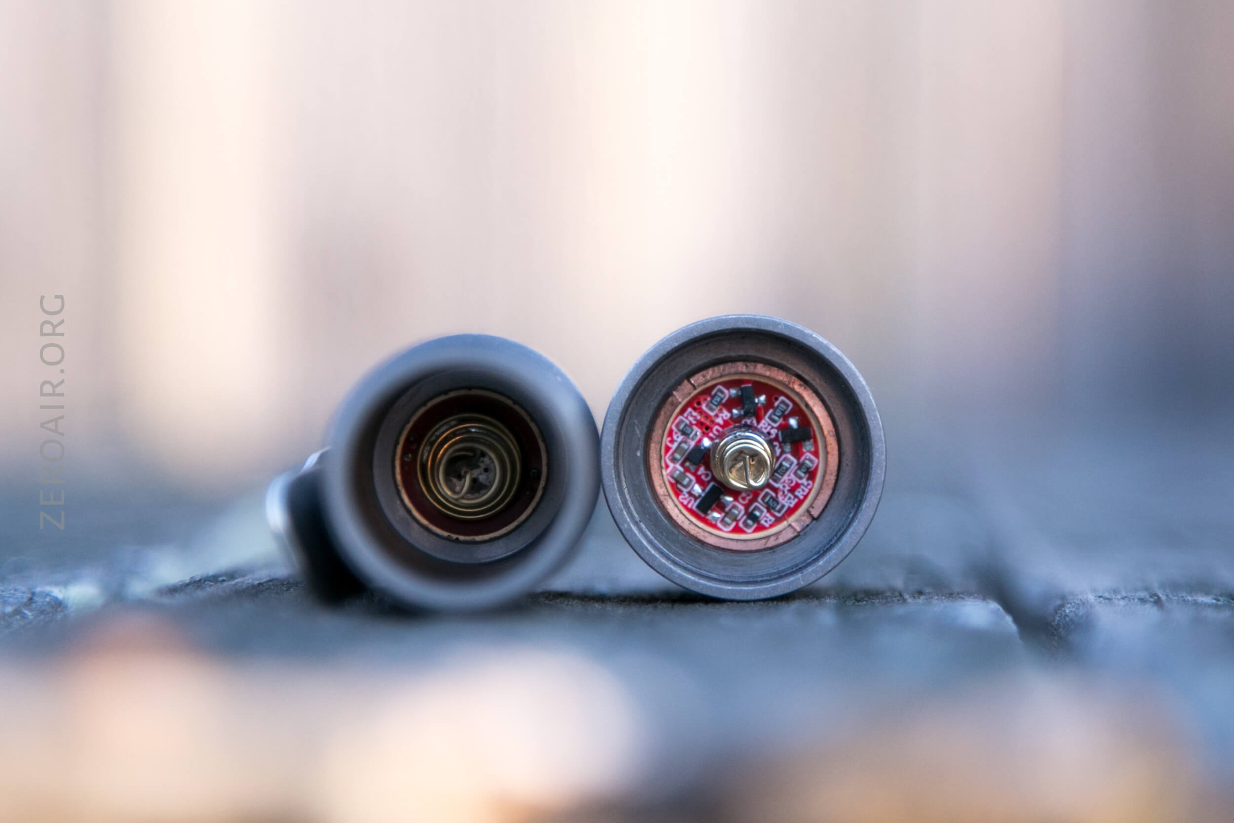 The Reylight Krystal runs on a single lithium-ion cell. In my case, it’s a single 18350 (though the longer body accepts single 18650 cells, but not two 18350 as far as I know).