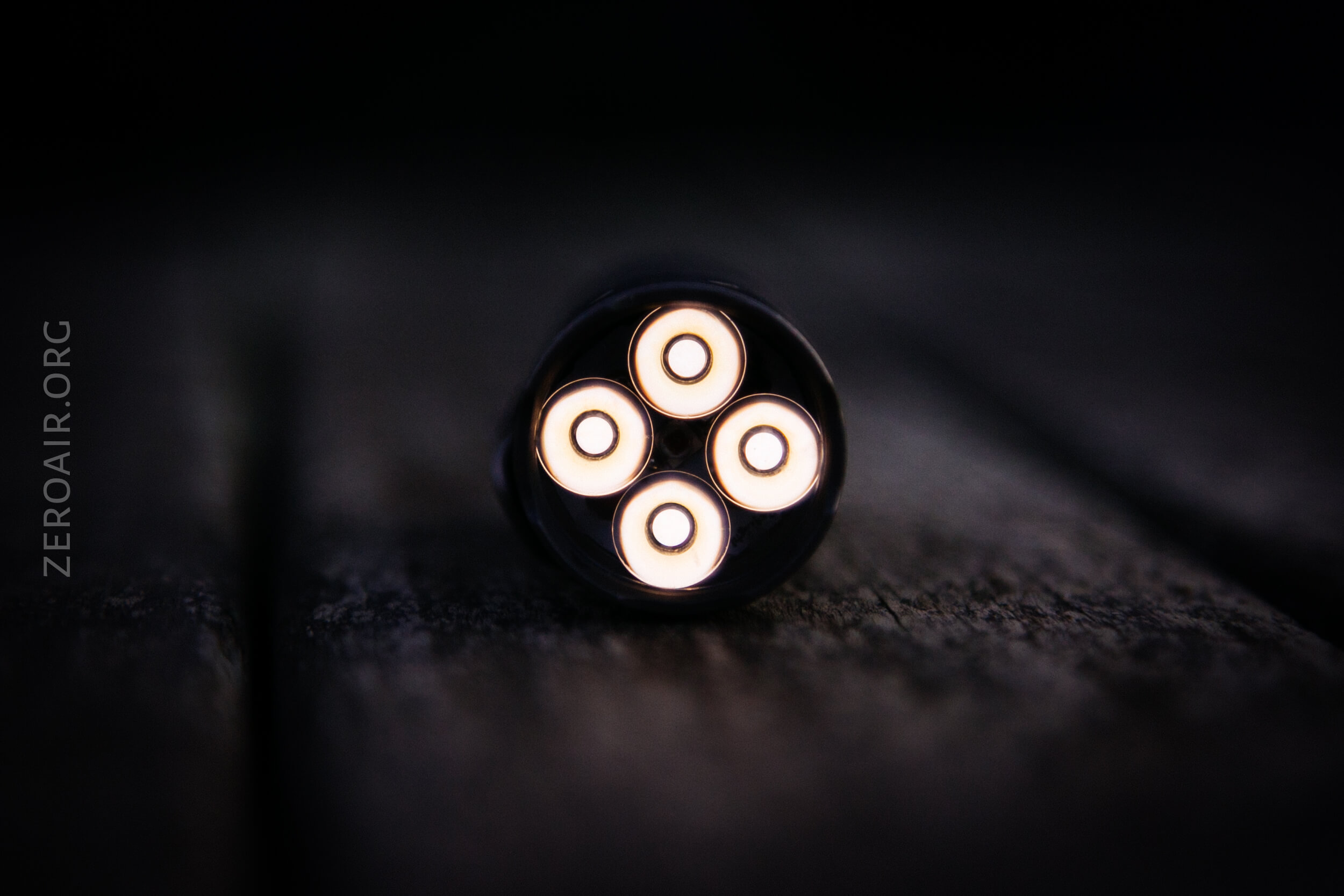 I love the flashlightyness of this light. And as far as quads go, it’s very reasonably sized. The titanium threads have the typical titanium thread feel, and the user interface is one that you probably never saw anywhere else. If you can’t adapt to UI’s very quickly, then this is probably not for you. If you’re ok with learning a new user interface, then this might be a good snag.