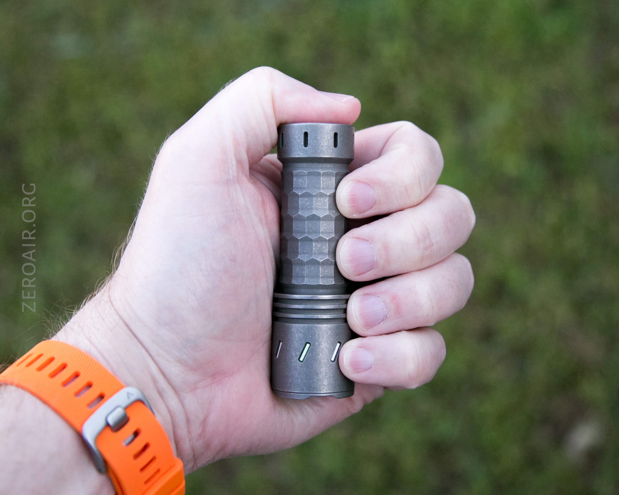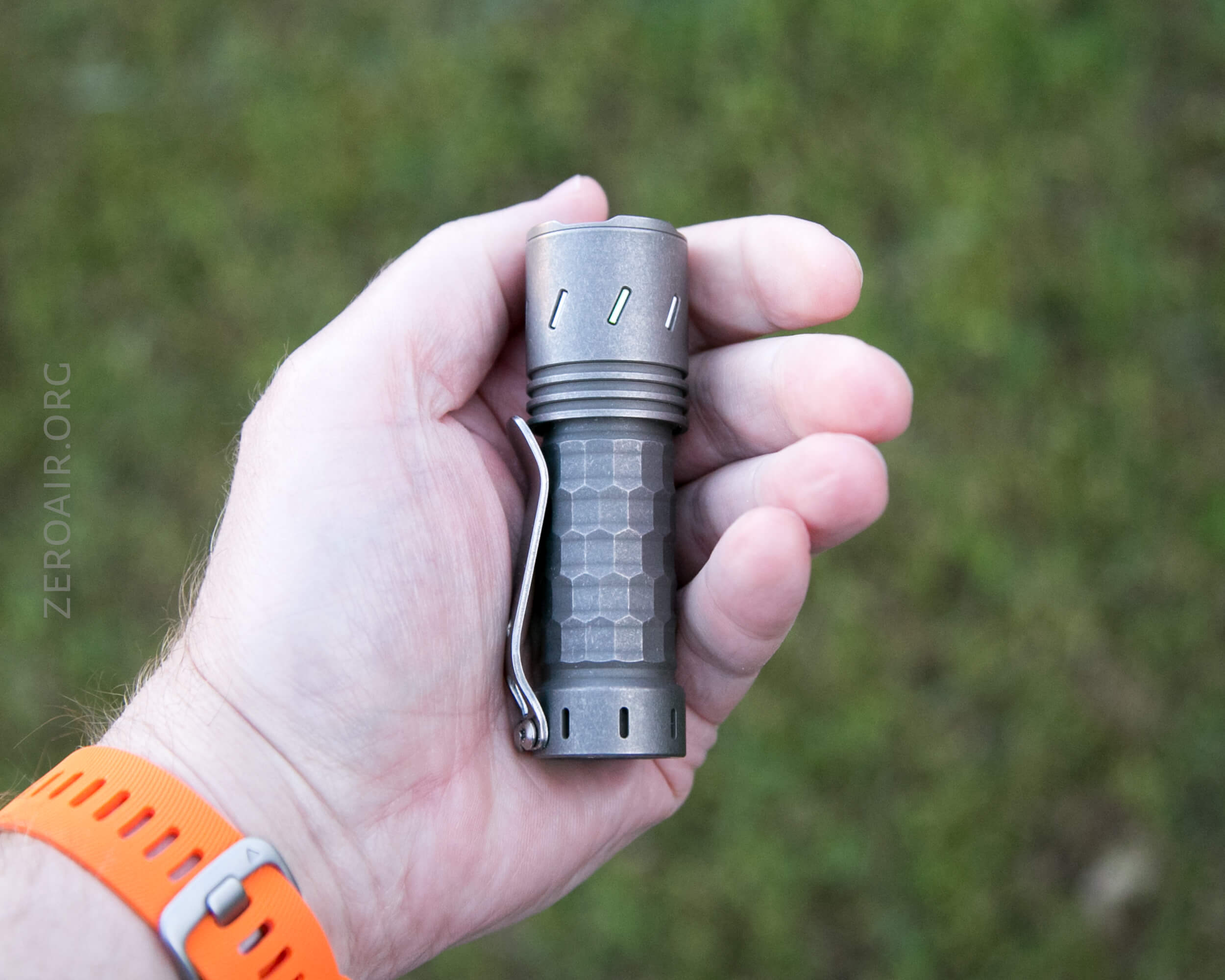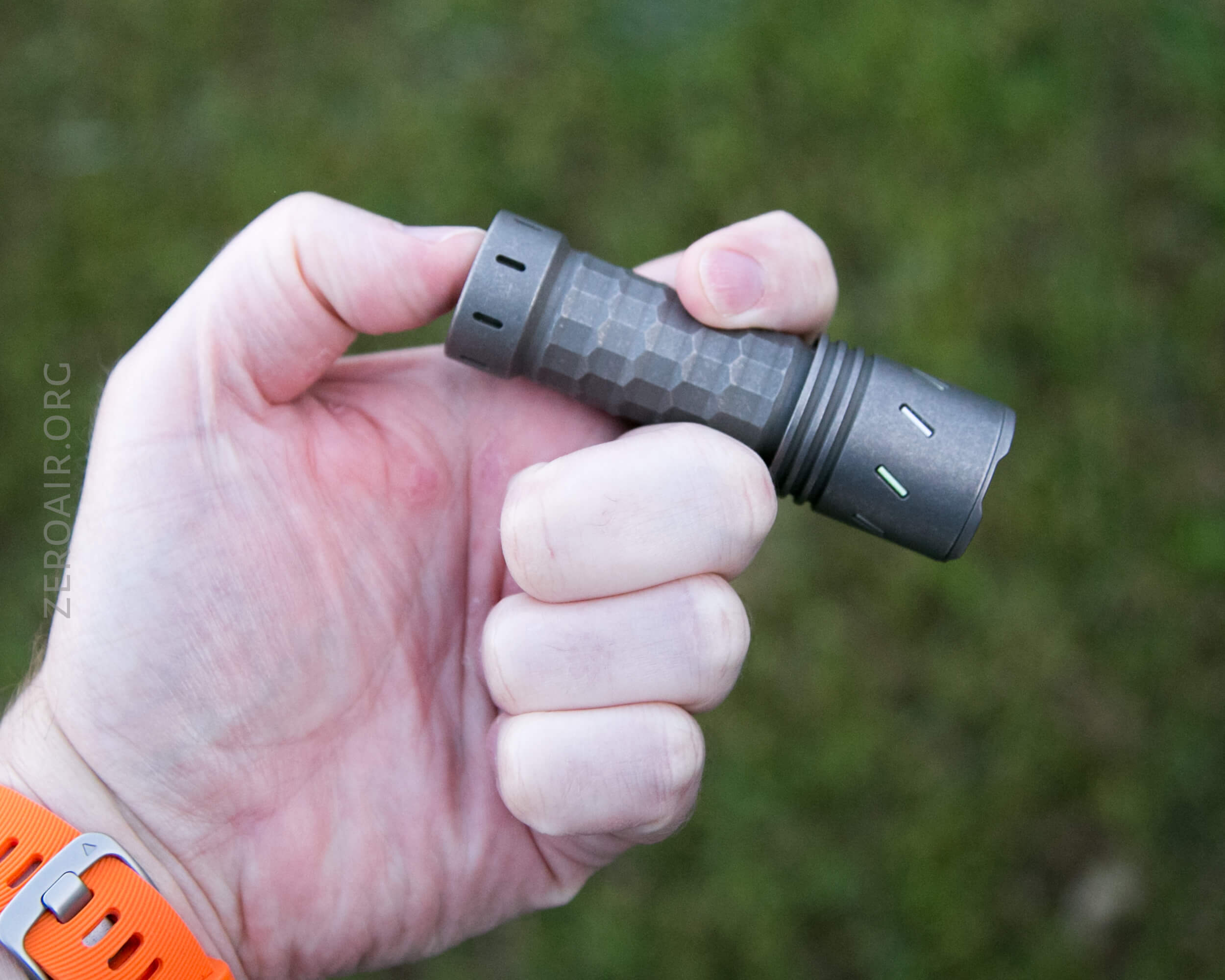 This is a very flashlighty flashlight, and that’s something I love. Titanium isn’t always my jam, but this stonewash finish is. I just really love the look of this light.