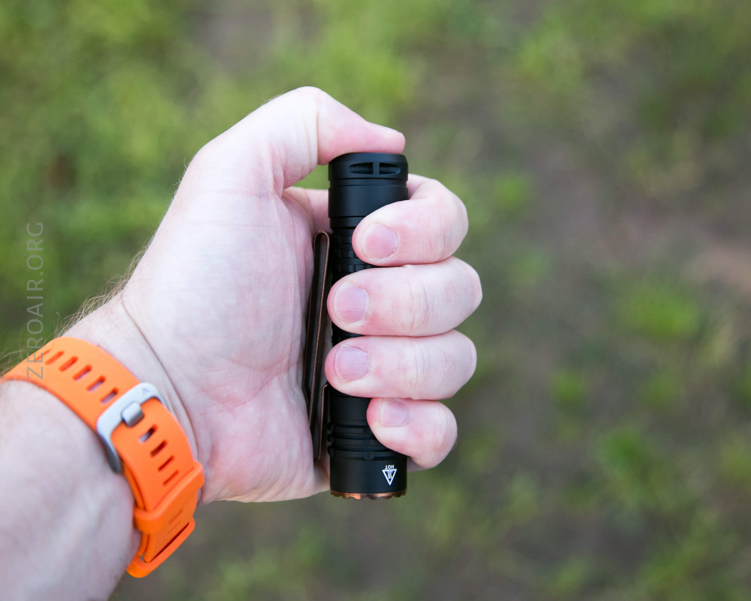The main means for carrying the TK18 Al will be the pocket clip, which is a friction-fit “two-way” clip. It only fits on the head end of the light, but the two-way part allows it to be reversible, for bezel-up or down carry.