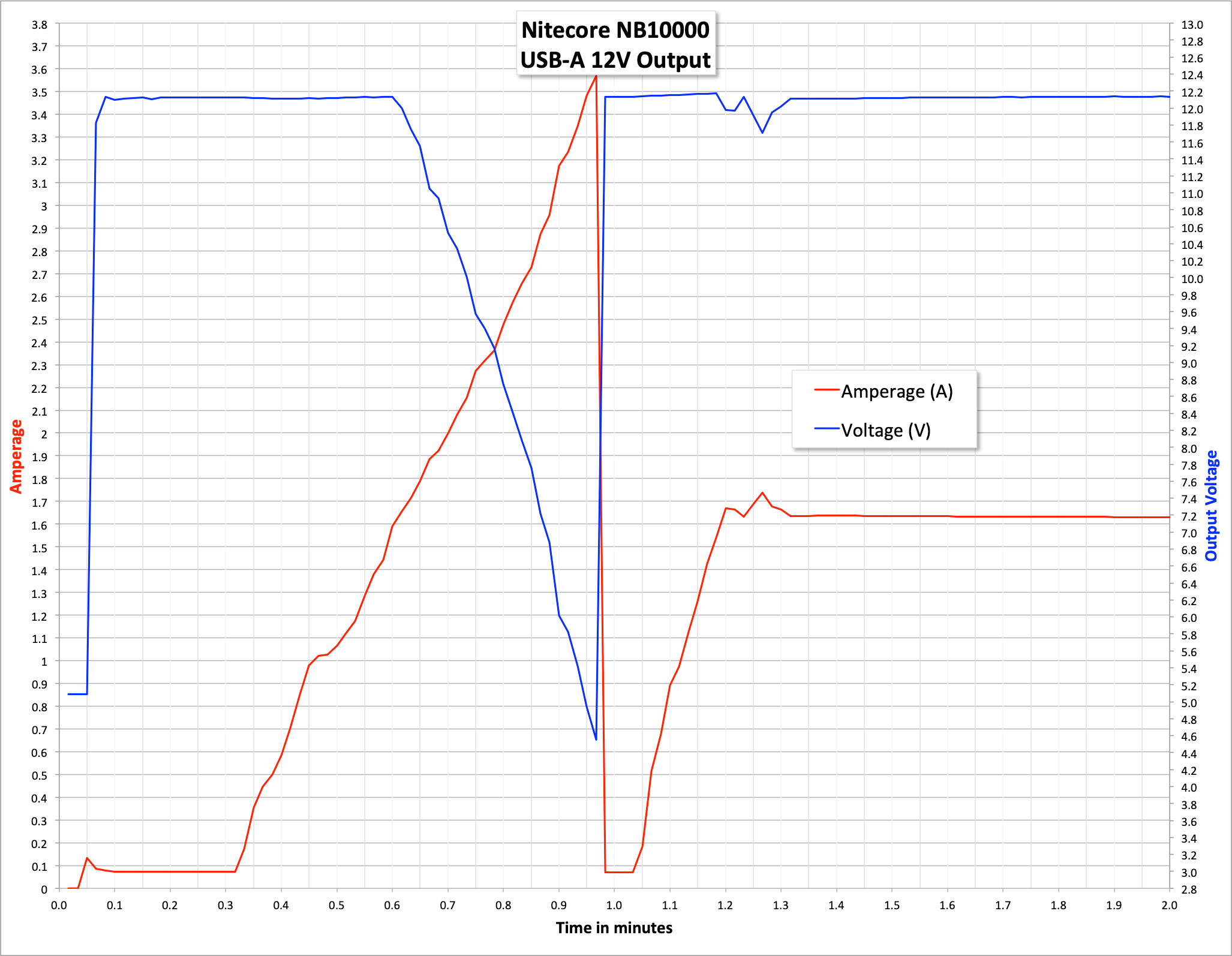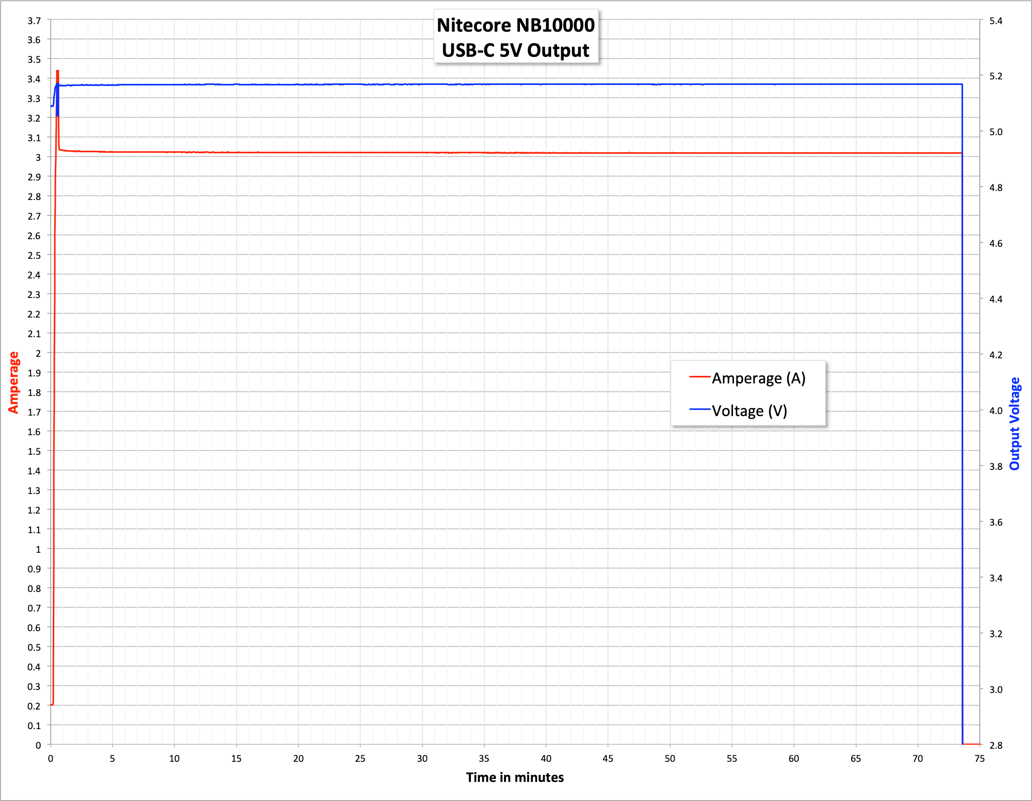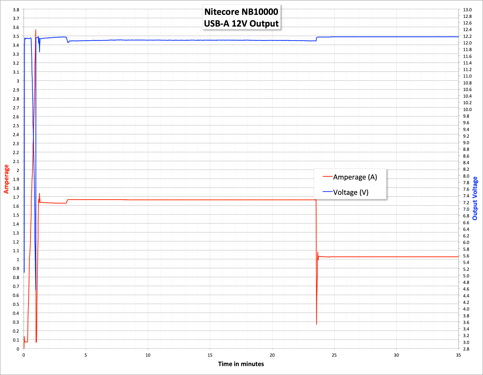 Each test includes a 2-minute extra graph, which tests the max current output I was able to see. The full graph demonstrates the NB10000 outputting power at the claimed current.