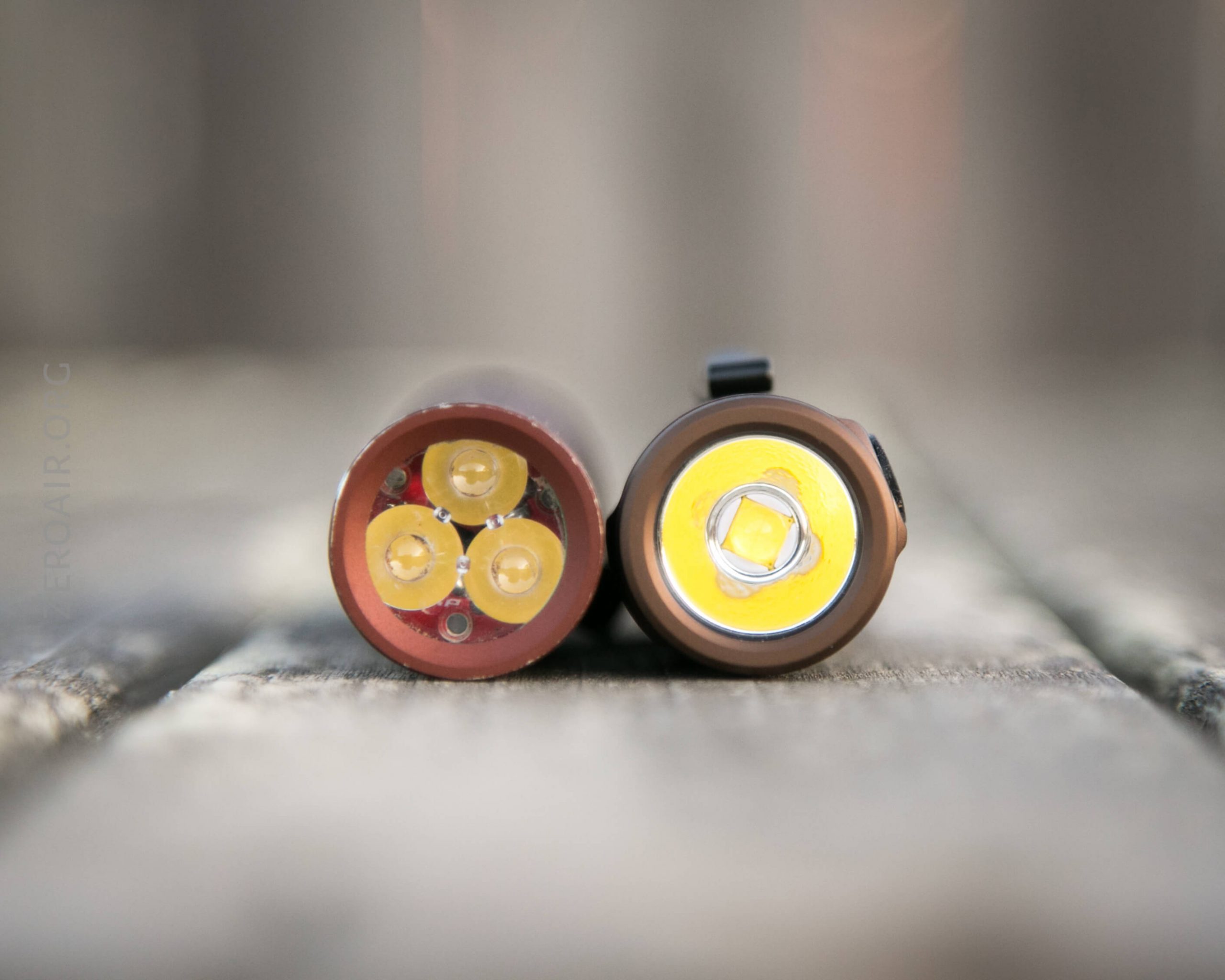 In case you’re wondering what it looks like beside the original black T1, here you go. Note that the black has a CW emitter, and the Military Tan has NW – that’s visible in the photo at the right.