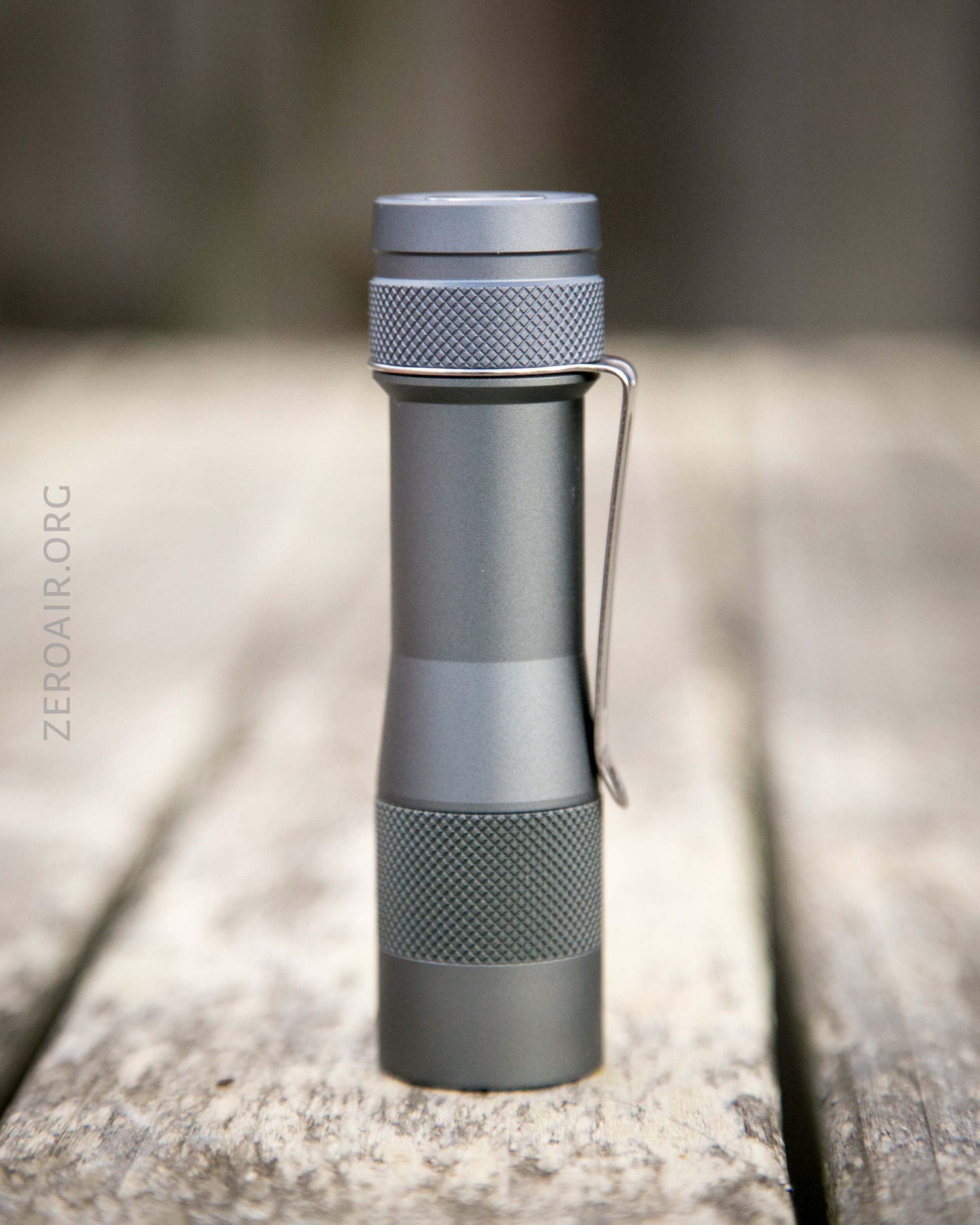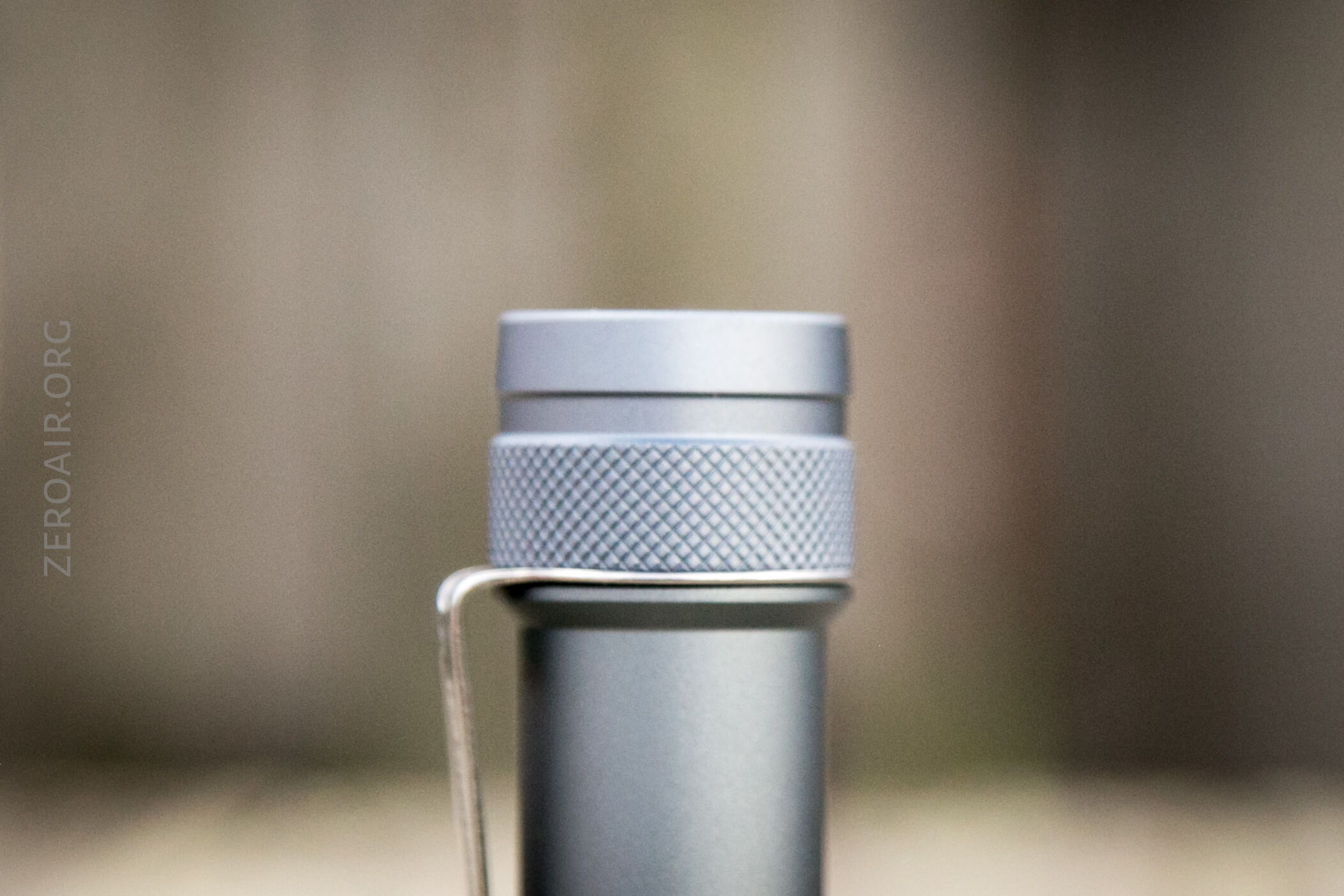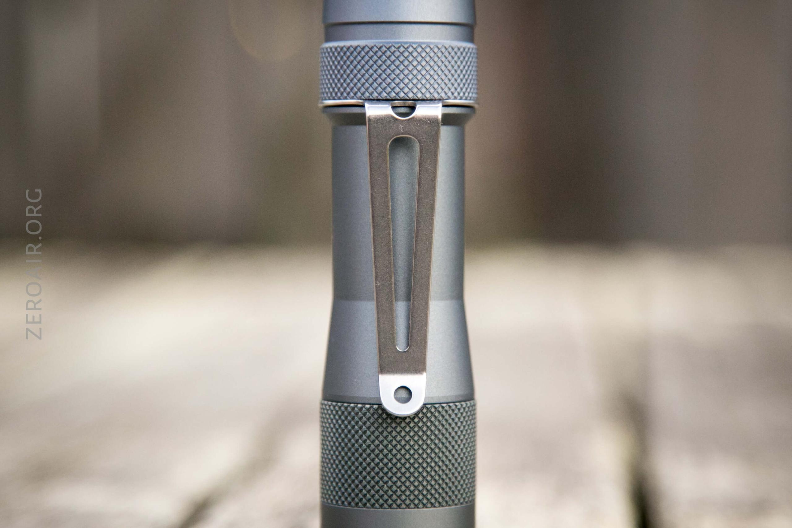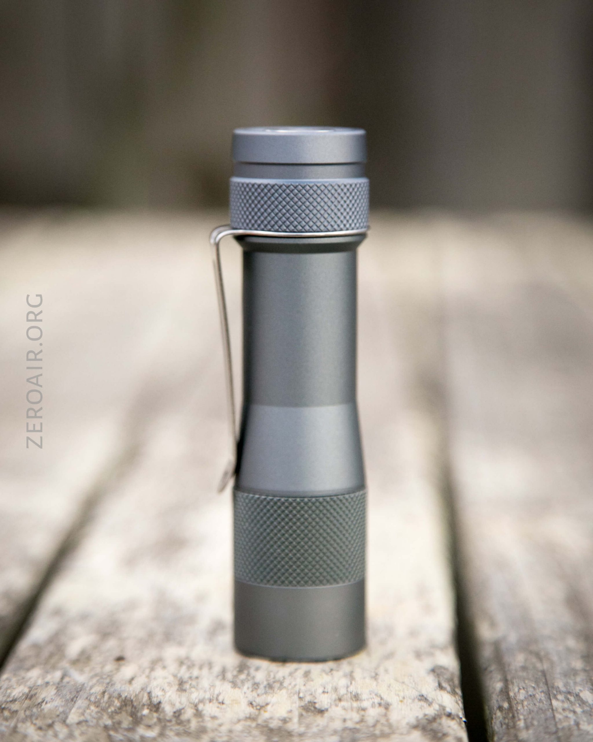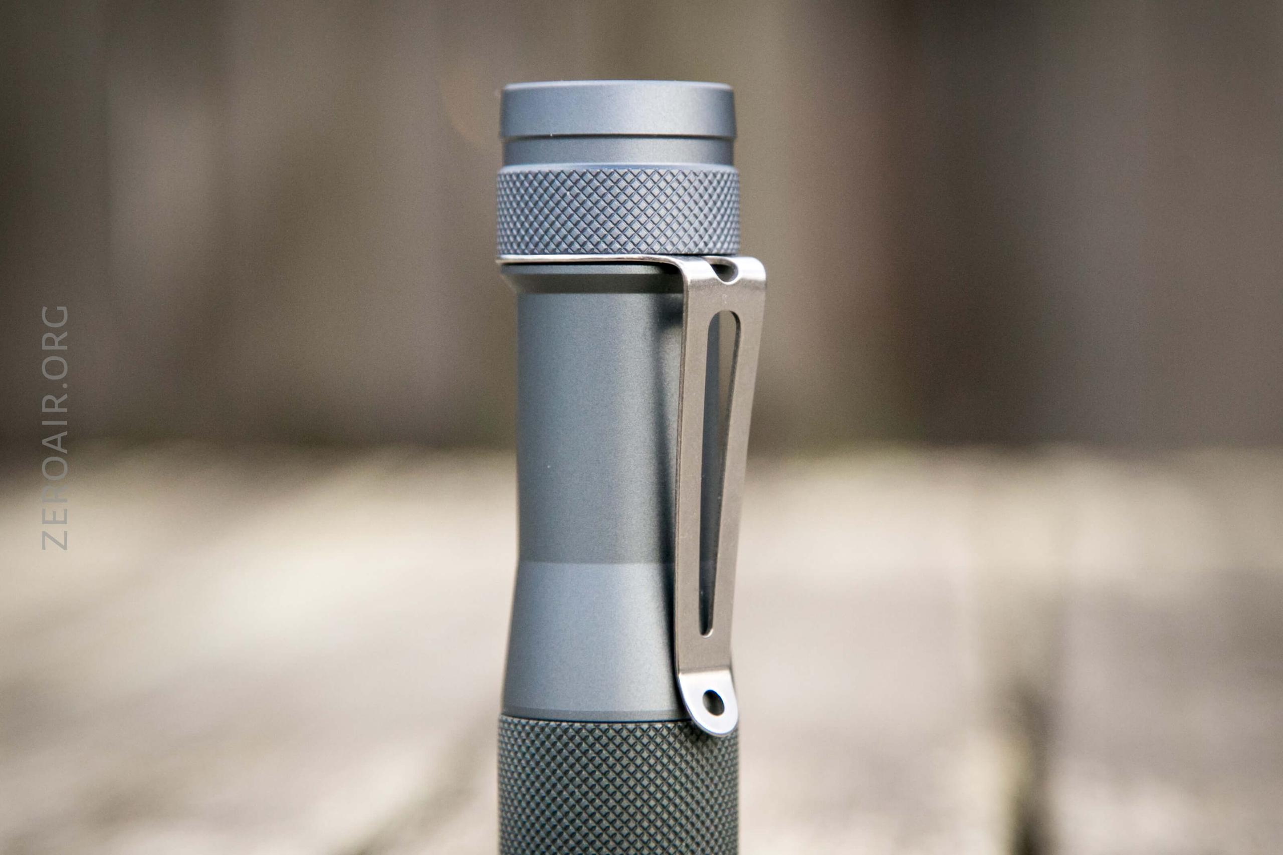 It’s bezel-down and non-reversible. So no hatlight use here. In fact, the collar won’t even fit over the bigger threads on the head end, and you’ll probably break the very thin o-ring that lives atop the clip when reinstalling it. I did anyway. And this is not one of the o-rings for which there are spares.