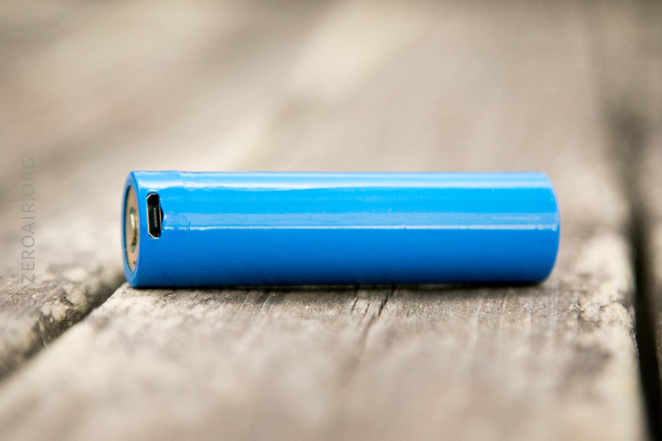Here’s the cell – it’s a 18650 cell with an added charging circuit (micro-USB) and both positive and negative terminals on the positive end.