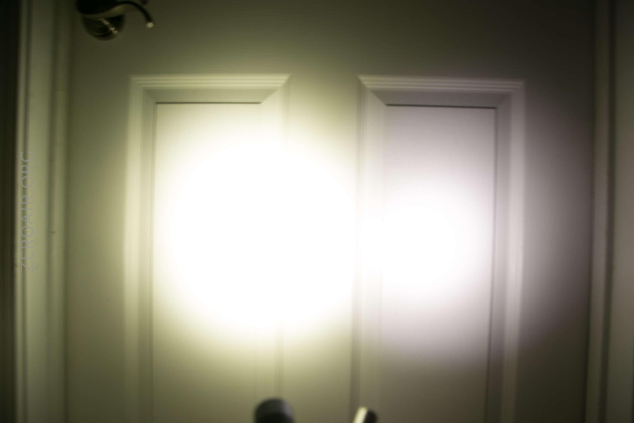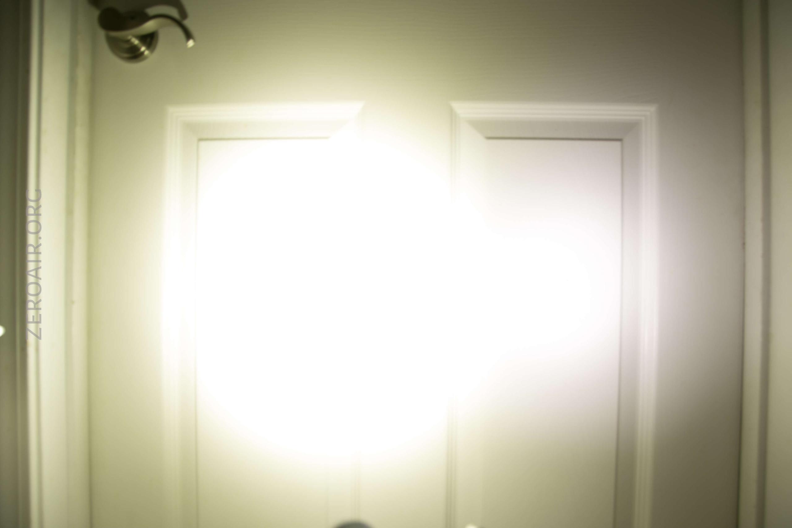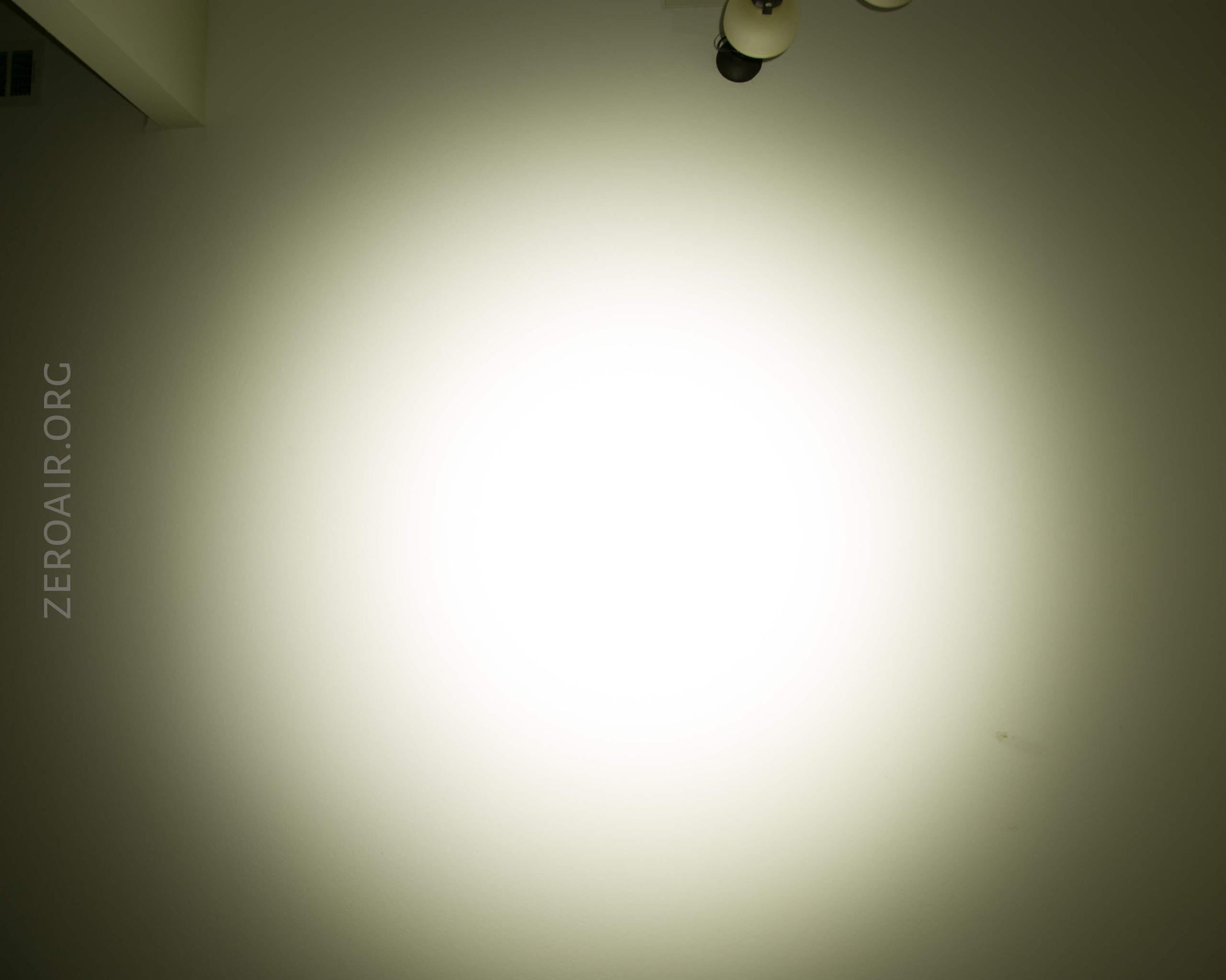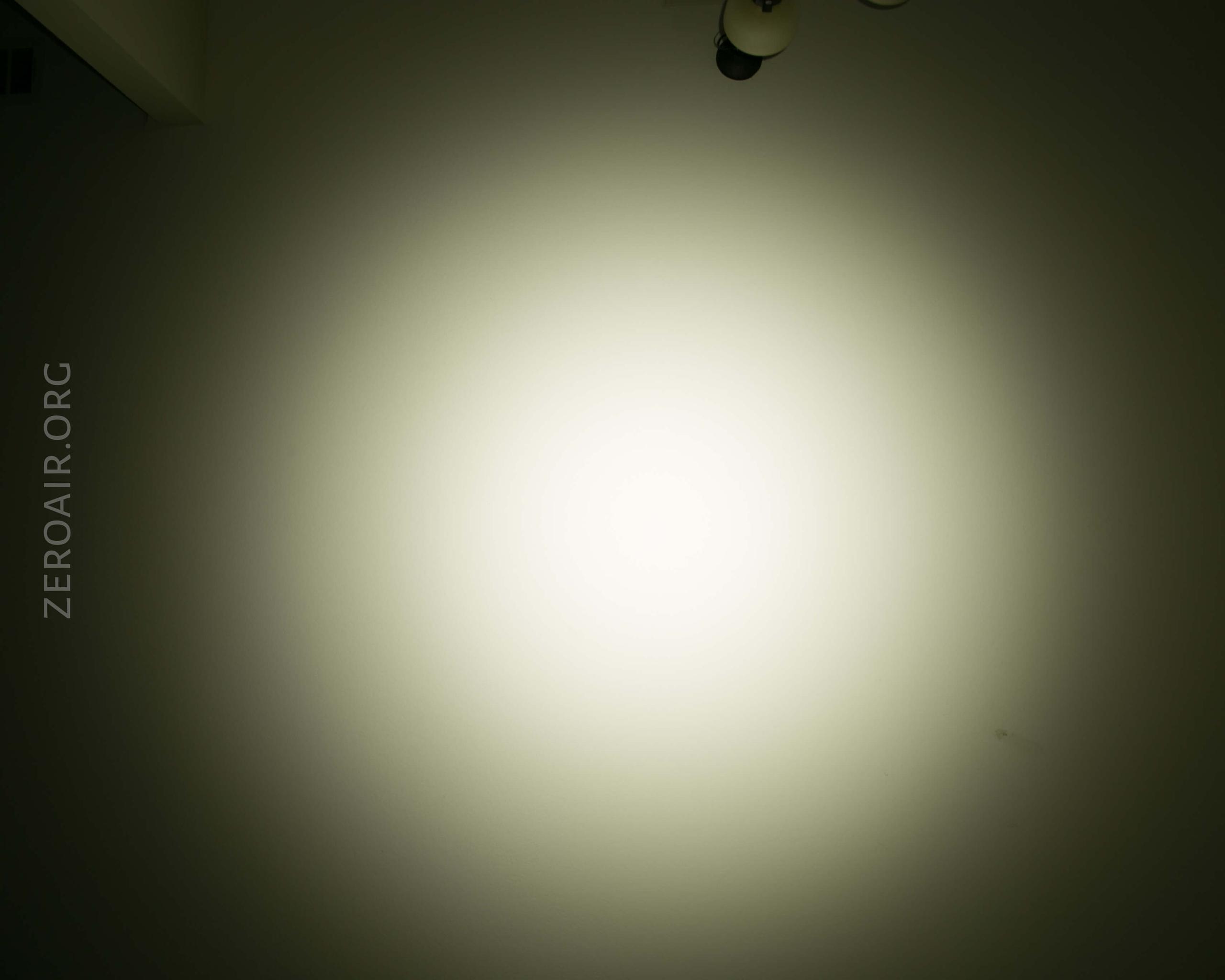 These beamshots always have the following settings: f8, ISO100, 0.3s shutter, and manual 5000K exposure. These photos are taken at floor level, and the beam hits the ceiling around 9 feet away. This is the stepped output – all 8 levels.