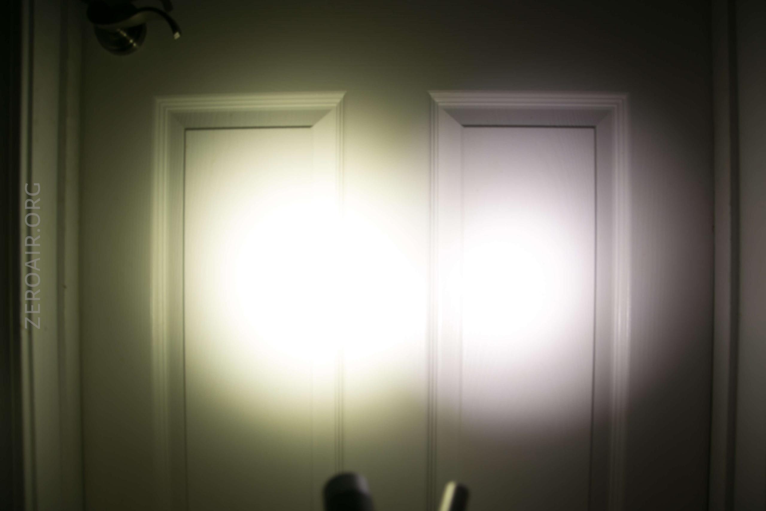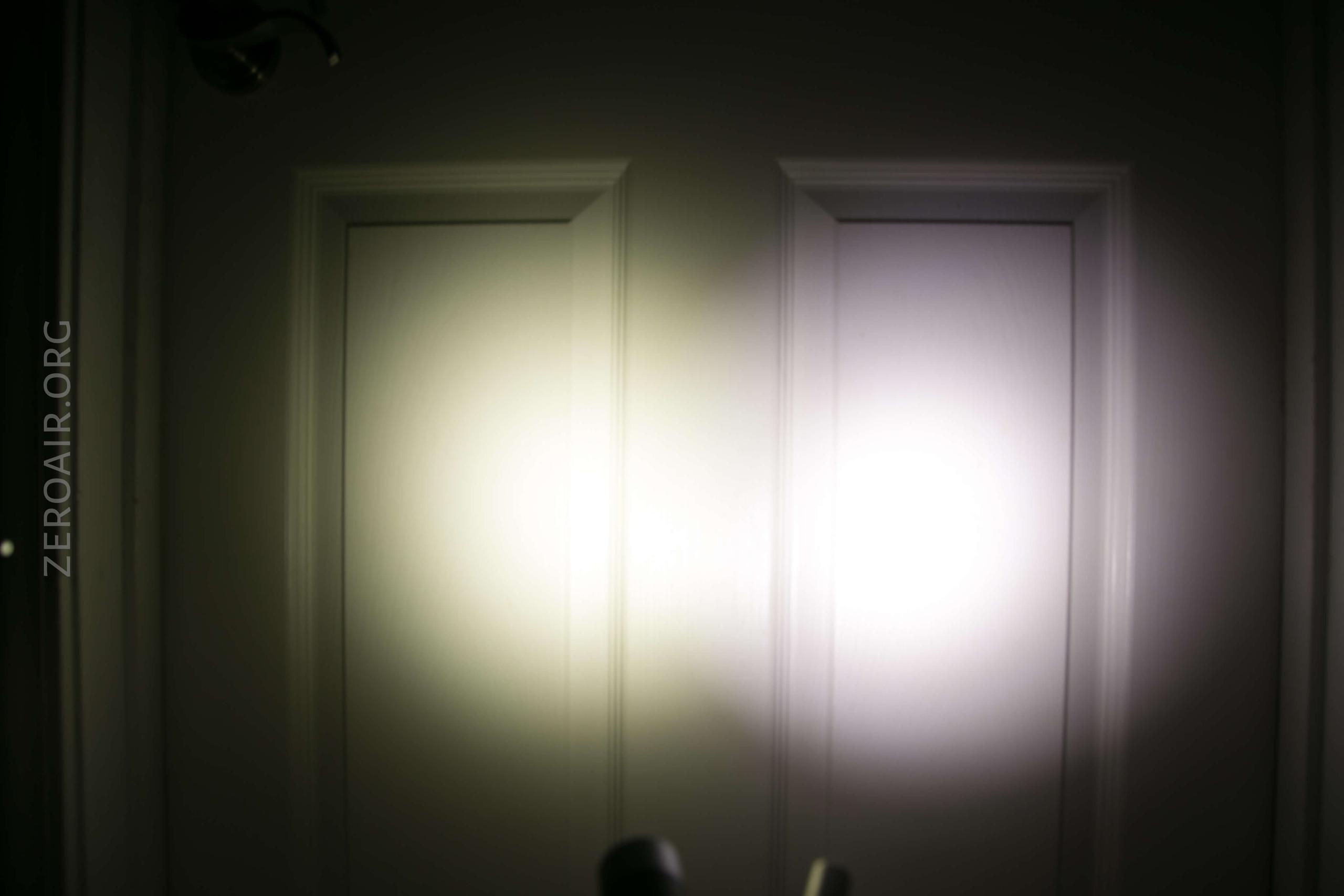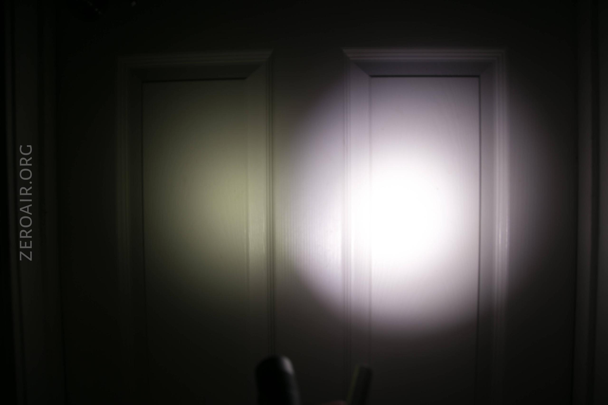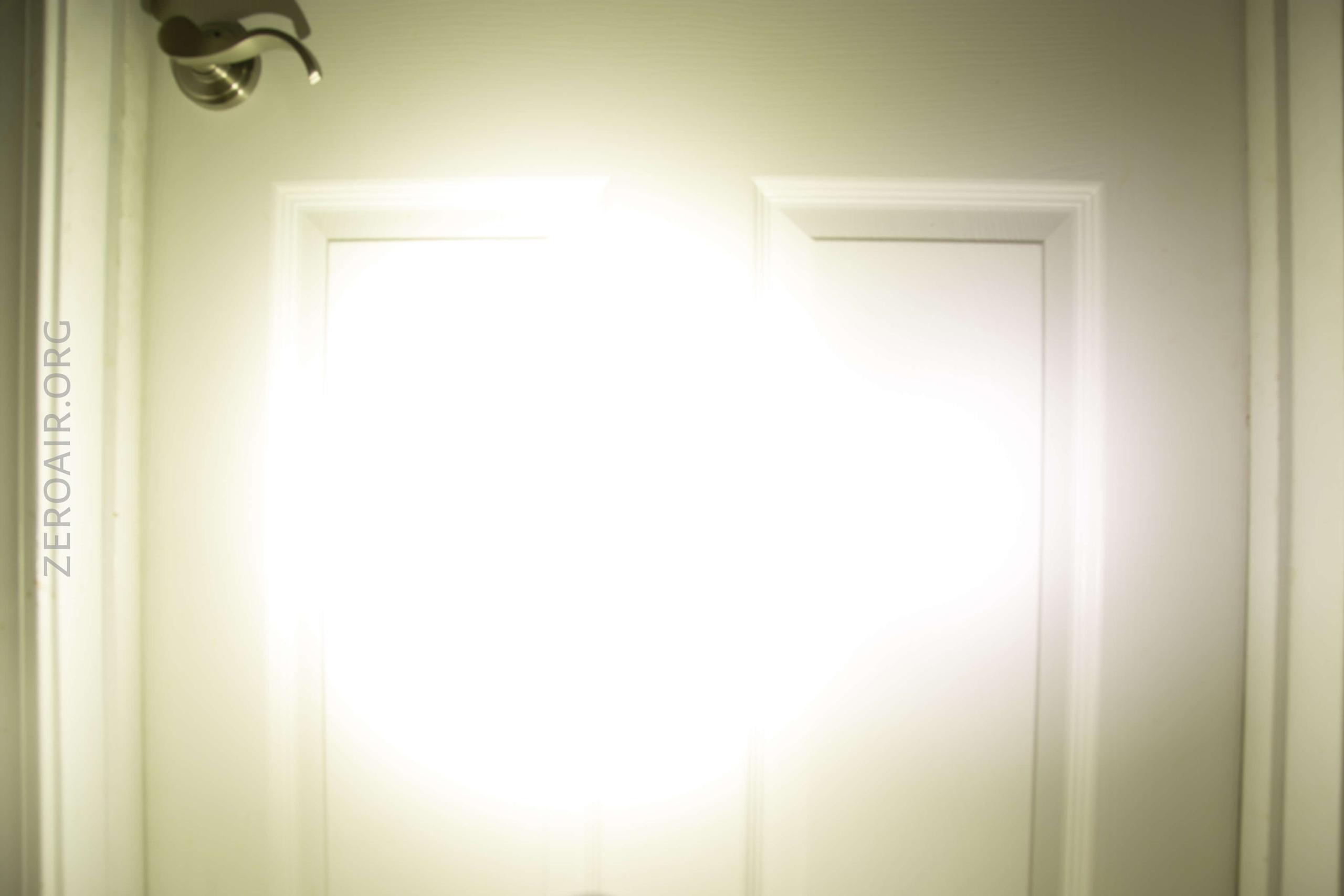These beamshots always have the following settings: f8, ISO100, 0.3s shutter, and manual 5000K exposure. These photos are taken at floor level, and the beam hits the ceiling around 9 feet away. This is the stepped output – all 8 levels.