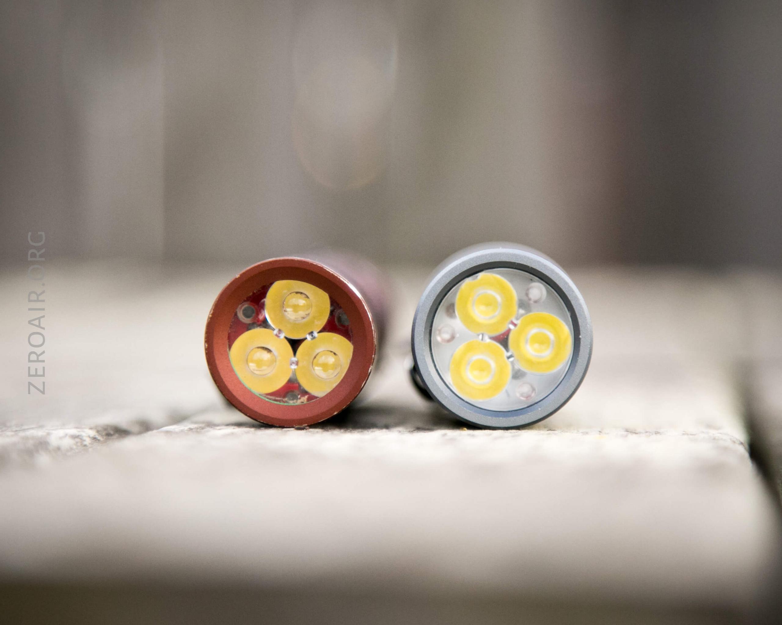 My review copy has Cree XP-L HI emitters in triple format. I wasn’t told what temperature specifically, but it’s fairly good if coolish – maybe in the 5000K range.