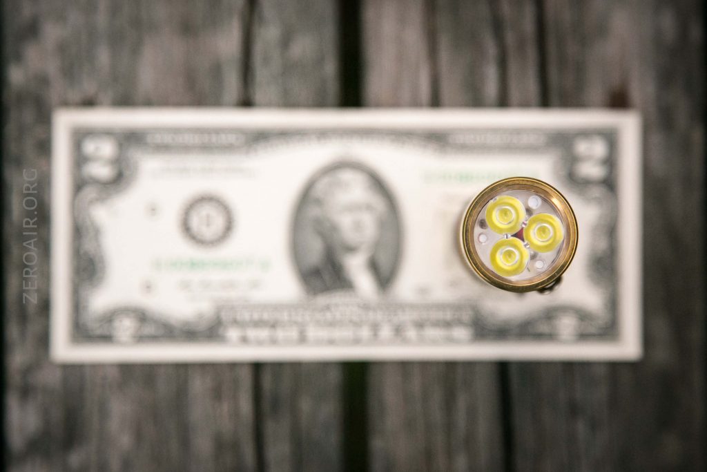 The patina is actually one thing worth mentioning here. The copper I had came absolutely “shiny-penny” clean. This brass already had some patina in the knurling as seen below (this is immediately after opening). I don’t really mind this, but just note the light wasn’t shipped “shiny-penny.”