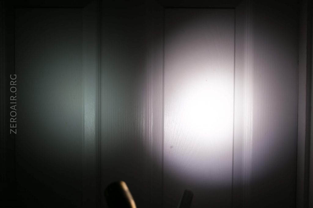 Here’s the test light with the venerable Convoy S2+. Mine’s a custom “baked” edition Nichia 219b triple. A very nice 18650 light.