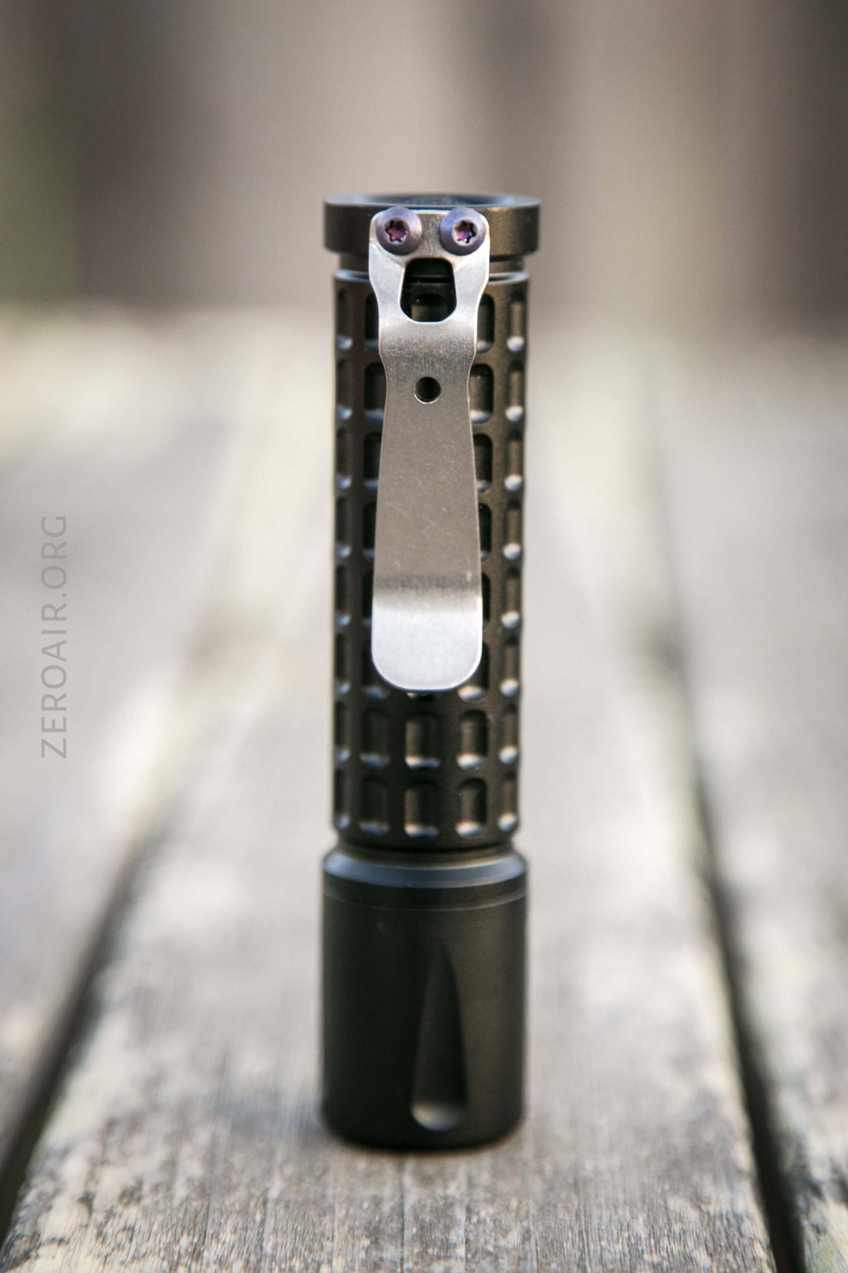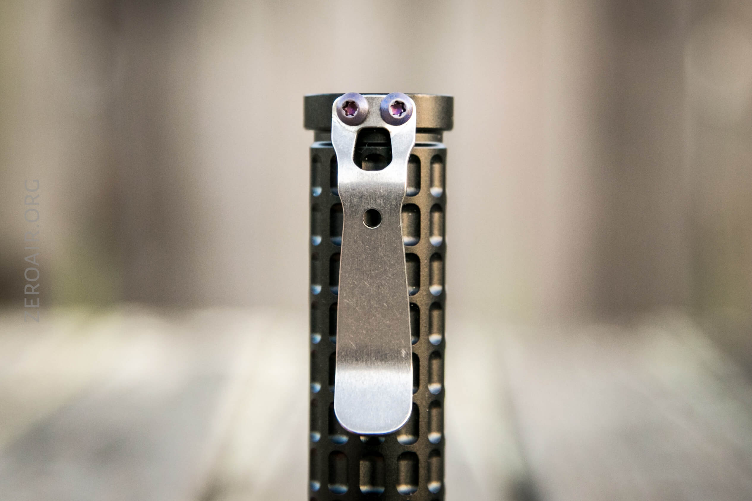 The only means for carrying the Dawn is the already-attached pocket clip. This is a thick clip, held in place by two anodized Hex screws. The clip also feels like stainless. It’s a titanium clip and is also the standard clip hole spacing. So if you wish to use a SteelFlame clip, you may. It’s a very nice clip – I like the shape and large mouth.
