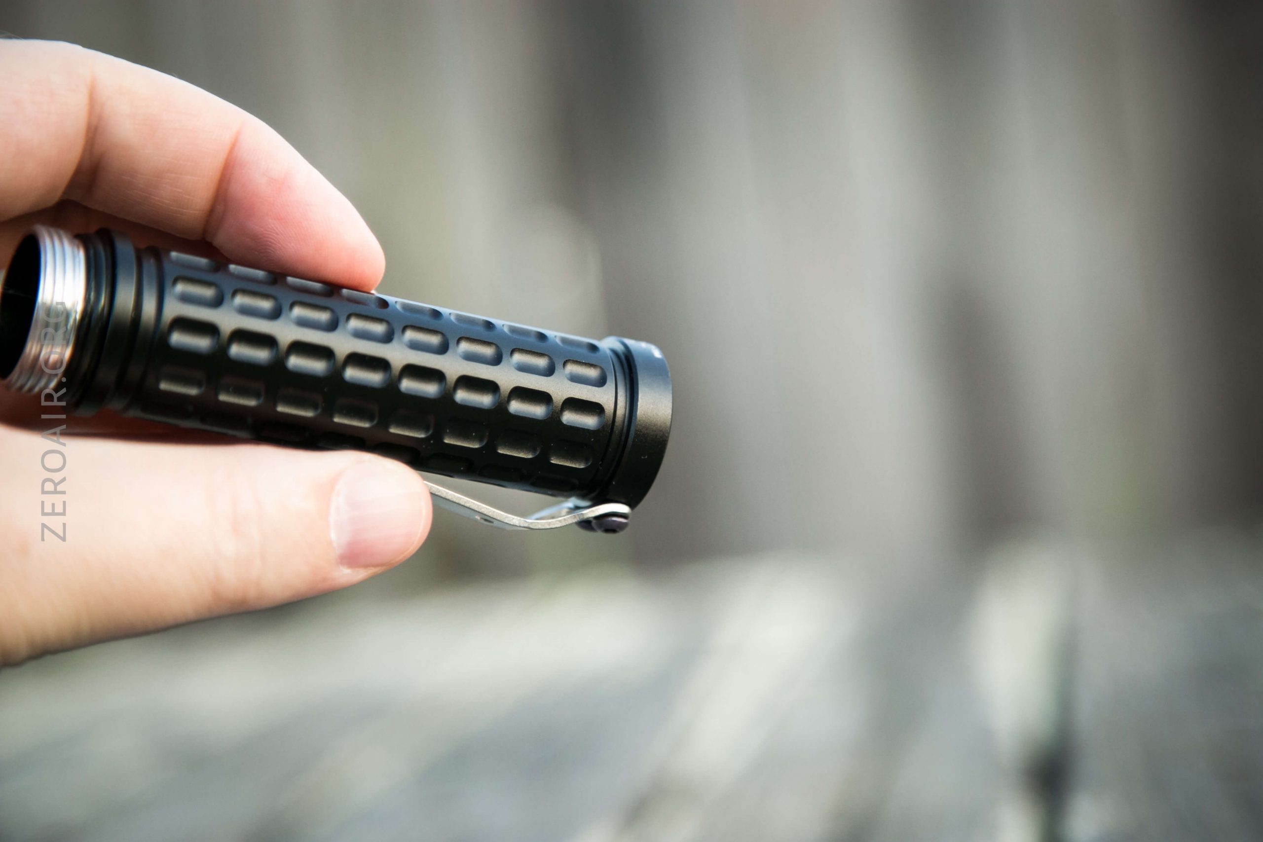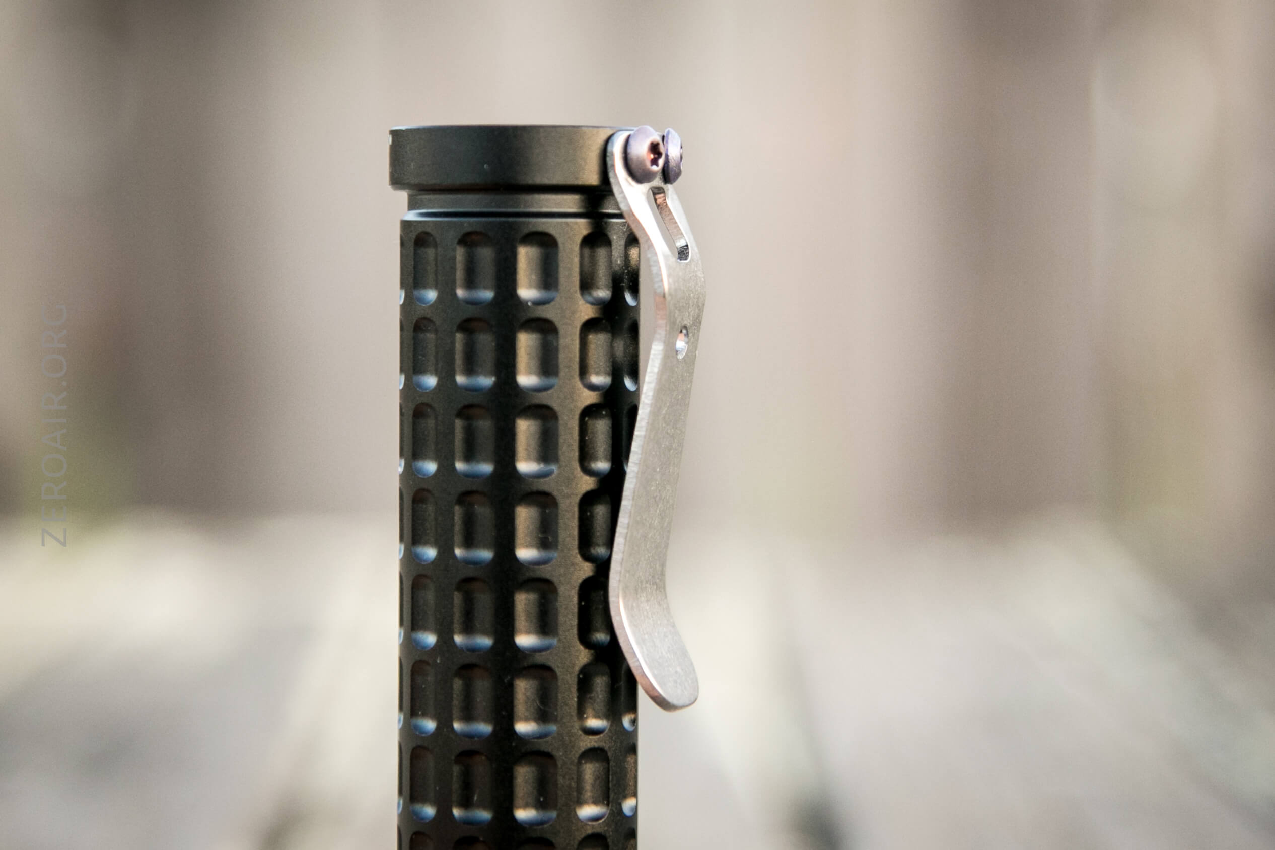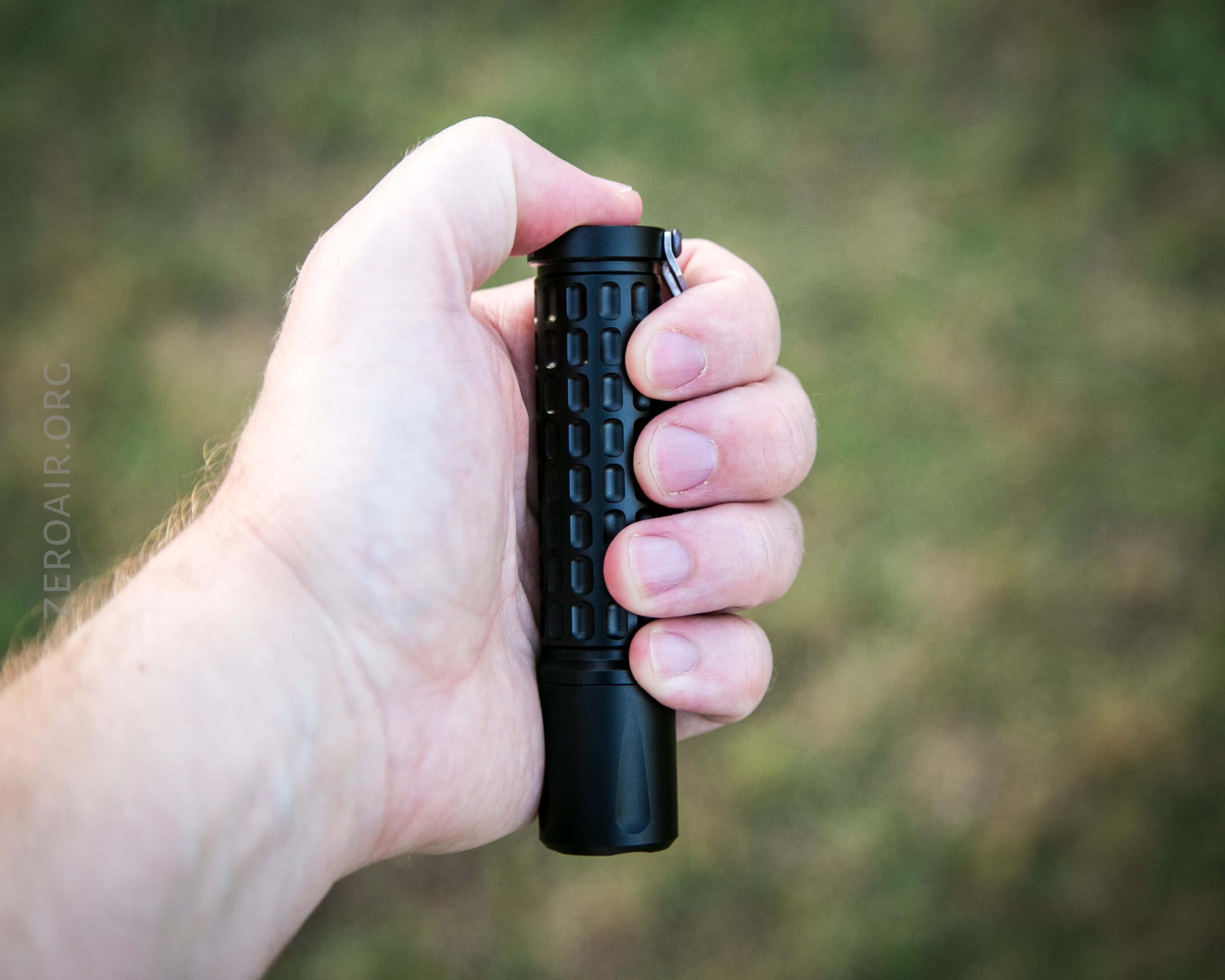 There’s no knurling, just these large dimples in the body. The edges of those dimples aren’t softened, so they actually provide a decent grip.