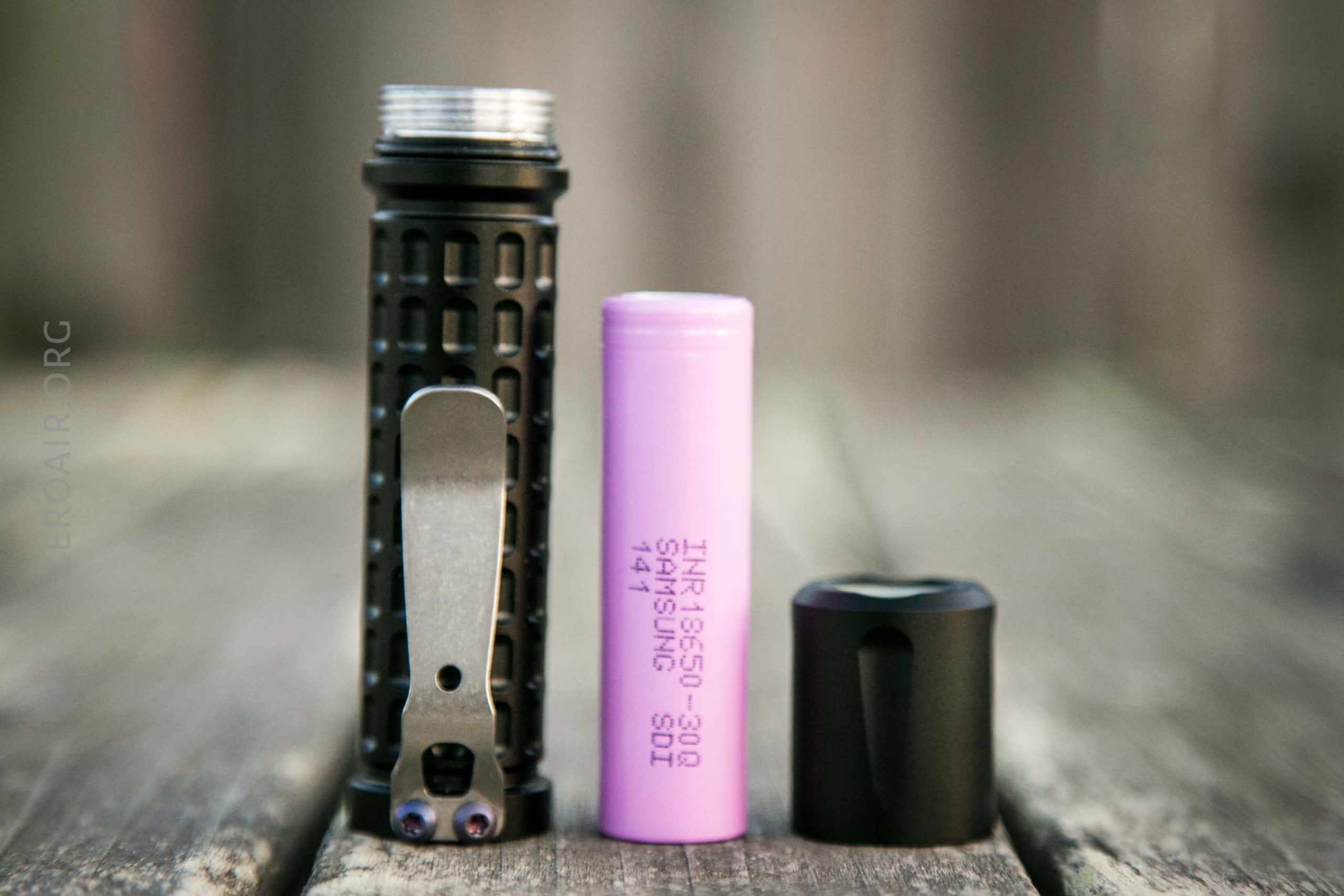 The Maratac Dawn runs on a single 18650 cell. An appropriate cell is included – the Samsung 30Q. That’s a flat top unprotected cell, and that’s likely the best thing for this light. But there’s enough give that you could likely run any type 18650 cell you wanted to in this light.