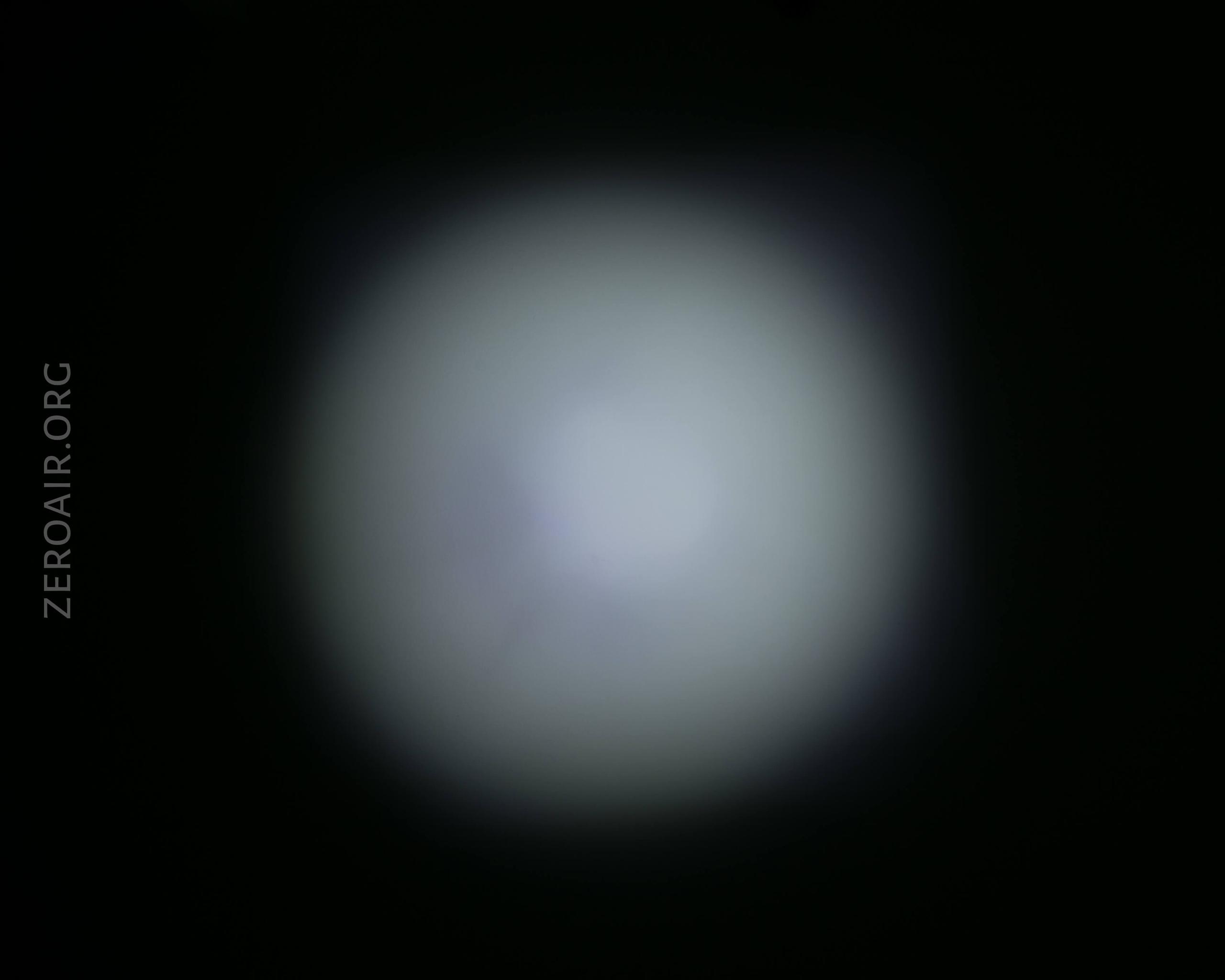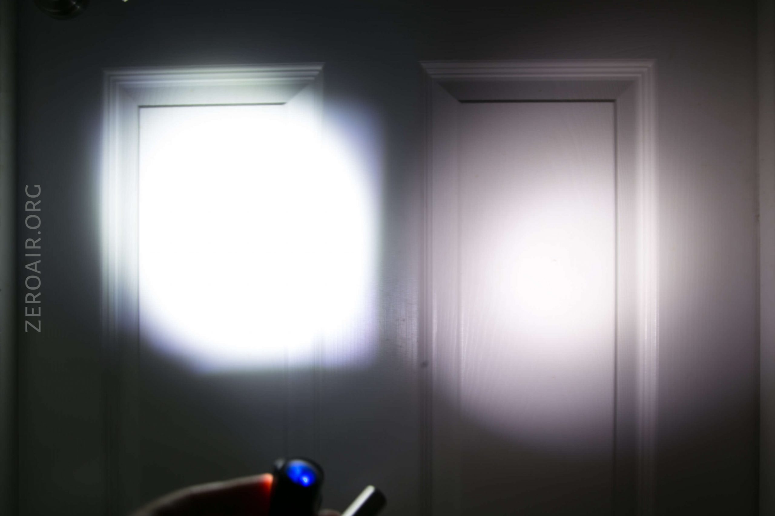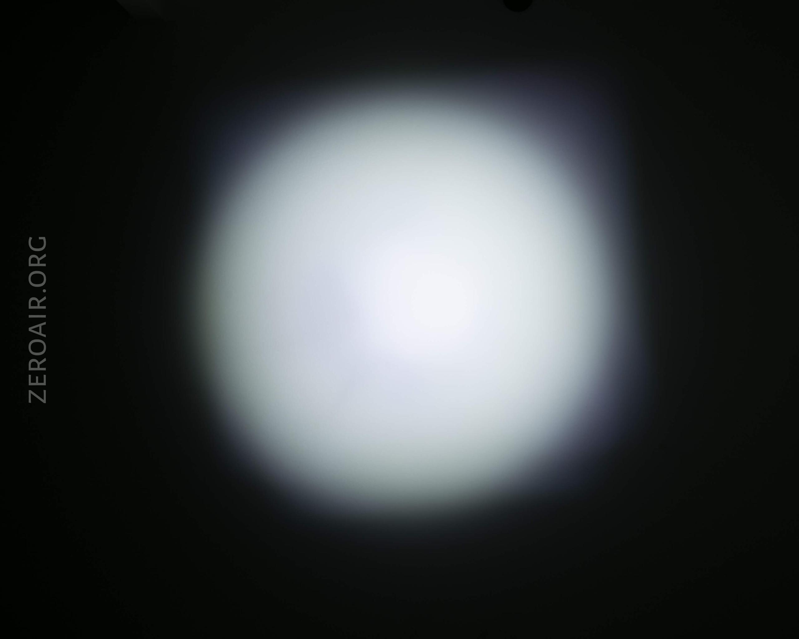 I think it’s possible in my copy that the TIR isn’t seated right – see the images below. The beam profile has a weir corona, is very square-shaped, and also has some square legs off to the top right. In the pics, it’s not all that noticeable, but it’s pretty annoying in person. I have a feeling putting a new emitter in here and making sure the optic is seated right will fix this up.