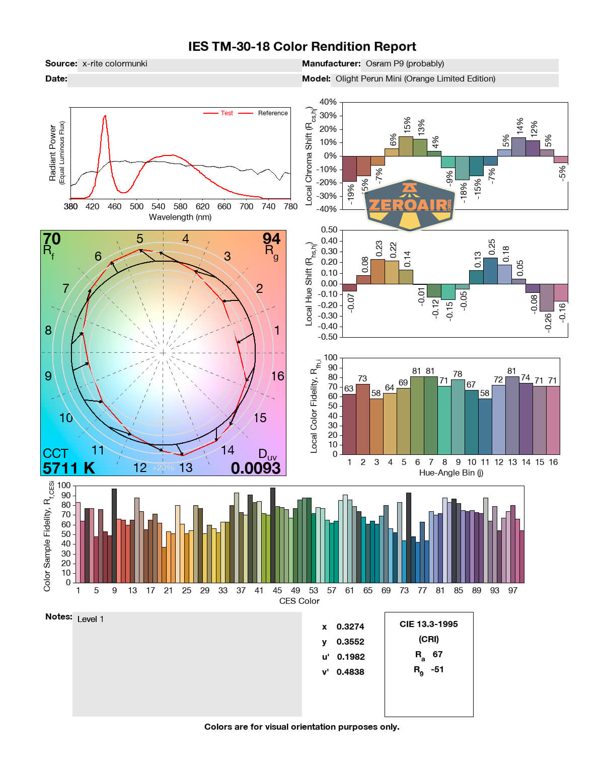 ^ Measurement disclaimer: Testing flashlights is my hobby. I use hobbyist-level equipment for testing, including some I made myself. Try not to get buried in the details of manufacturer specifications versus measurements recorded here; A certain amount of difference (say, 10 or 15%) is perfectly reasonable.