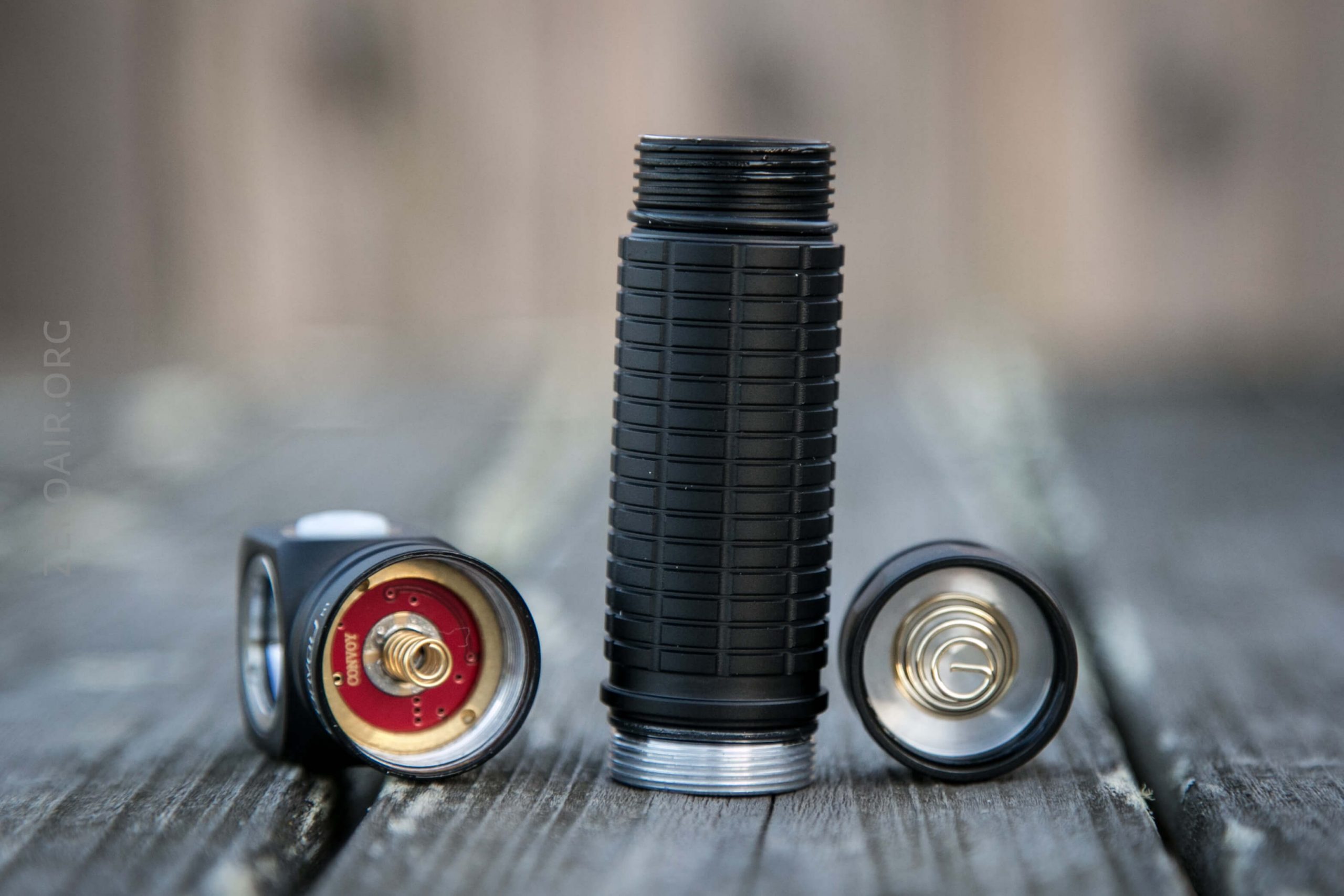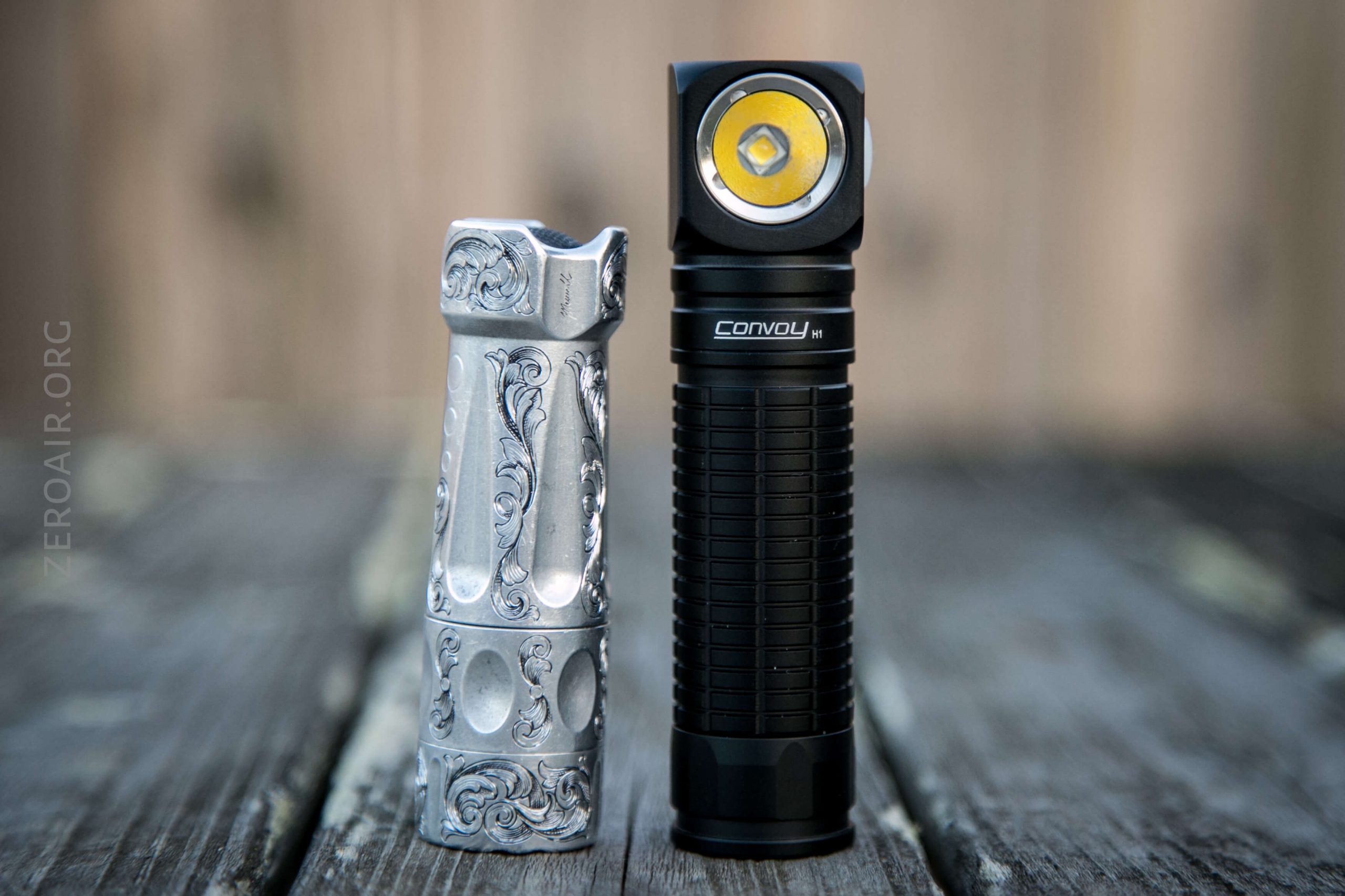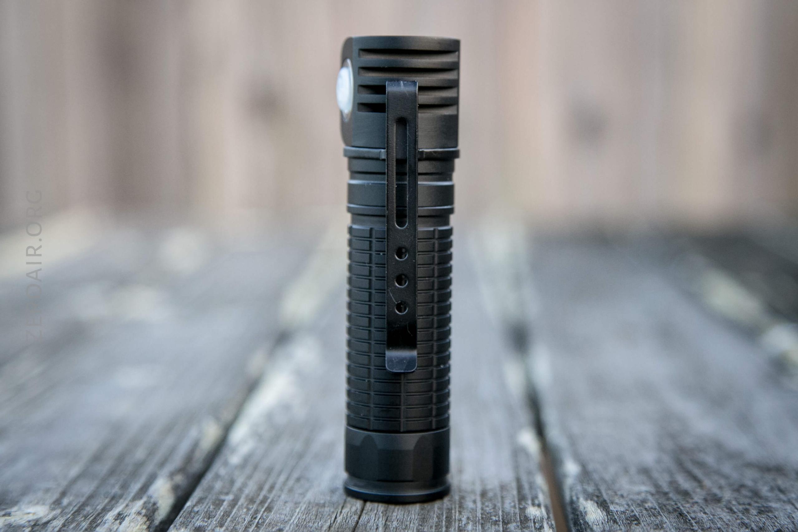 The H1 is pleasantly shorter than the venerable Convoy S2+, but all the same, it’s unclear to me why these parts aren’t interchangeable. The S2+ is such a watershed light; it’d have been nice to be able to screw an angle head right on the body we all already have. Then it could work with the mechanical tail switch (as hard on/off) and/or have a tailcap to replace the mechanical switch for e-switch only operation.
