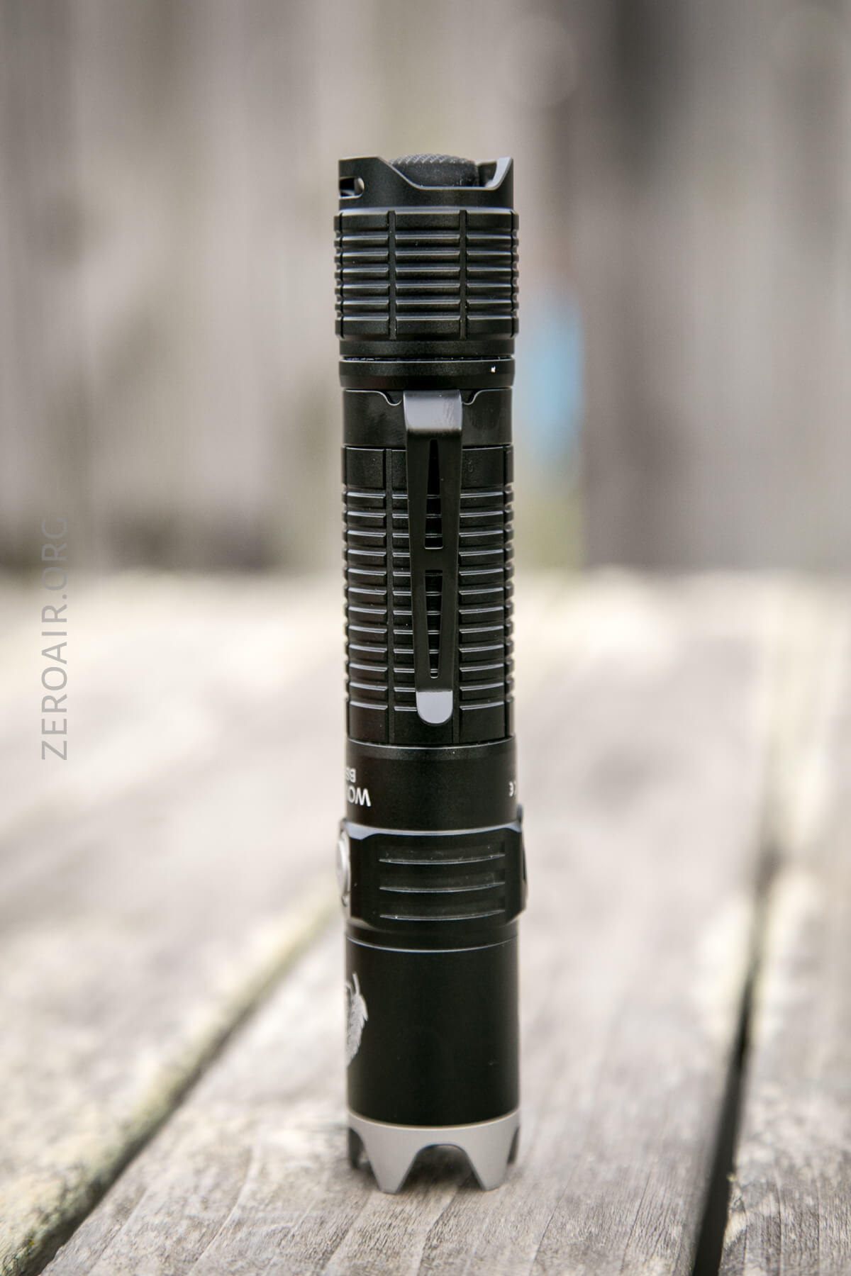 Also included is a friction fit pocket clip, which goes only one direction, and only on the tail end of the light. So bezel down carry only.