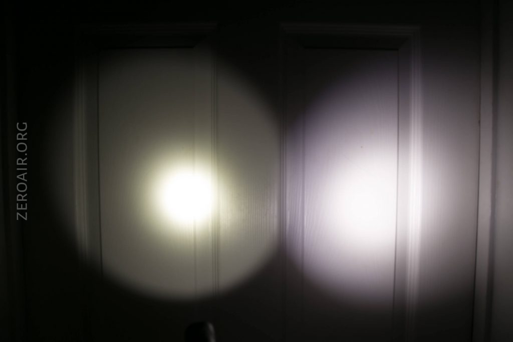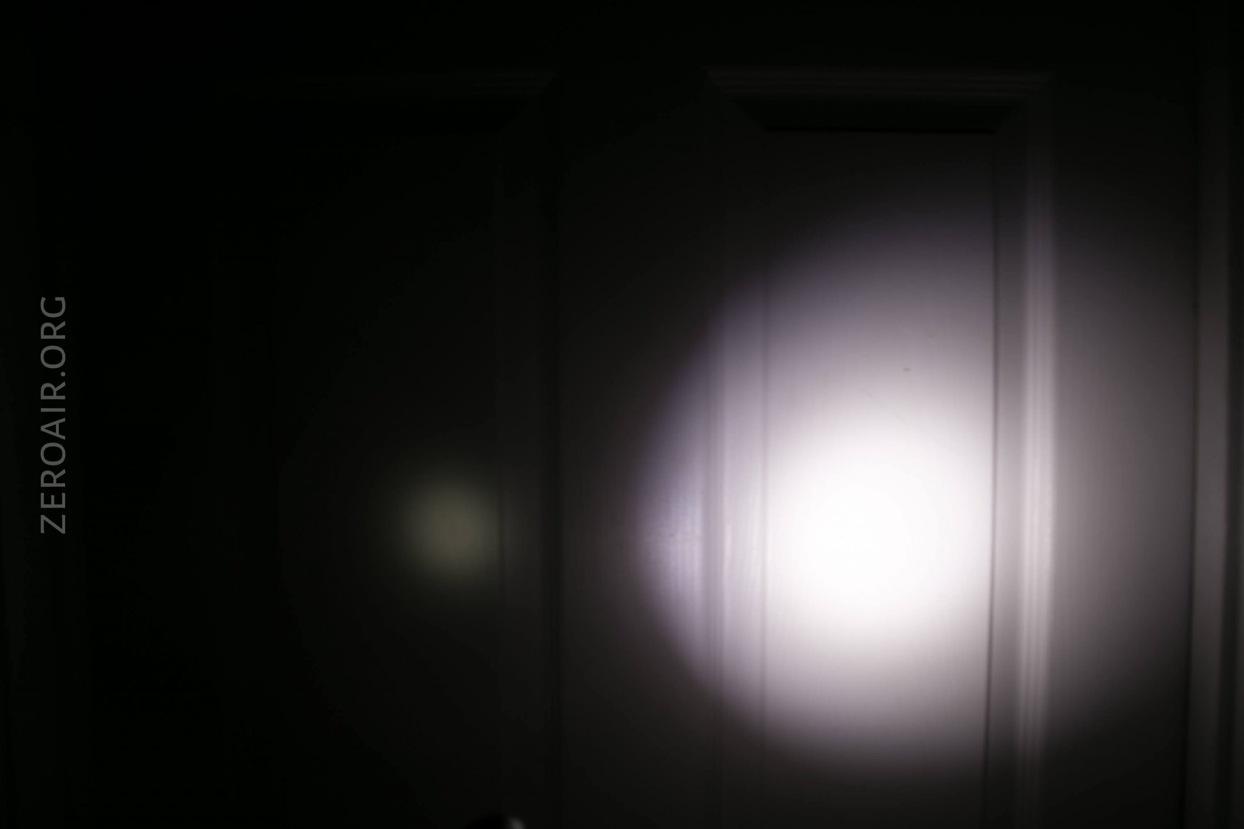 Here’s the test light with the venerable Convoy S2+. Mine’s a custom “baked” edition Nichia 219b triple. A very nice 18650 light.