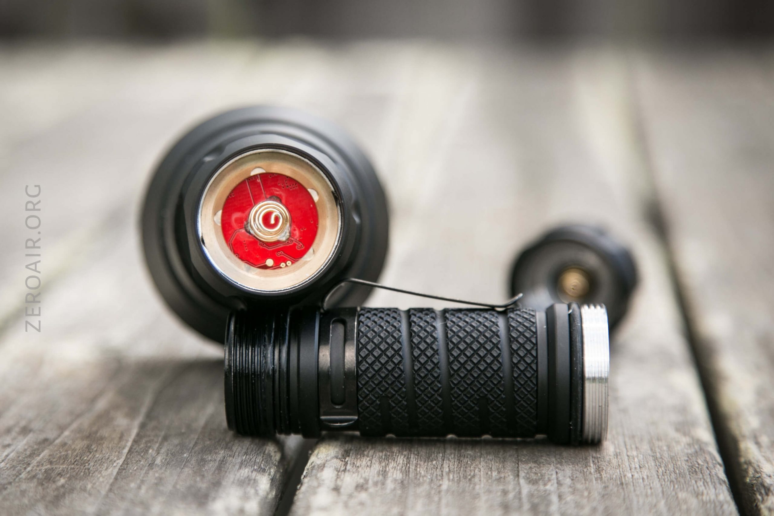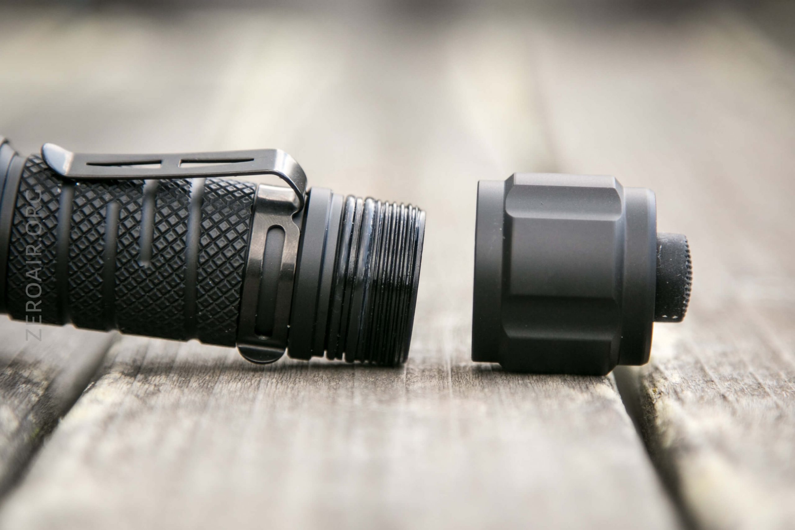 The cell tube also separates, but is not reversible. Those threads (on the head) are not anodized but are shorter. I didn’t find them as pleasant to unscrew, so I’d rely on the tail cap.