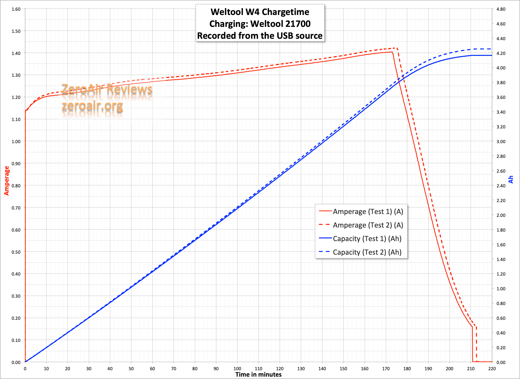 Charging looks good but is a bit slow – I’d expect 2A or so for a big 21700 cell. Still, it looks good though. Consistent = good.
