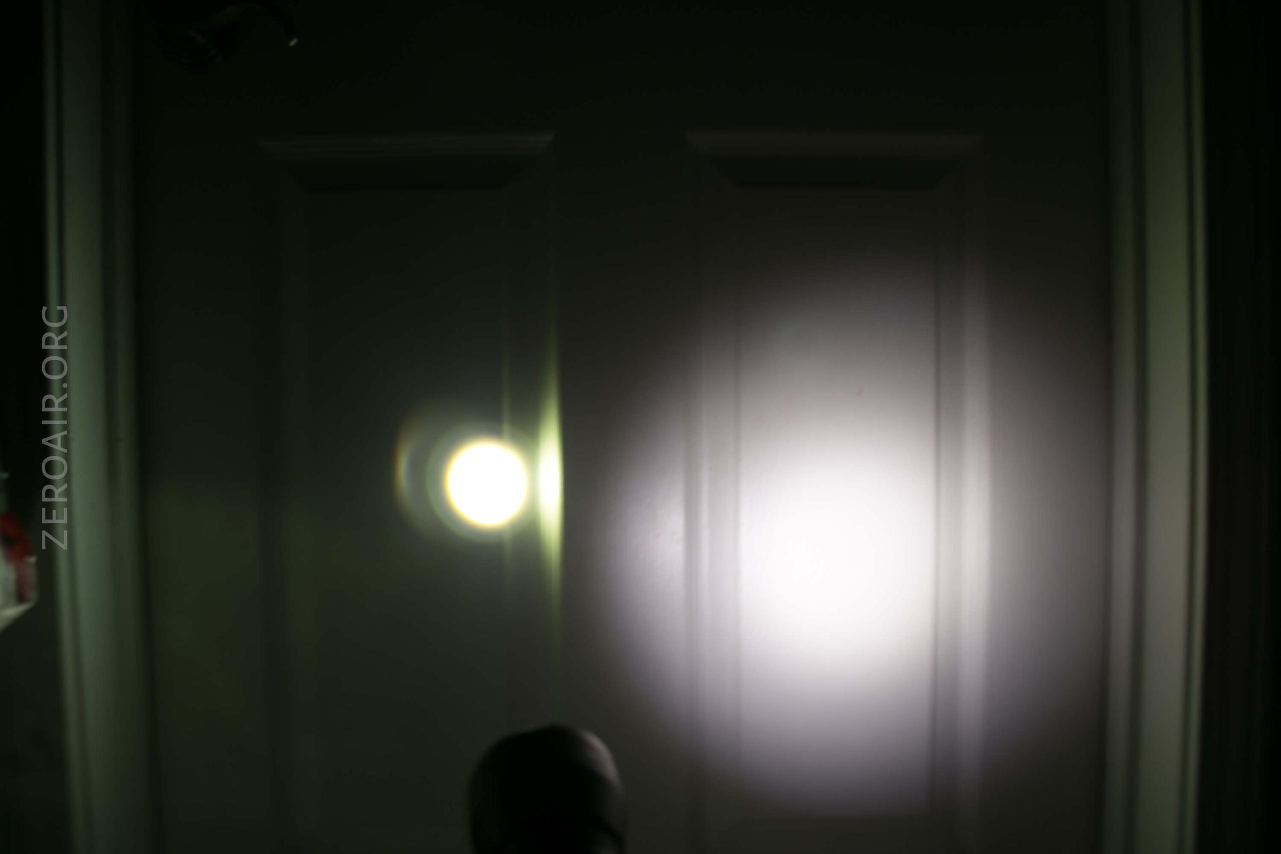 These beamshots always have the following settings: f8, ISO100, 0.3s shutter, and manual 5000K exposure. These photos are taken at floor level, and the beam hits the ceiling around 9 feet away. Note that these are taken from the same distance as always, so the beam really is that much of a pencil-thin beam!!