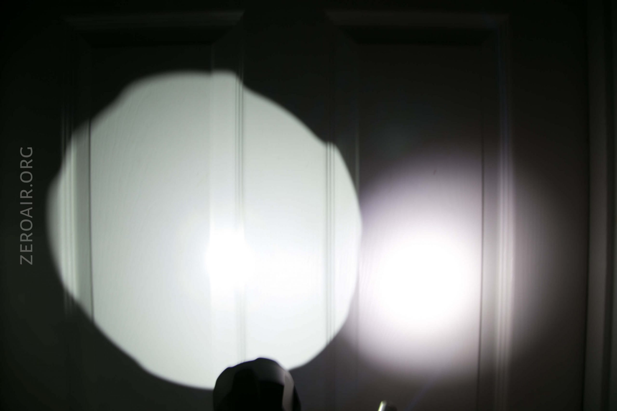 The emitter is surrounded by a very smooth, big, and deep reflector. The beam is very much throw, but on the higher mode, there is noticeable spill. It’s specific spill though – almost uniformly lit, aside from the hotspot.