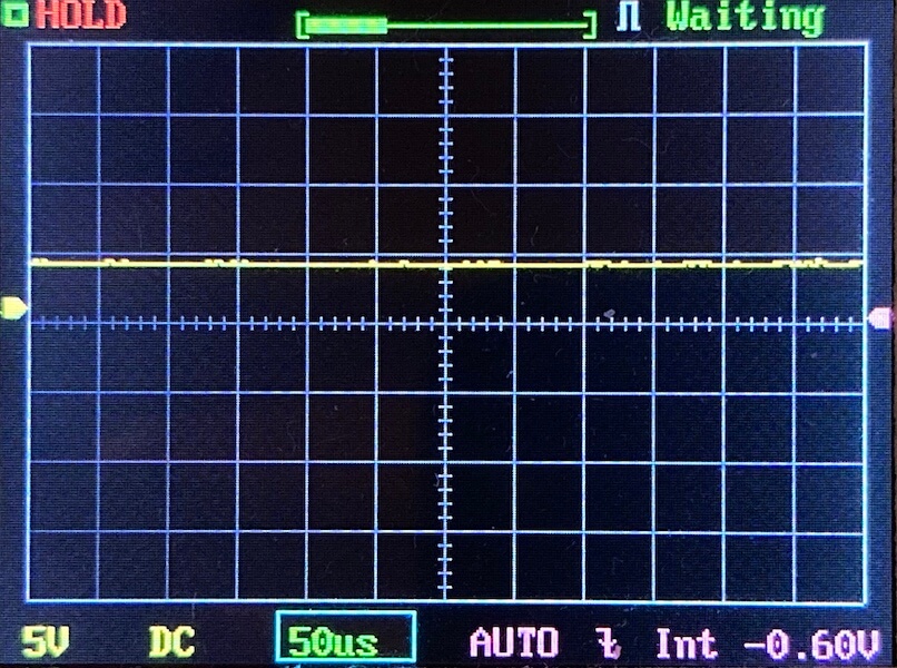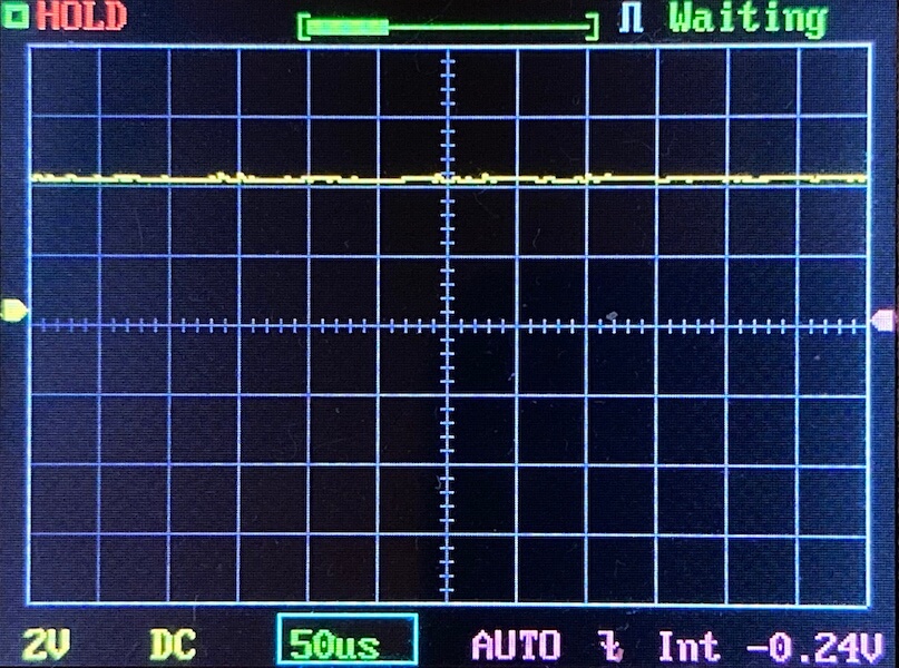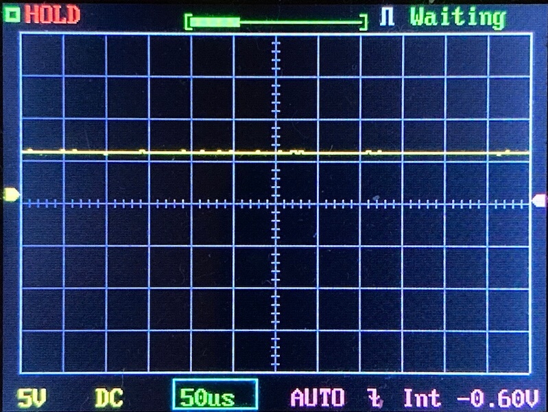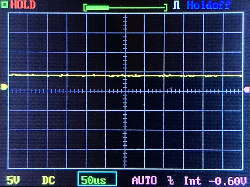 Here you can see a “baseline” – a chart with almost no light hitting the sensor. Then there’s the Ultrafire WF-602C flashlight, which has some of the worst PWM I’ve seen. It’s so bad that I used a post about it to explain PWM! Here are multiple timescales (10ms, 5ms, 2ms, 1ms, 0.5ms, 0.2ms) to make comparing this “worst” PWM light to the test light easier. That post also explains why I didn’t test the WF-602C at the usual 50us scale.