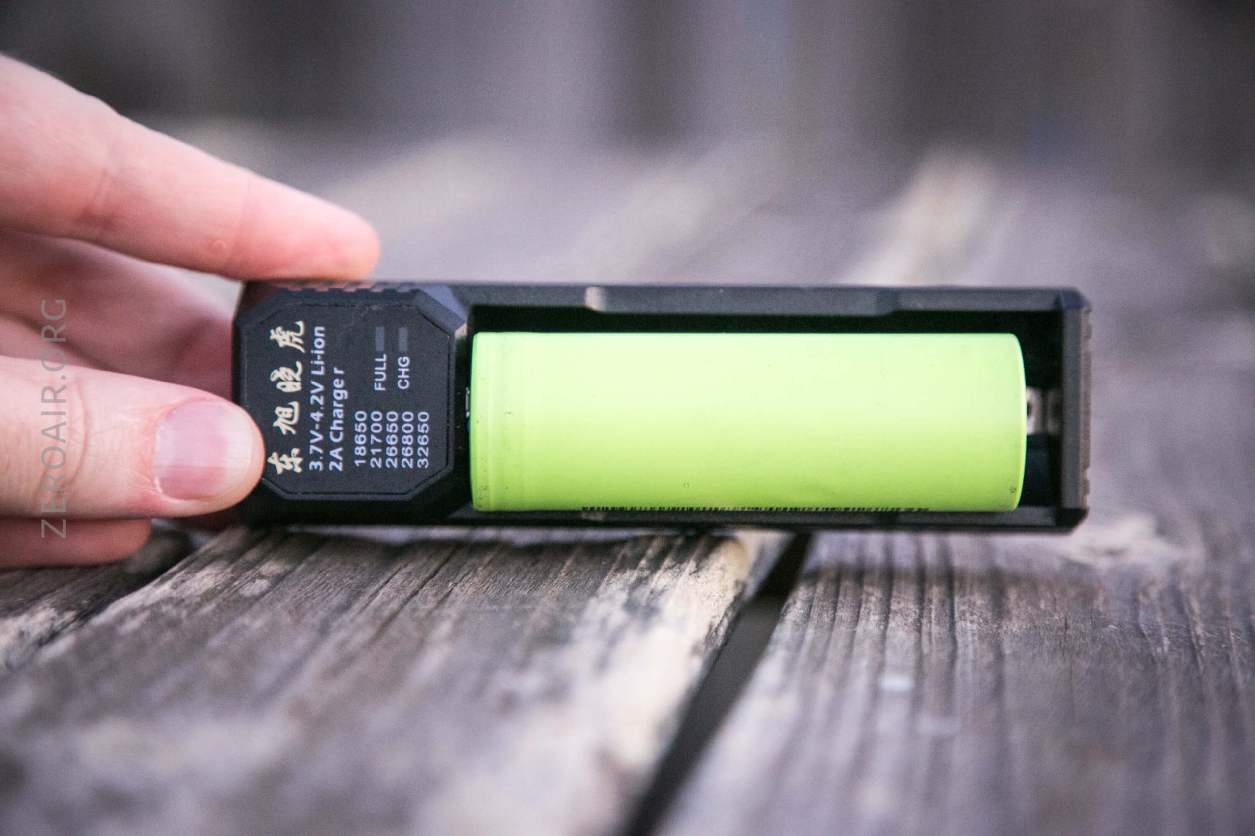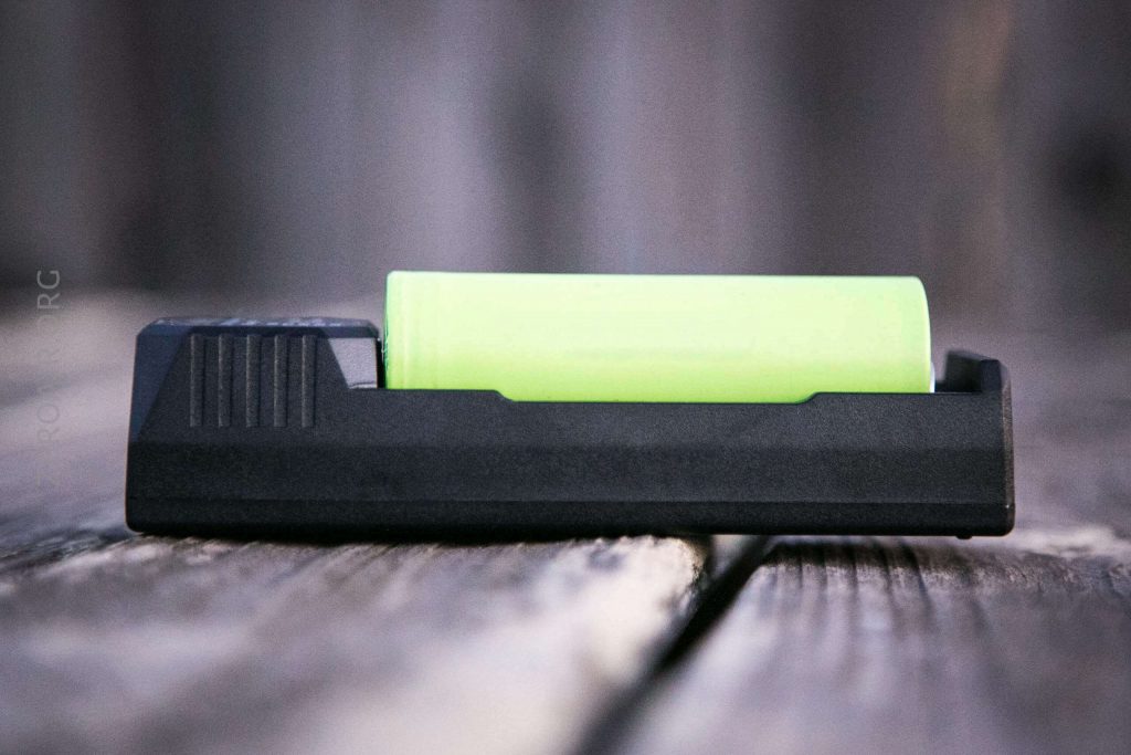 The package also includes a charger, which can be seen below. It’s a very simple one-bay charger, powered by micro-USB. It could be used for other (smaller) cells, but it is primarily interesting because it supports 80mm length cells!
