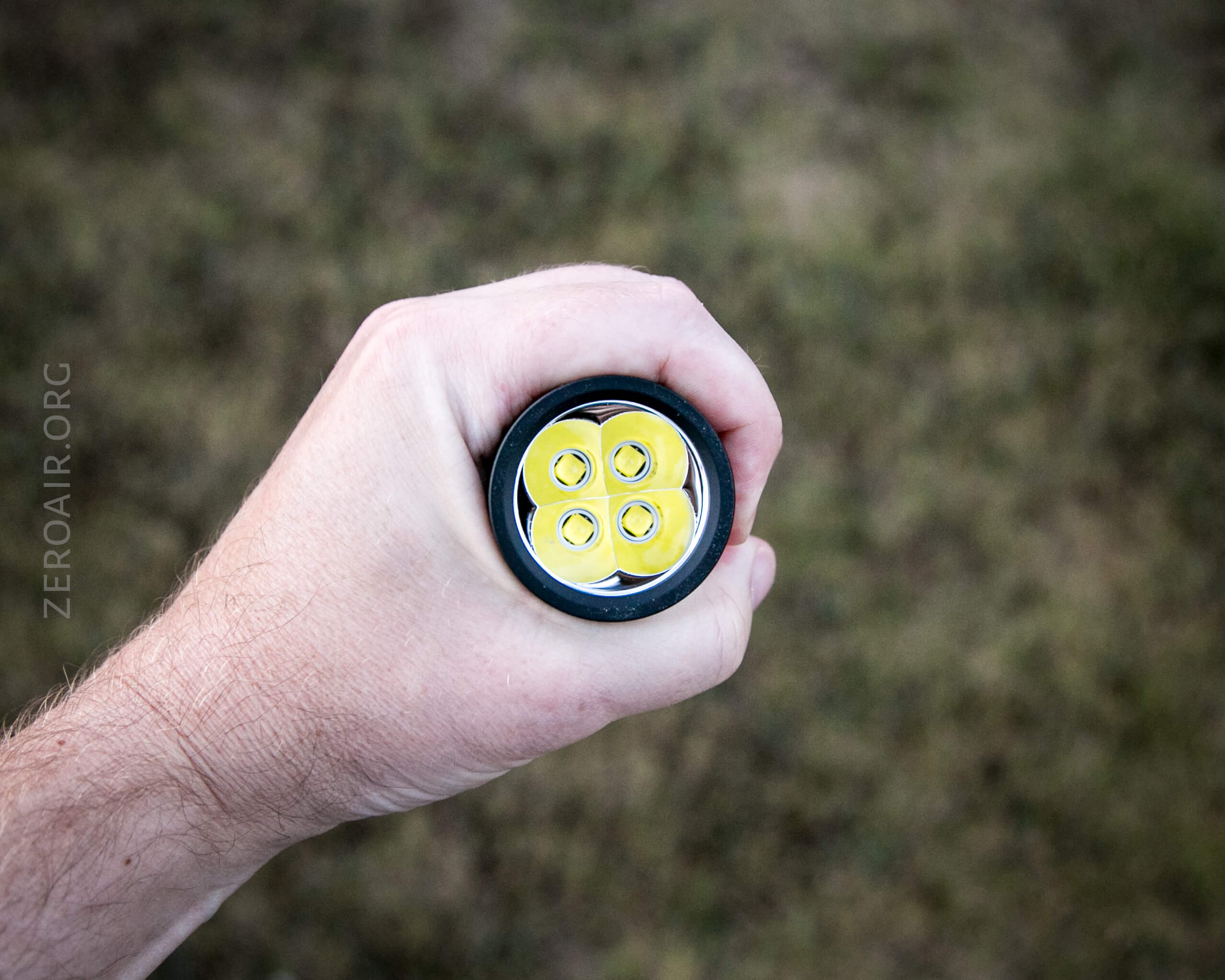 In my review copy are four Cree XHP50.2, in 6500K. That’s quite cool for me but it’s obvious this light was made with an intention of maximum lumens and cool white is a typical choice for that.