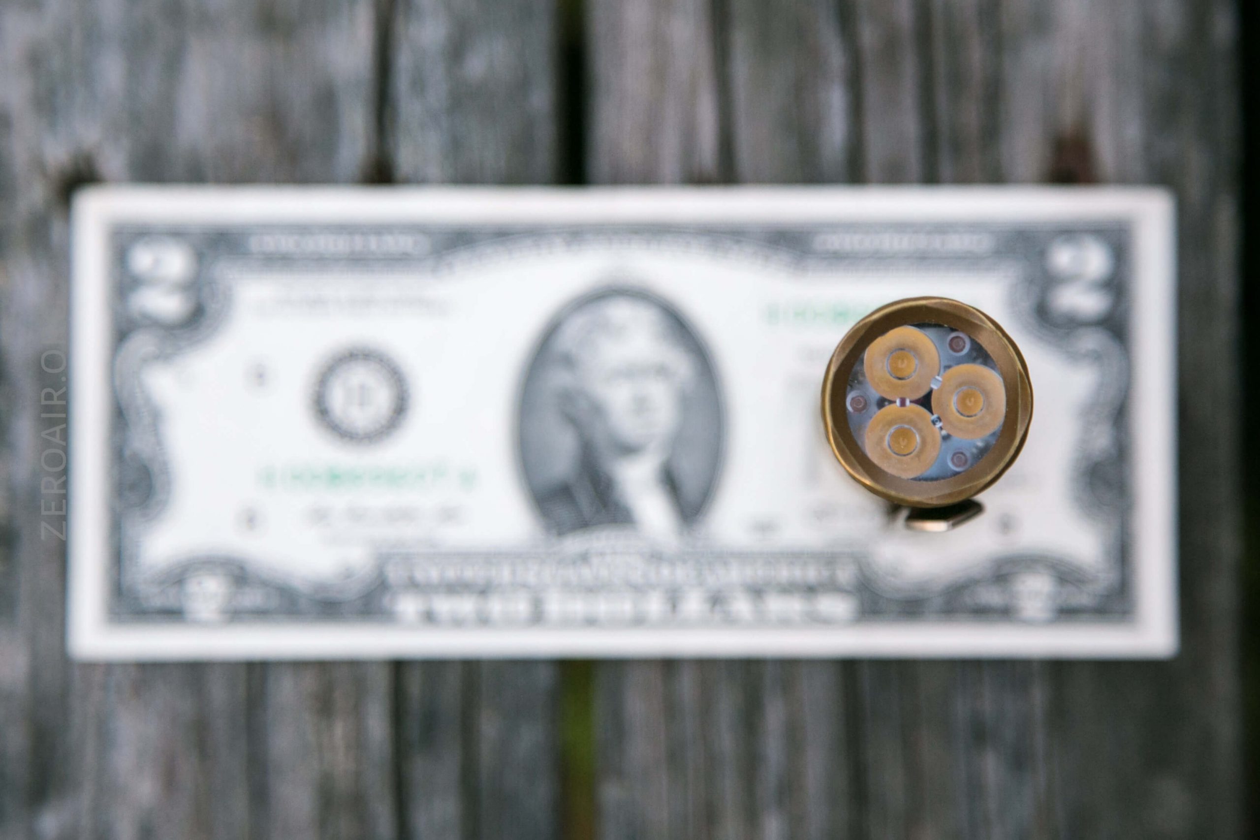 All of this “light engine” screws directly into the pill. (Below is actually a copper Full Twist, not the Brass Total Tesseract from this review. But it’s all the same setup). When putting the parts together you want to have the optic (seen at left below) on the engine already).