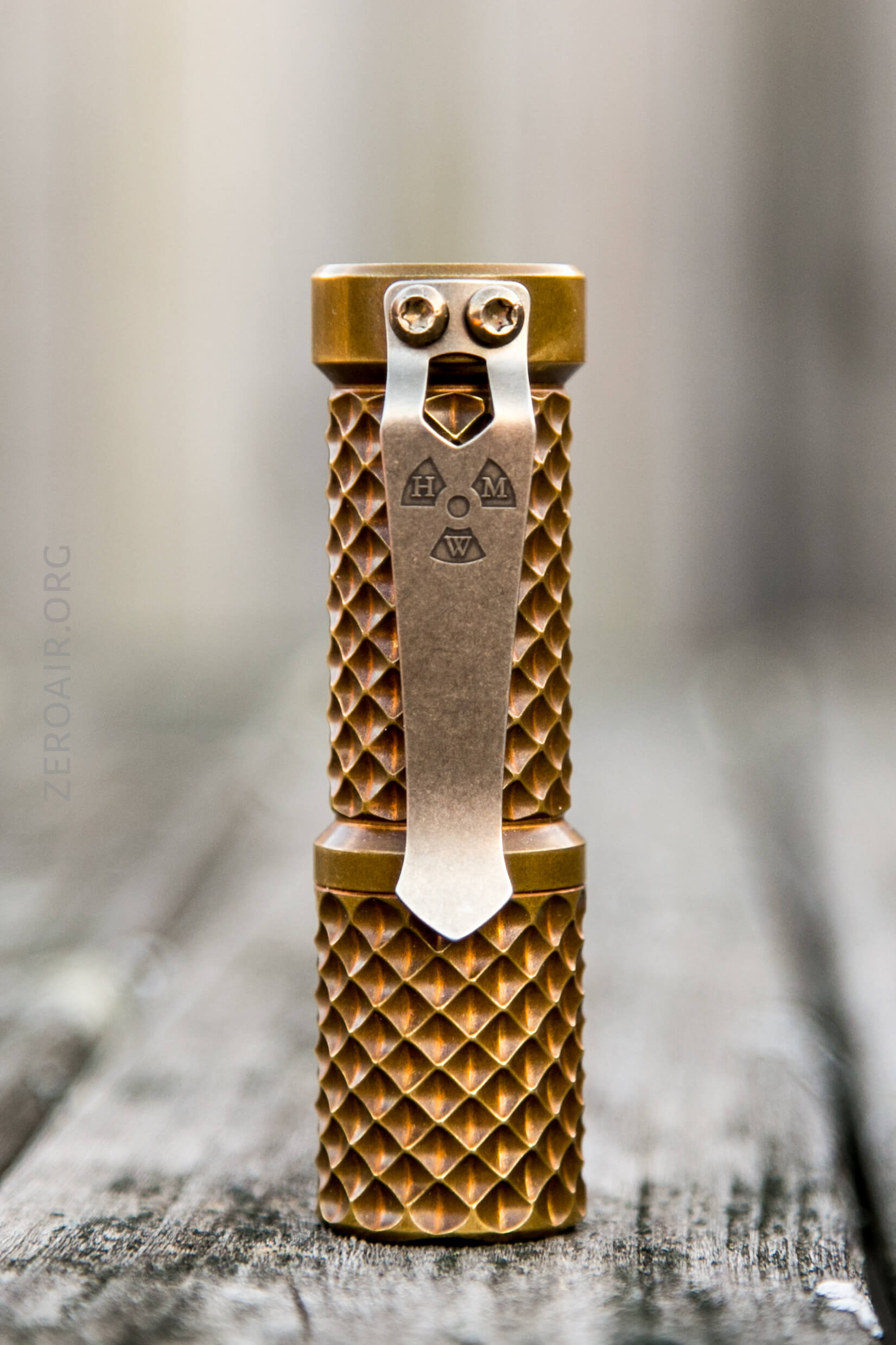 This is the Hanko Machine Works (HMW, or just “Hanko”) Trident “Total Tesseract” in brass, my own unusual light for a Fun Fund Friday review. Read on!